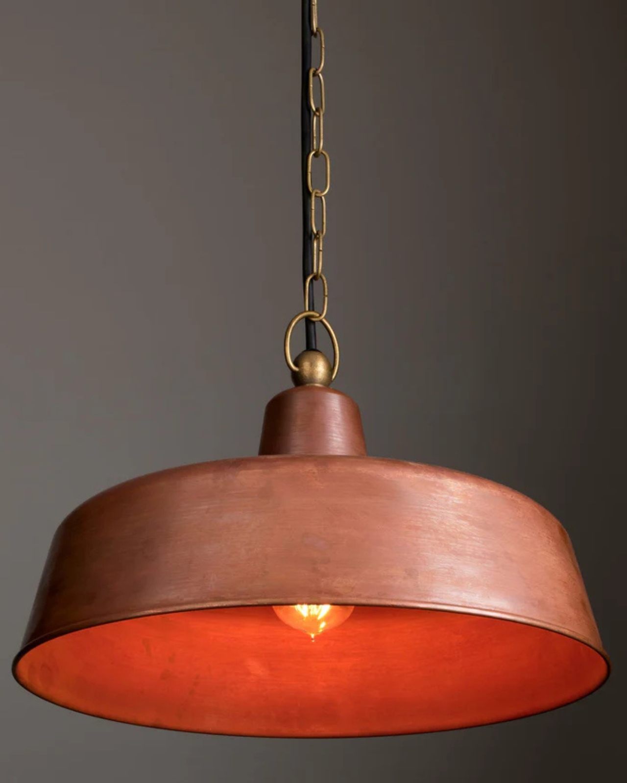 This vintage style pendant light has the perfect blend of aged, oxidised, solid copper and brass materials with a deep shade that we love. This classic design will complement industrial and traditional styles within your home and is perfect partnered with a vintage globe this light will be a striking addition.