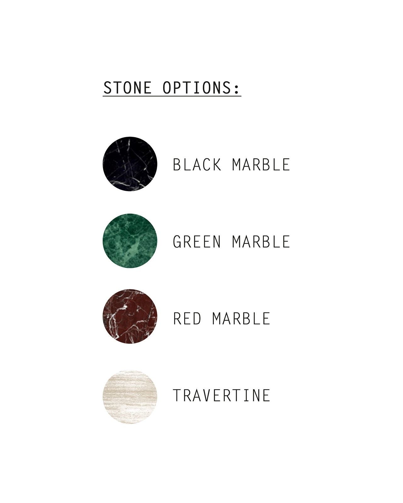 FinishesBlack Marble, Green Marble, Red Marble or Travertine