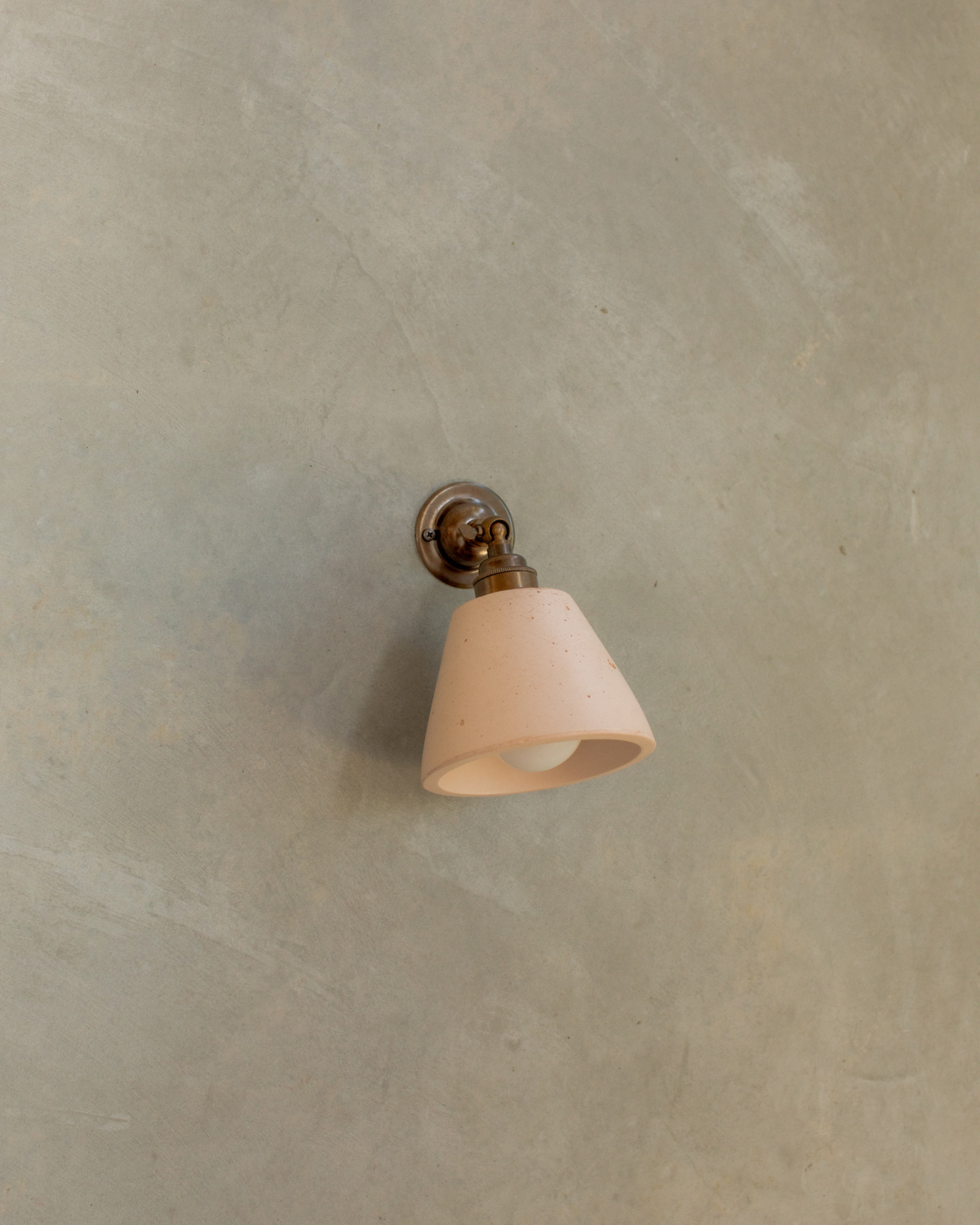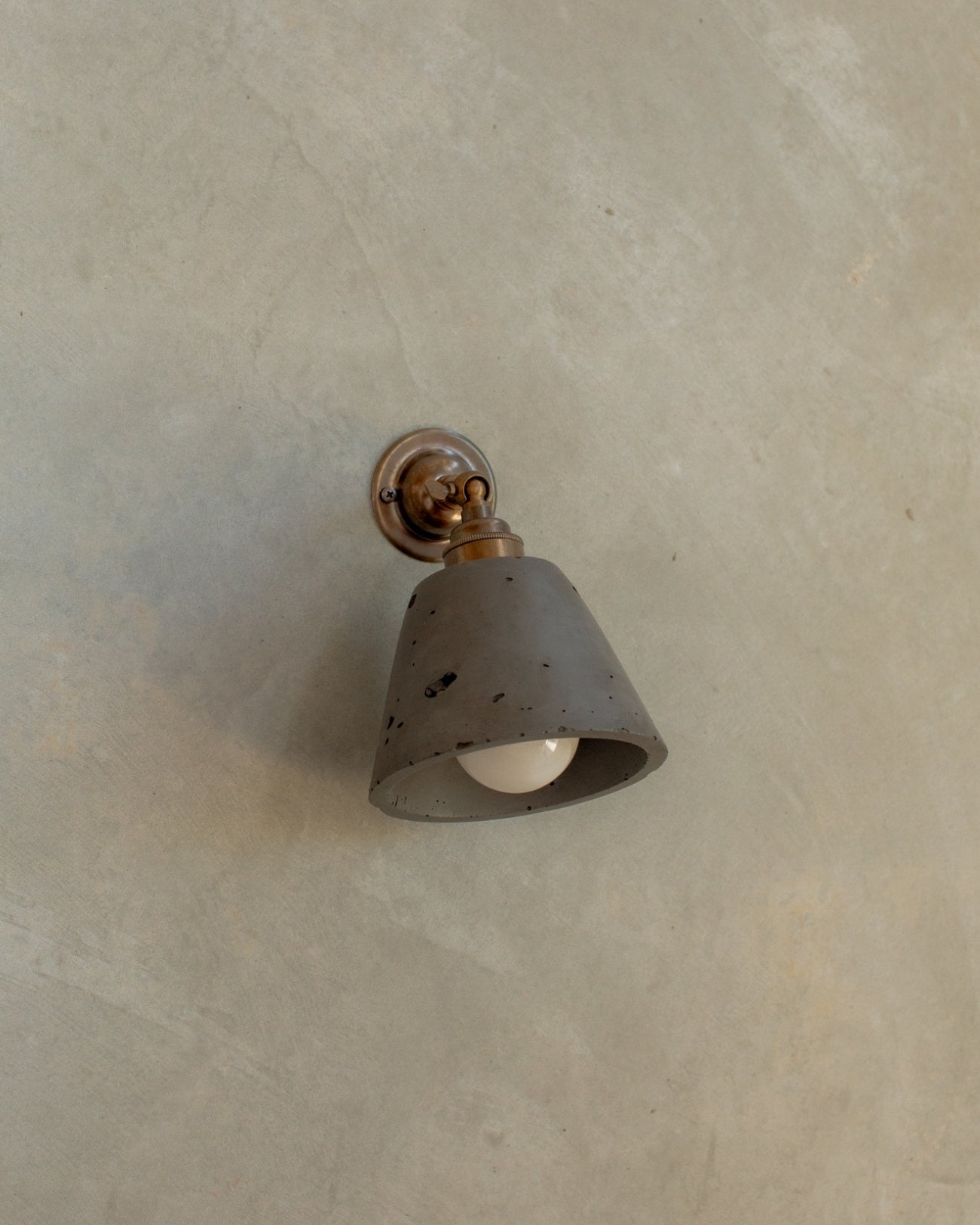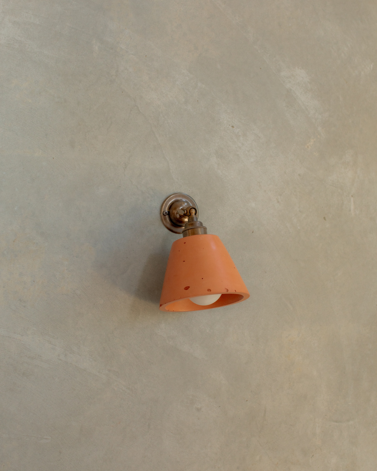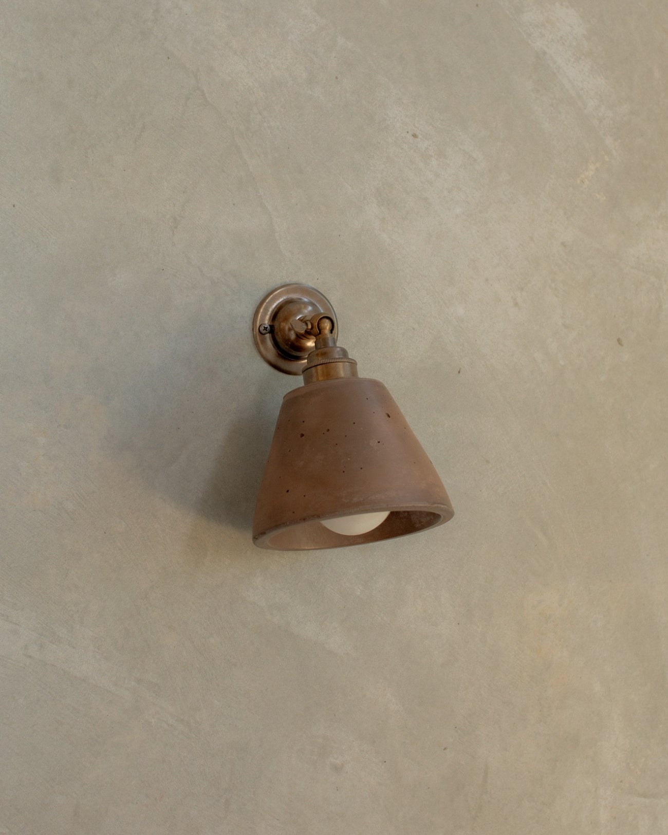 The Adjustable Concrete Cone Wall Light is a minimalist, functional design crafted by local artisans in the Northern Rivers. Featuring an adjustable knuckle bracket in Brass, Aged Brass, or Bronze, the angle of the light can be directed up or down to suit interiors. Hand-poured into custom moulds and made from durable concrete, this wall light is available in seven shades, ranging from bold terracotta and muted neutrals—nude, sand, and bone white—to darker tones of charcoal, moss, and cocoa. Ideal for bedrooms, offices, living areas, or powder rooms, it combines contemporary design with the natural texture of concrete.