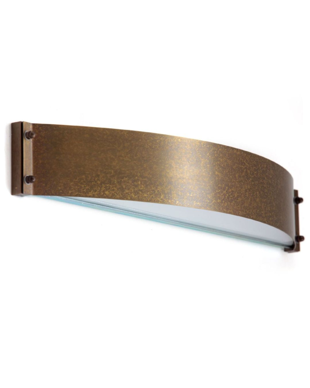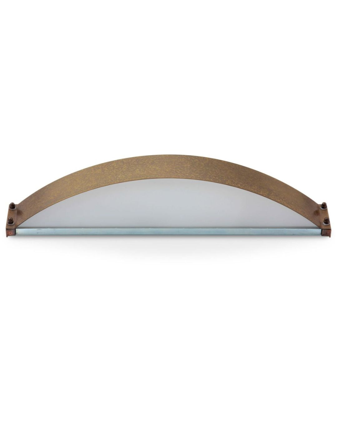 The Aged Brass Curved Rectangular Wall Light features an elegant curved rectangular shape held by four decorative screws, this patinated finished fixture is fitted with two diffusers, the upper one in etched glass and the lower one in white glass allowing a pleasant light spread upwards and downwards. Made in Italy and from long-lasting brass, this IP40 is protected against insects from getting into the light. Perfect in corridors, living rooms or dining rooms, this wall light will bring an industrial and timeless touch to the surroundings.
