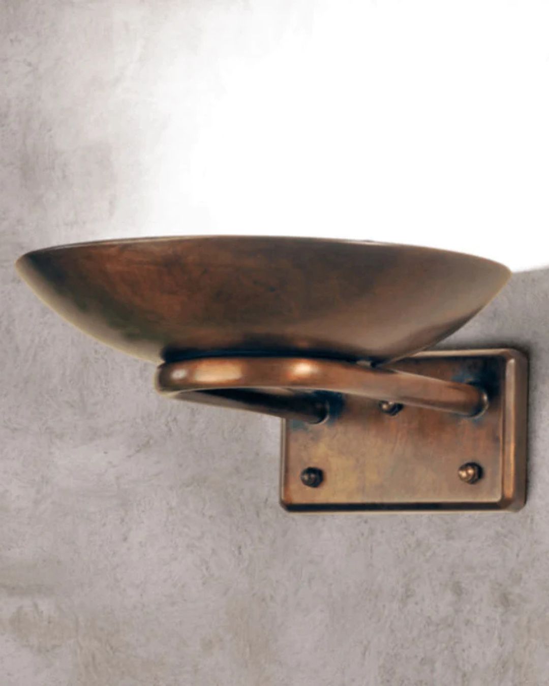 Using high-quality brass, this wall light reinterprets classic shapes with a contemporary touch and is made in Italy. Ideal in corridors or living rooms, this lamp features a thin rectangular wall support with rounded edges and a bowl with an etched glass diffuser providing a comfortable and pleasant light upwards. The Aged Brass Dome Wall Light has an aged finish with some copper reflections giving it a timeless touch.