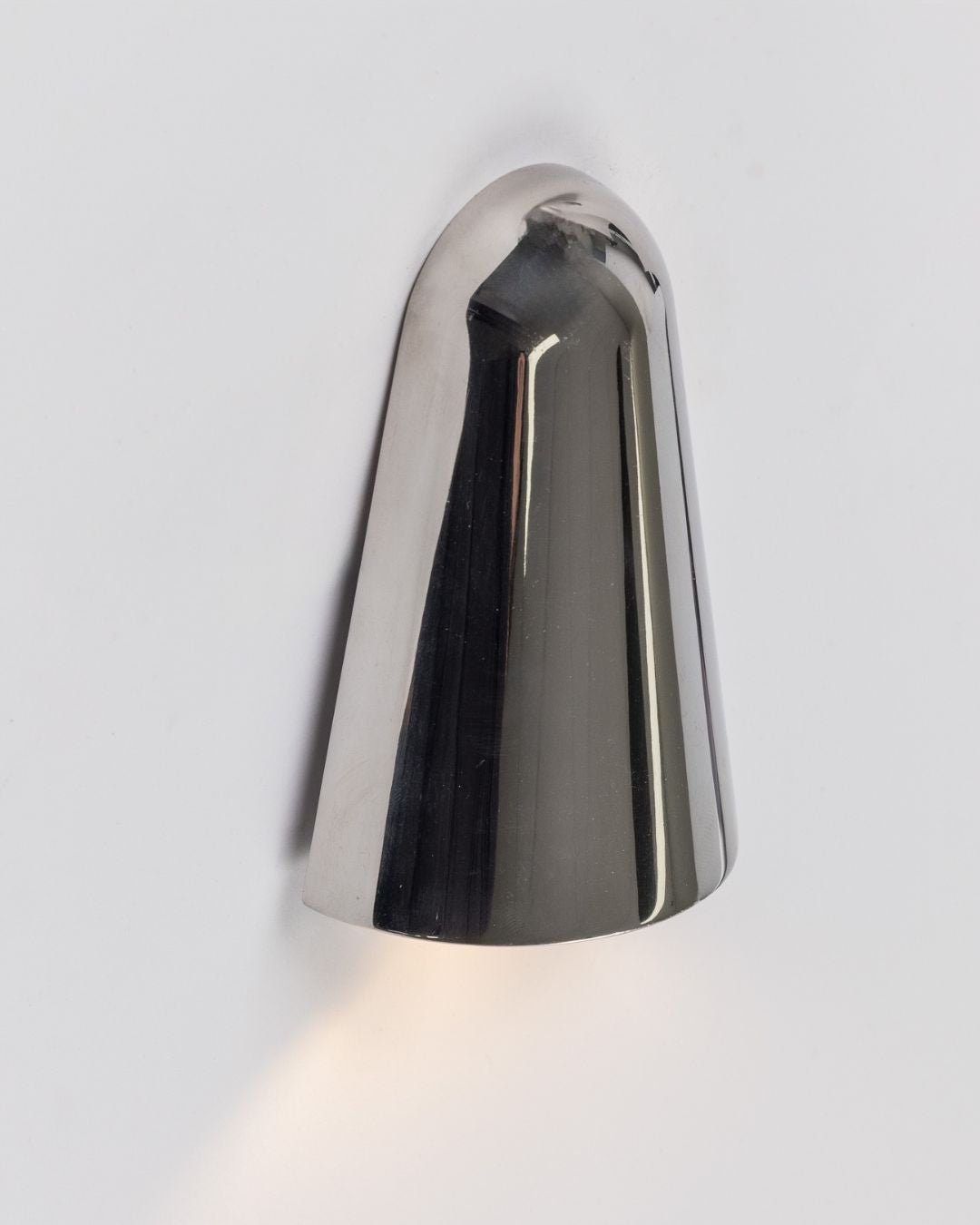 The Conical Indoor & Outdoor Wall Light is a modern fixture designed and hand-assembled in Sydney, Australia. Made from solid blocks of Brass, Stainless Steel, or Stone, this seamless light can be a bold statement or an elegant, elemental piece depending on the finish chosen. Featuring an integrated LED, choose the spot light effect for ambient interior lighting, or the flood light for functional task lighting, best suited to exterior entryways and facades.