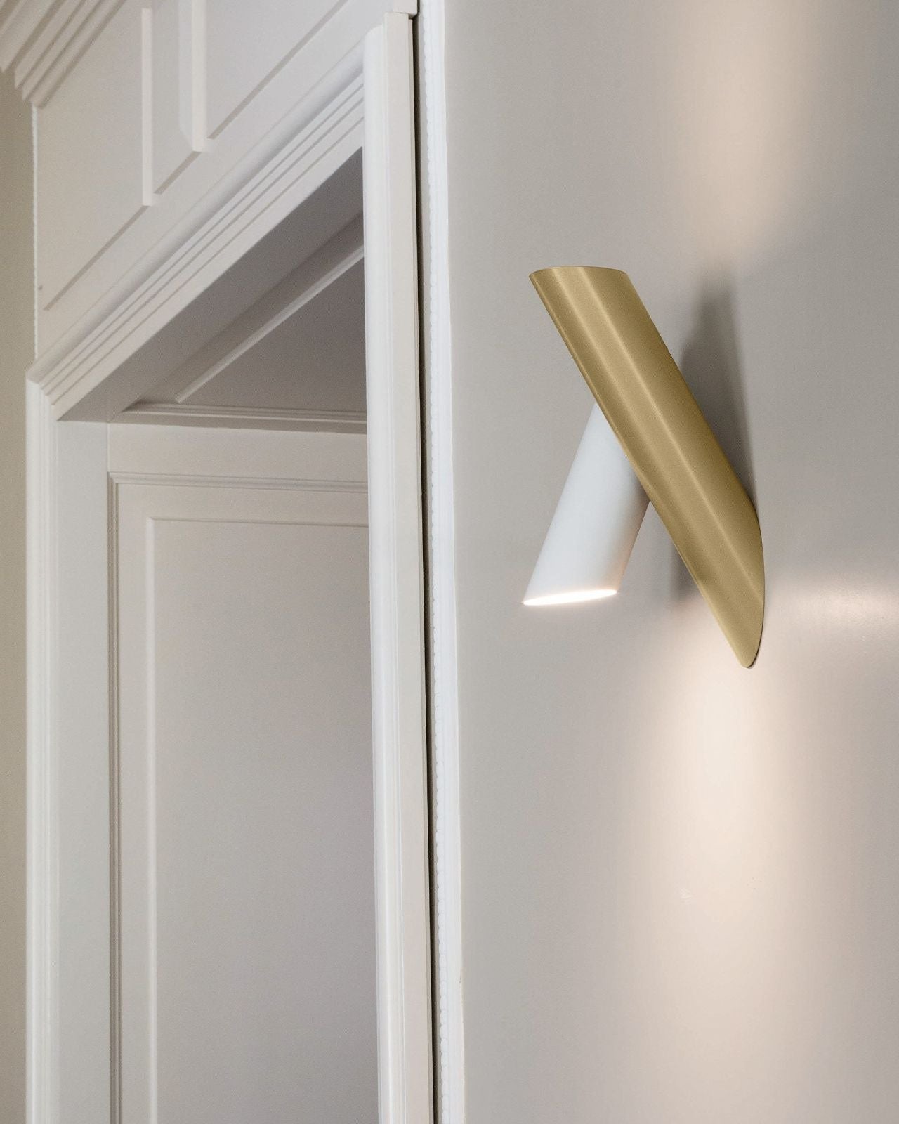 Designed by Charles Kalpakian in Italy this contemporary wall light is comprised of two cylindrical pieces built of extruded aluminium. Boasting an opal poly-carbonate lens that diffuses the LED light into a warm glow, a floating element also allows the light source to be adjusted by 60 degrees. Available in three modern finishes of white, grey and light gold.