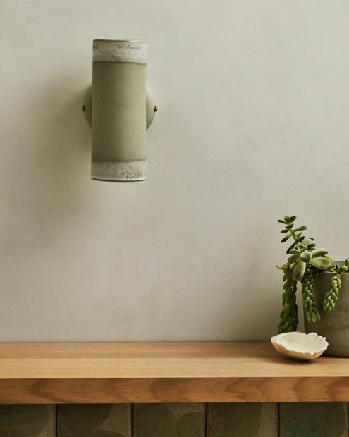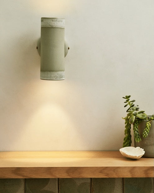 Handmade in Sydney by Studio Enti, this column wall light offers upward and downward illumination. Crafted from Porcelain, this design is available in an array of matte glaze finishes and three sizes that can be installed individually or paired. Casting an ambient glow from x 2 G9 globes (not included), this elemental wall light provides a warm light suited for hallways, bedrooms, and living spaces.