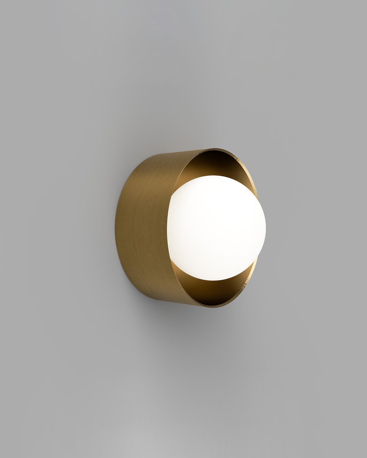Round orb wall light fixture on a gray background