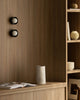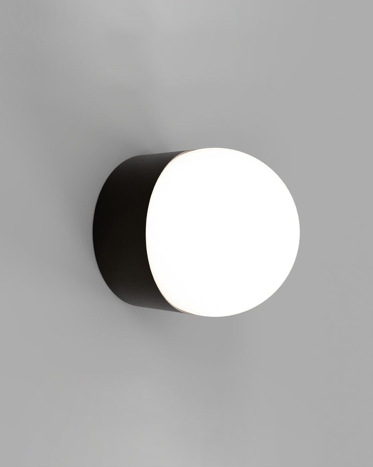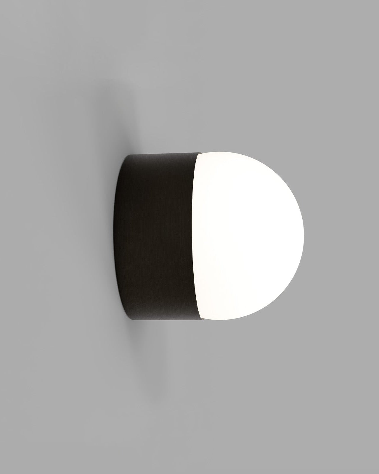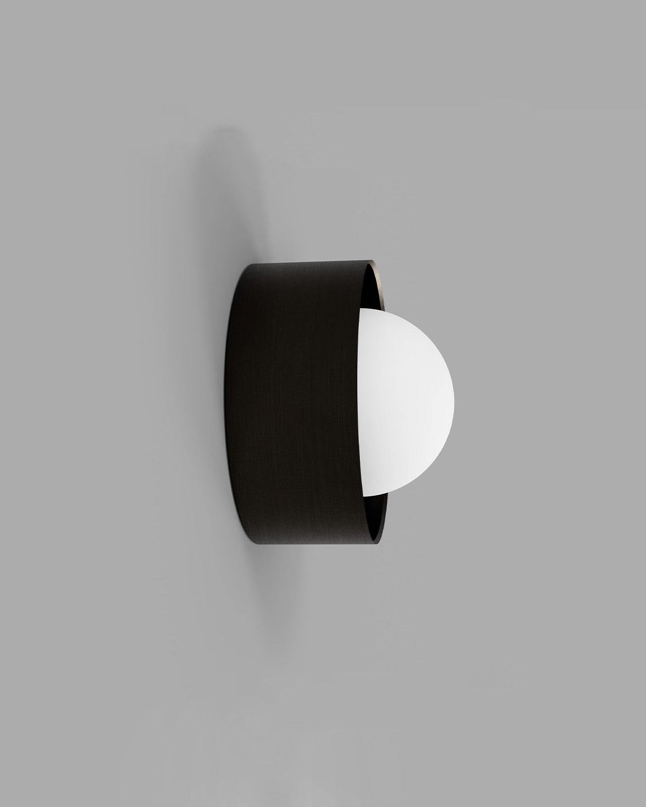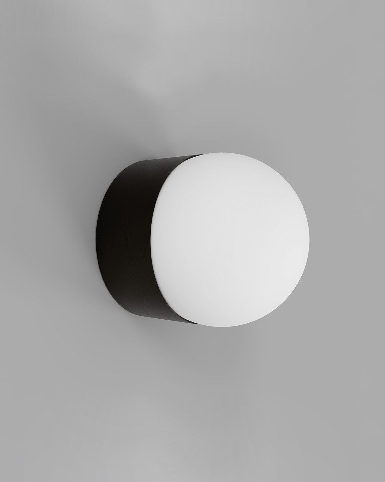 Cylindrical wall light with black and white half-spheres on a gray background