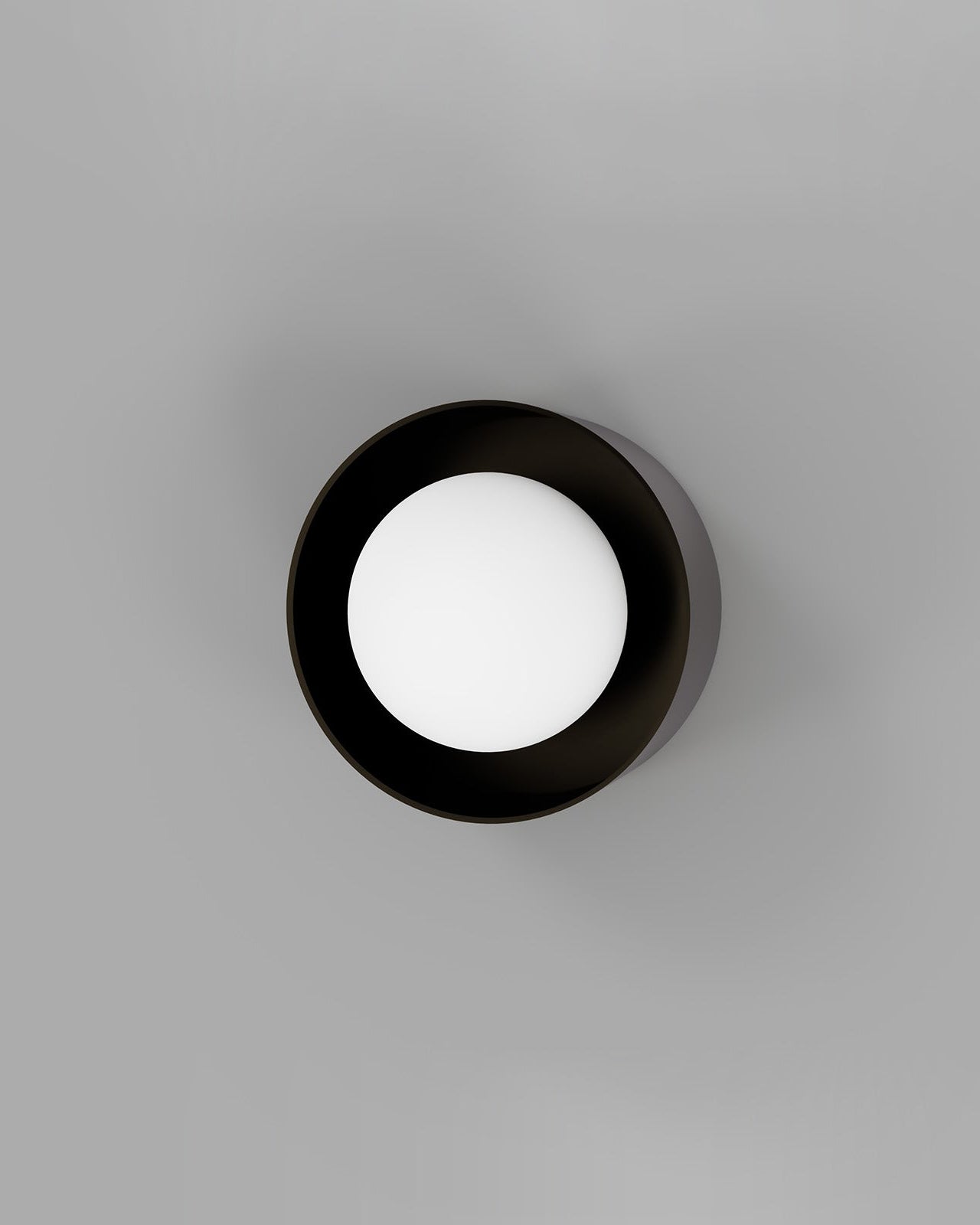 Round wall light fixture with black outer and white inner shade on a gray background