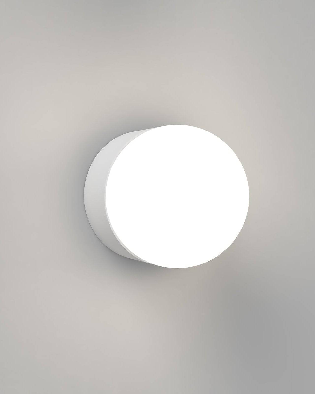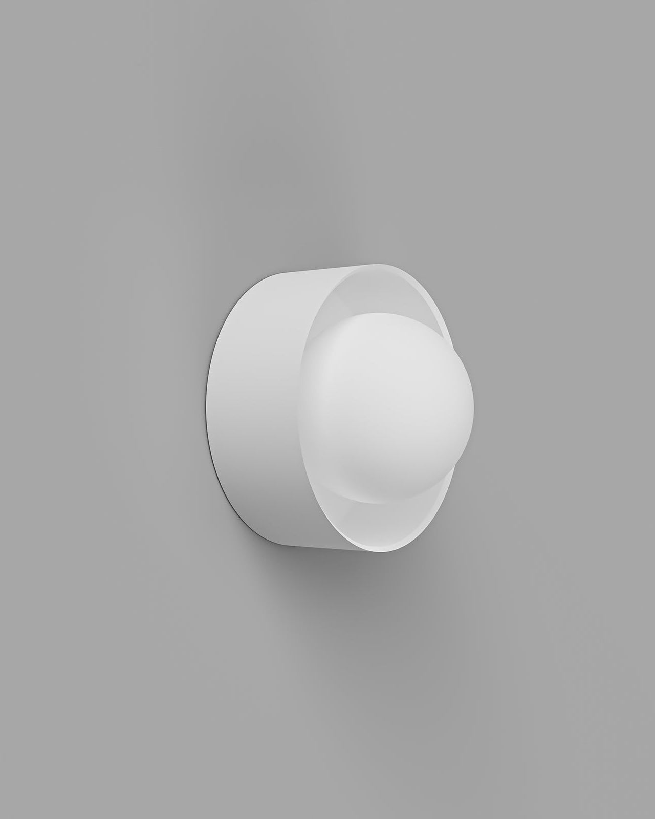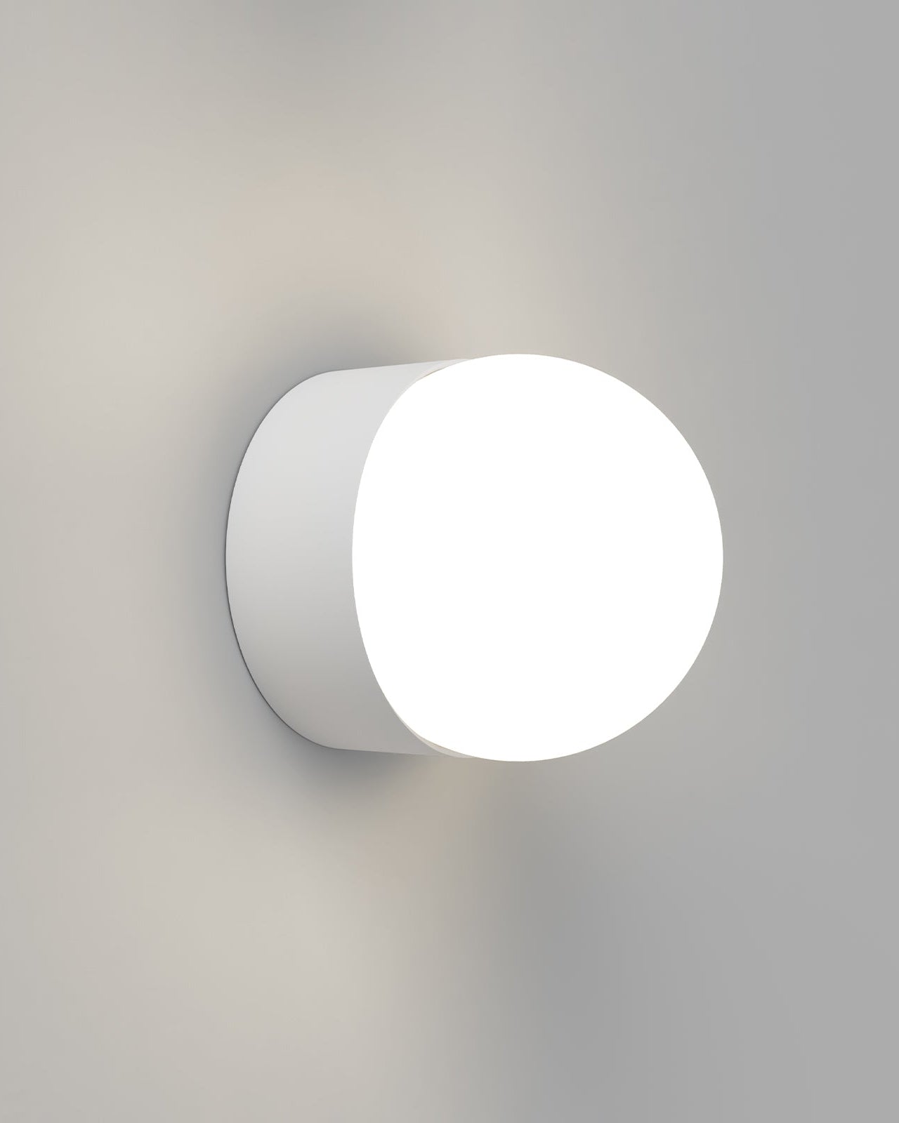 Round white wall light fixture on a gray background
