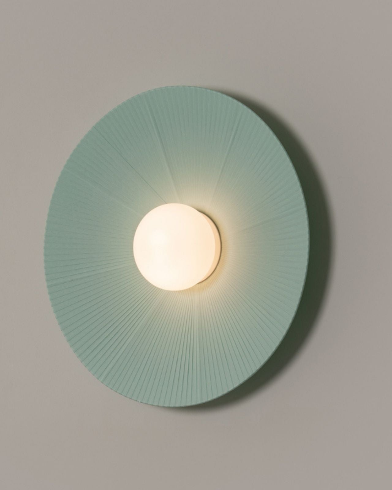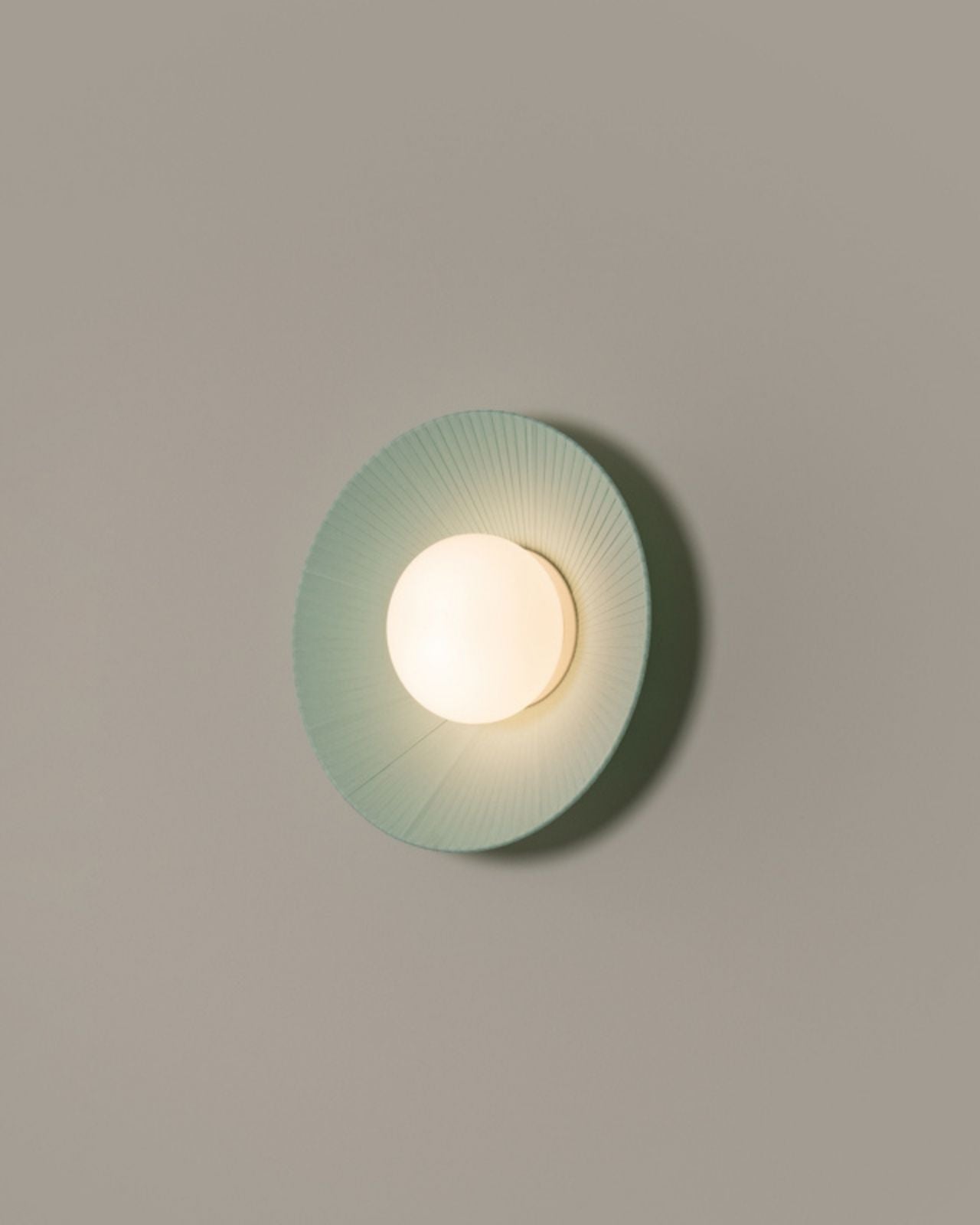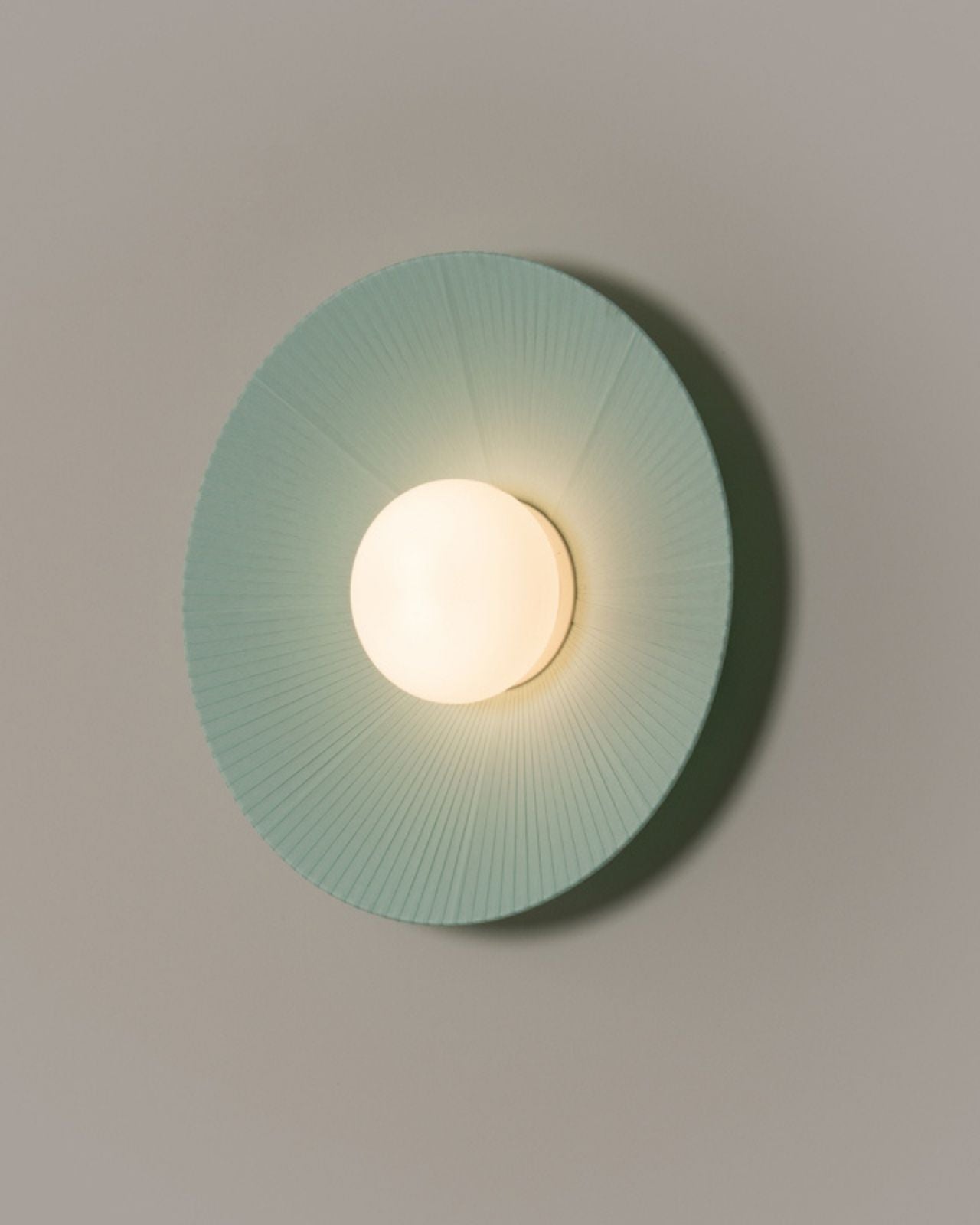 The Fabric Ribboned Wall Light, made to order in Spain, draws inspiration from the serene beauty of the Arctic. Featuring softly woven fabric ribbons that cascade from a central light source, this elegant wall fixture showcases a stunning interplay of light and shadow, mimicking the natural textures of ice. The result is a layered, ethereal glow that adds depth and ambience to any room. Available in Turquoise Green and Cream and three sizes.