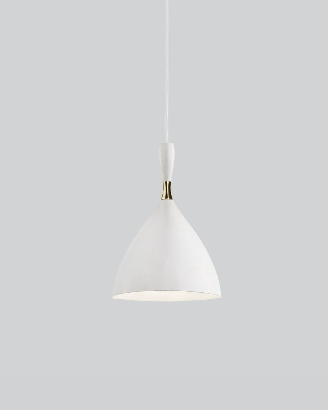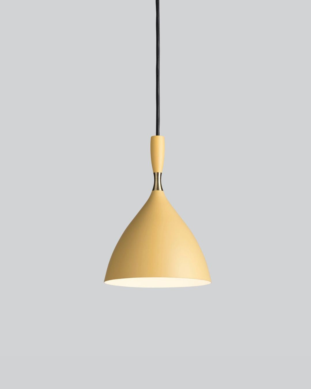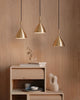 Available in six elegant colours and complemented by a brass ring, these modernist pendants look great on their own or in a row above benchtops and tables. Mix and match different colours for a bit of fun.