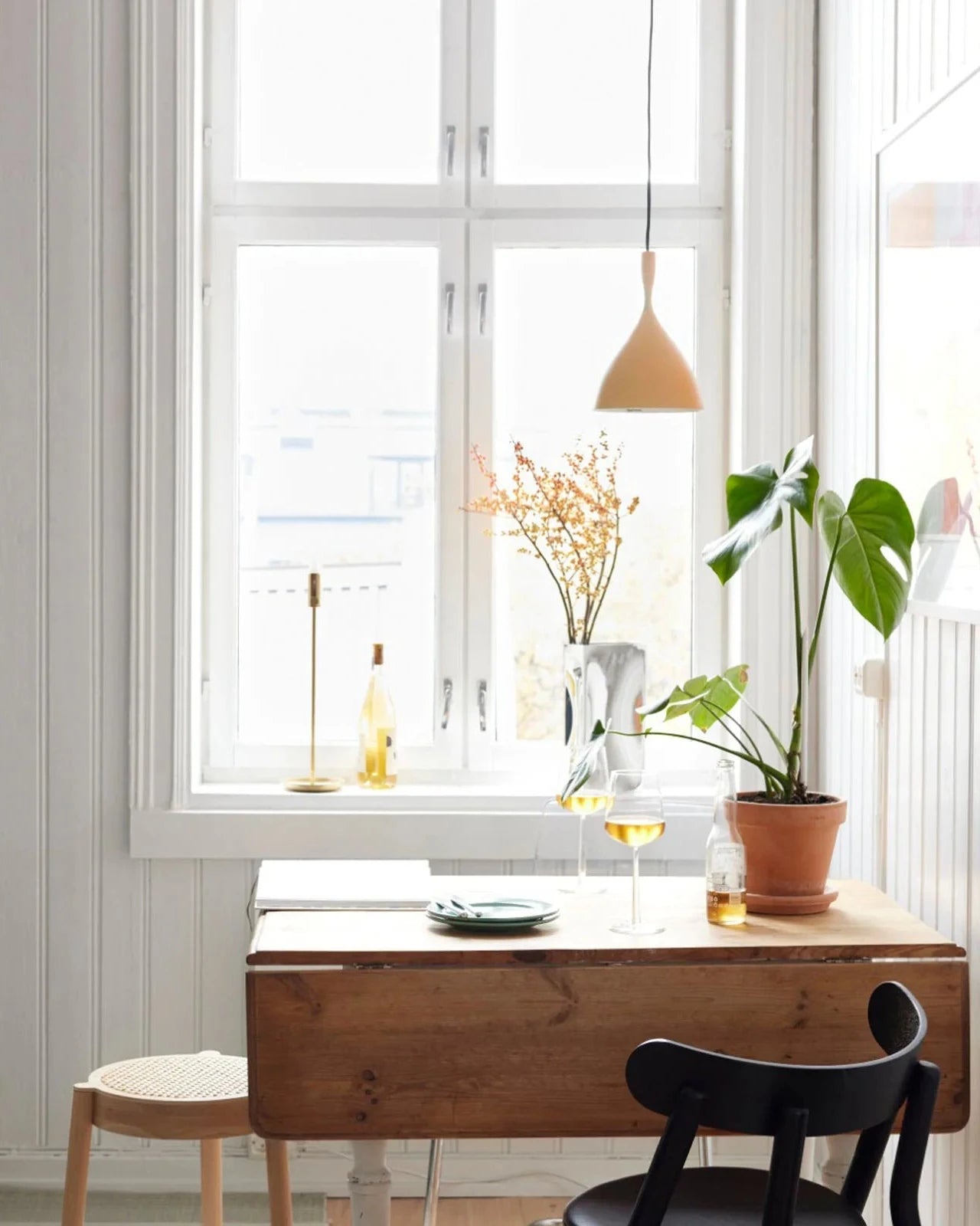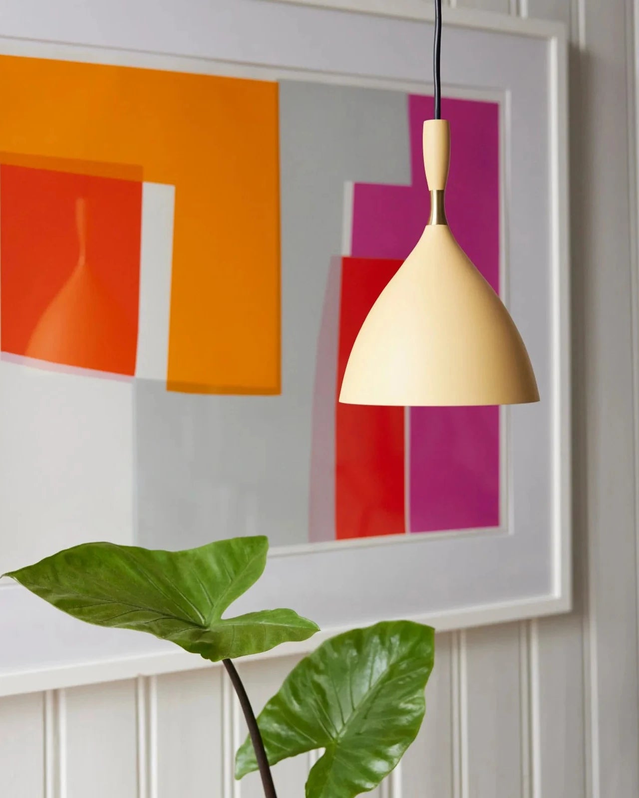 1954 Original Scandinavian Pendant Light | Lighting Collective with a plant in front of abstract wall art