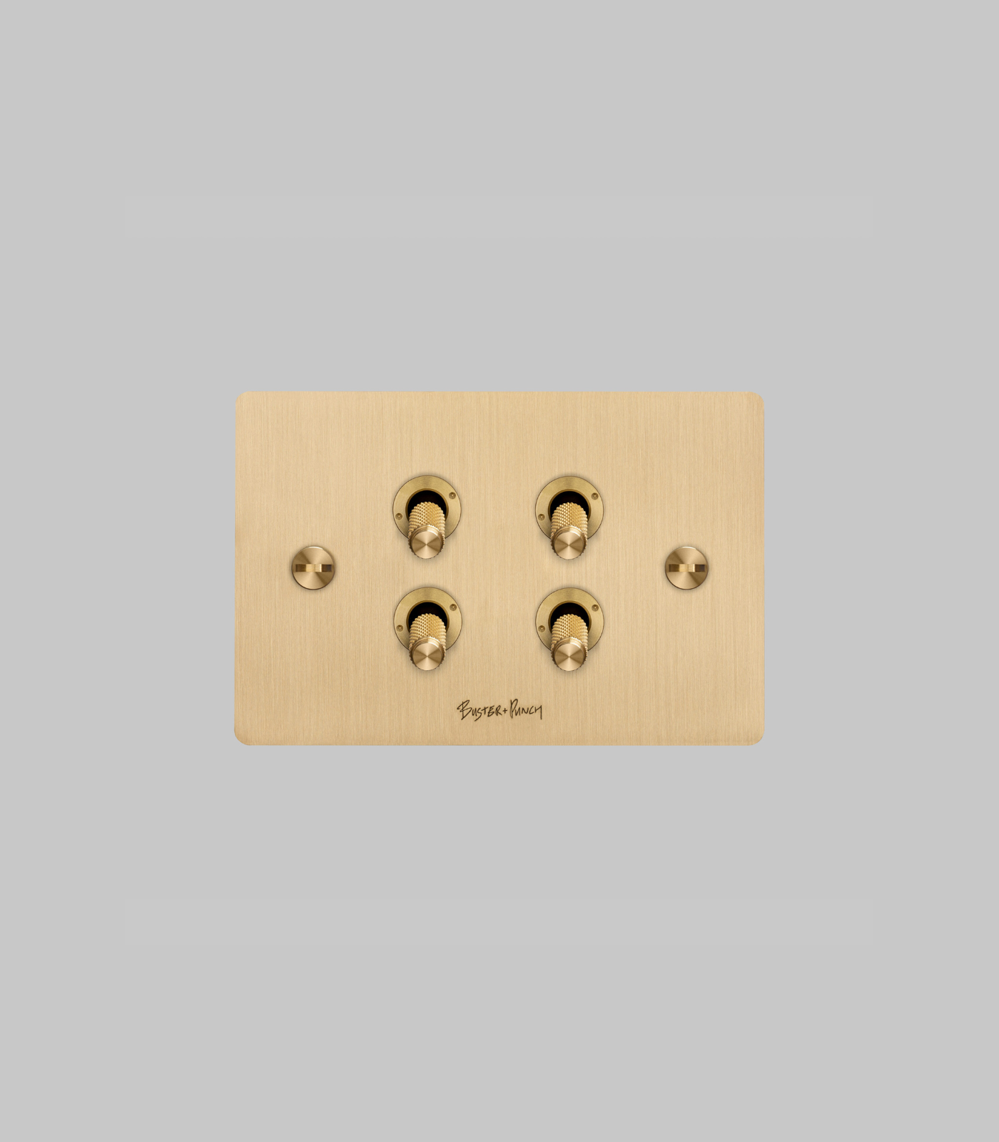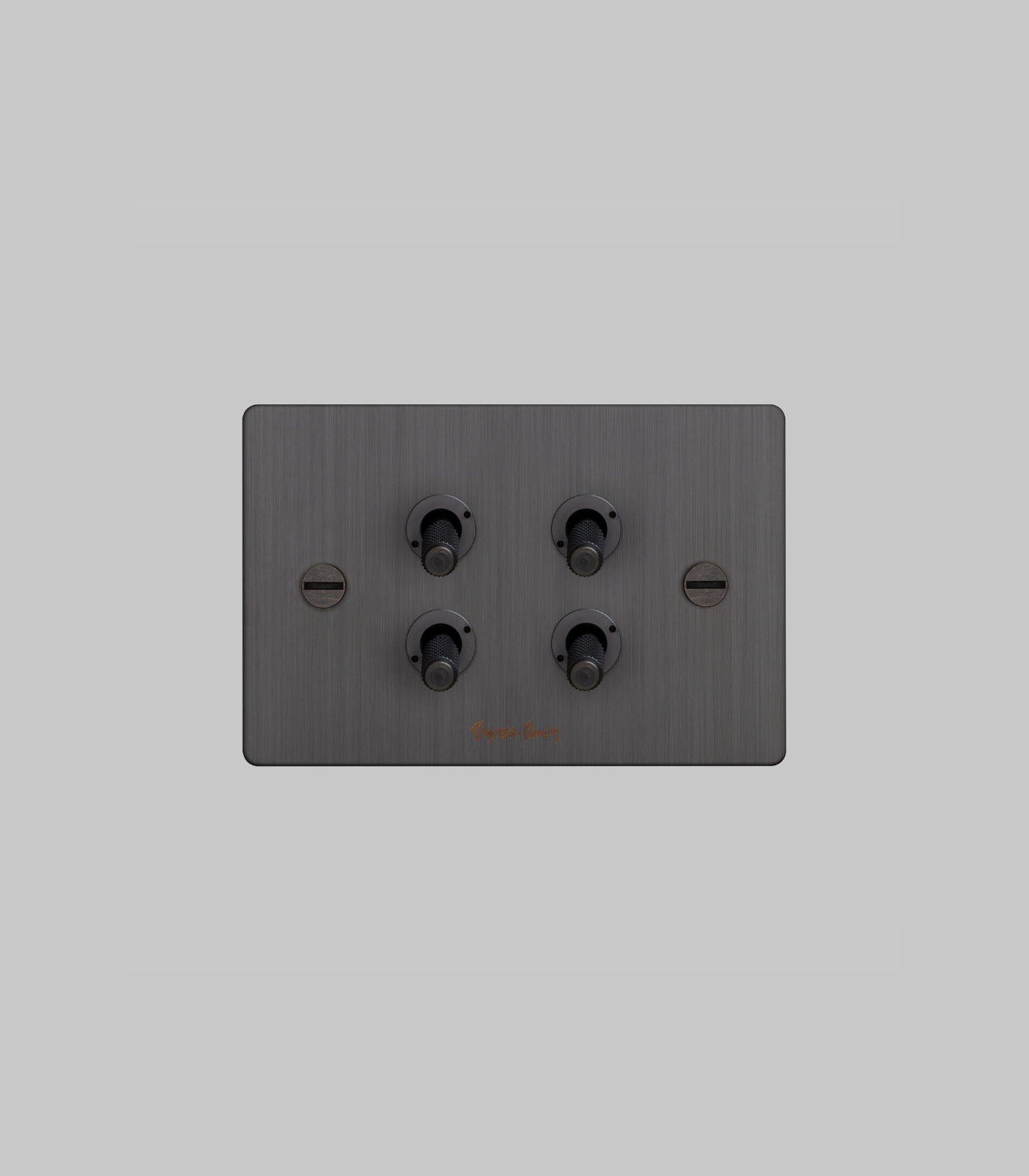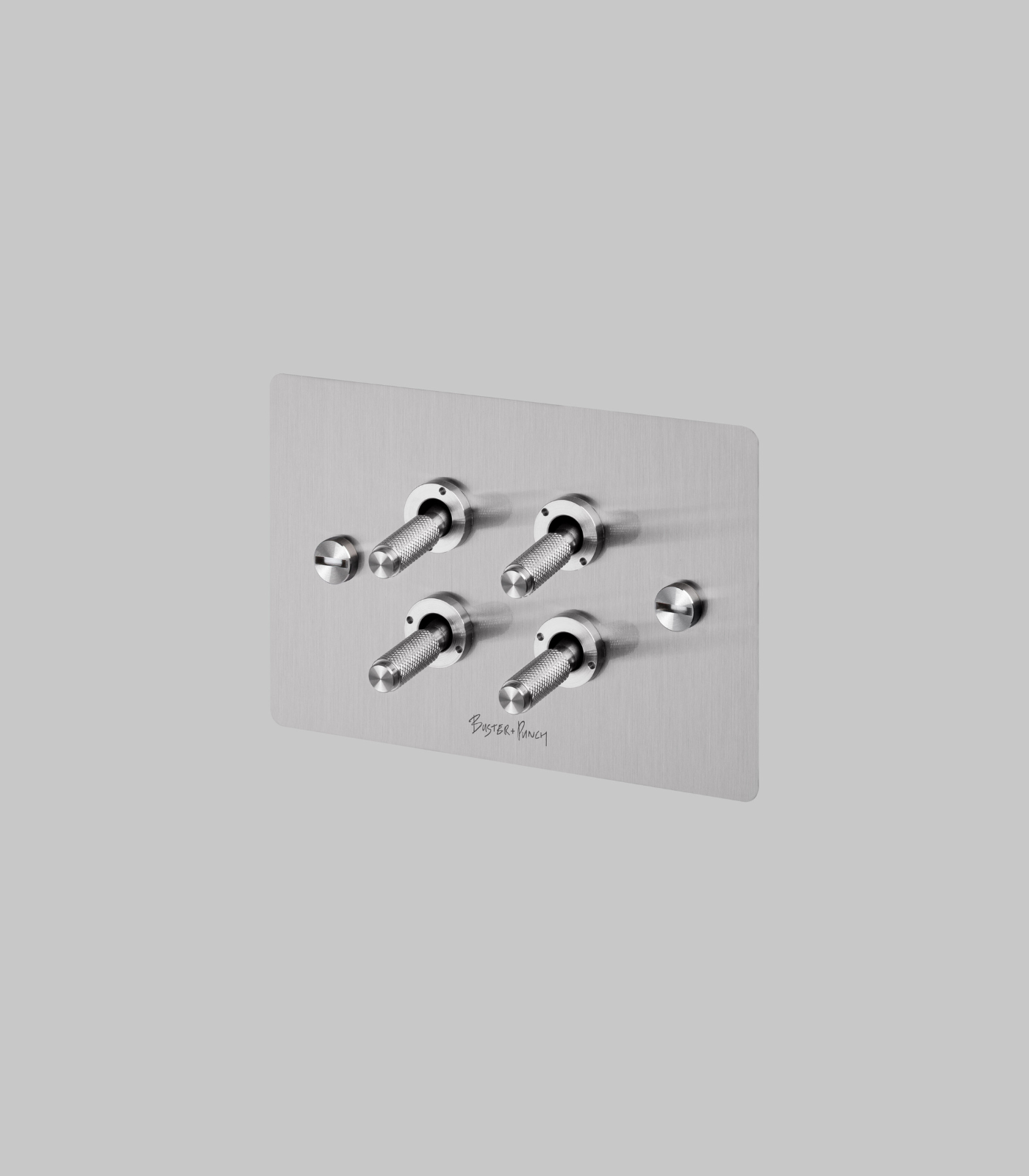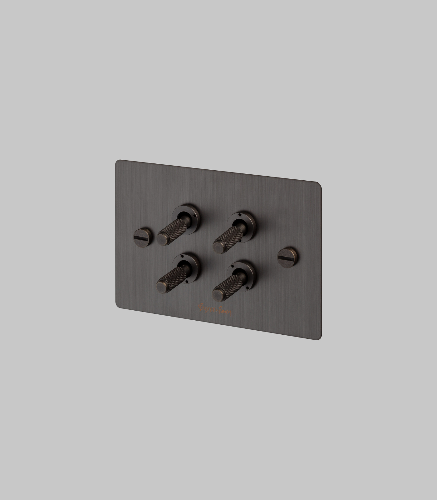 The 4 Toggle Switch is a high quality electrical fitting that can replace classic white switches to match the cabinet hardware of any interior. Available in Brass, Smoked Bronze, Black or Steel with signature diamond-cut cross knurl pattern toggles, these fittings are a unique addition to any contemporary interior. Pair with the Switch Detail Kit to customise the toggle finish.
