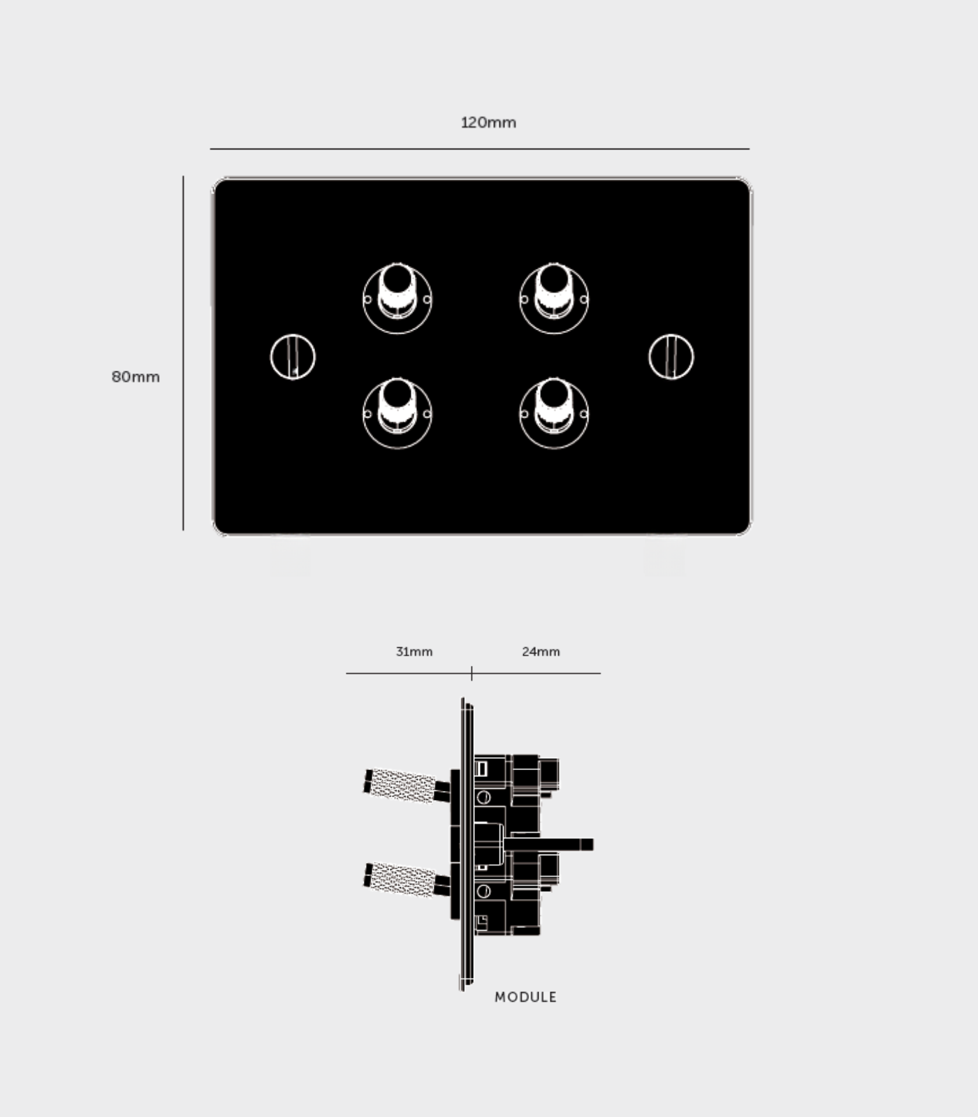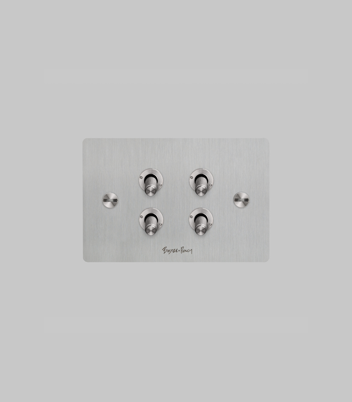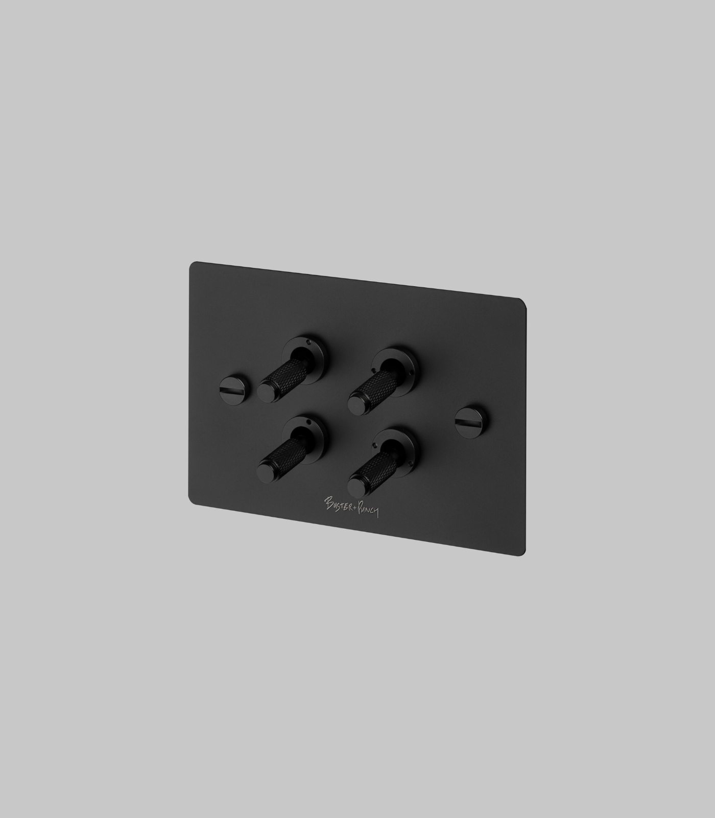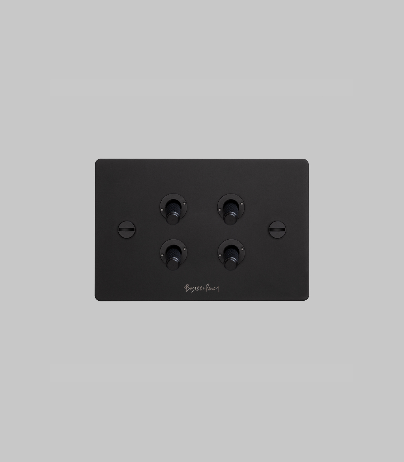 The 4 Toggle Switch is a high quality electrical fitting that can replace classic white switches to match the cabinet hardware of any interior. Available in Brass, Smoked Bronze, Black or Steel with signature diamond-cut cross knurl pattern toggles, these fittings are a unique addition to any contemporary interior. Pair with the Switch Detail Kit to customise the toggle finish.