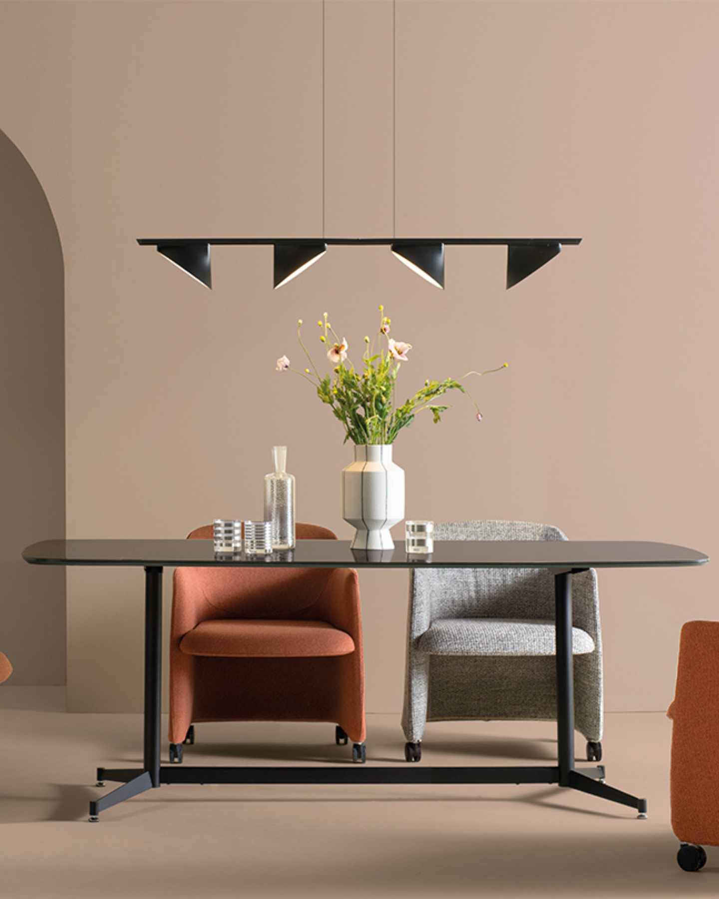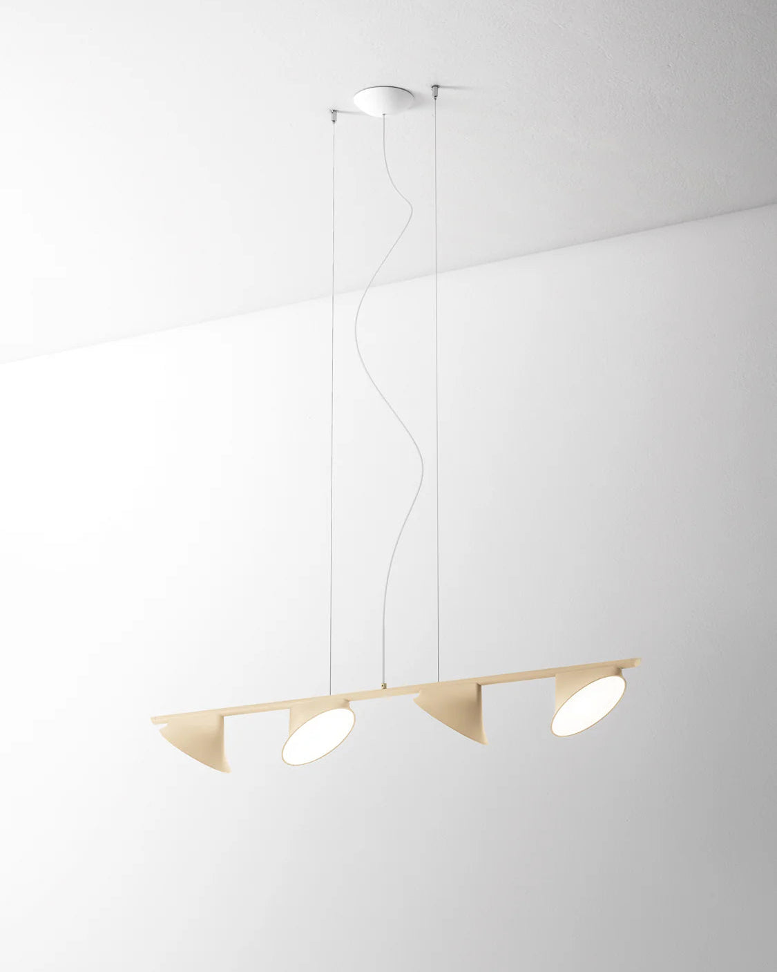 Designed in Austria, this minimal linear pendant boasts functionality and form. Crafted with four unique 'blossom-shaped' diffusers, this light prevents over heating, promoting itself for both residential and large-scale commercial spaces.