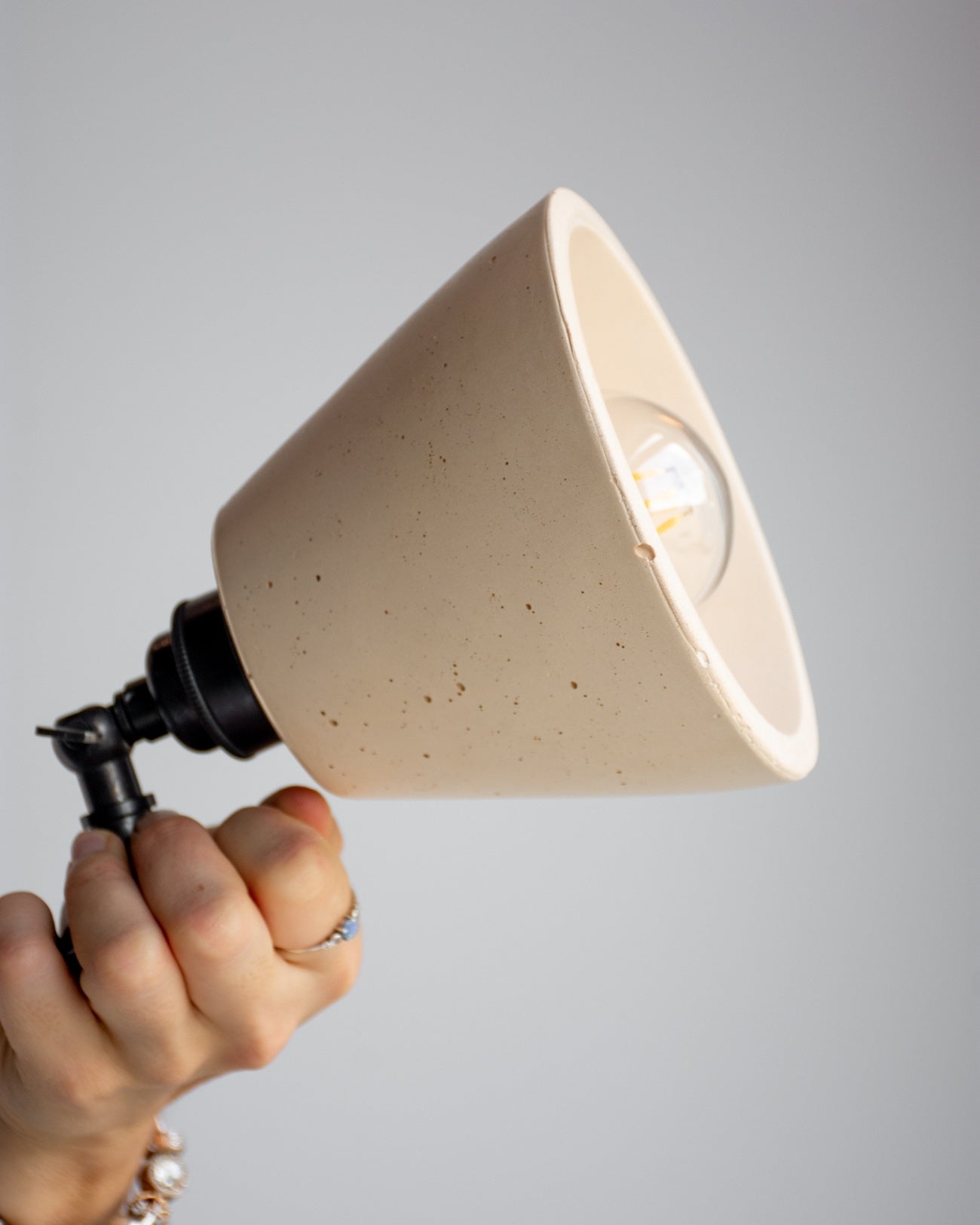 The Adjustable Concrete Cone Wall Light is a simple, yet functional design crafted by local artisans in Ballina. Featuring an adjustable knuckle bracket in Brass, Aged Brass or Bronze, angle this light up or downwards to illuminate wherever necessary. Hand-poured into custom moulds and made from concrete and glass fibre, this wall light uses innovative and unique materials to create a lightweight fitting in seven different shades.