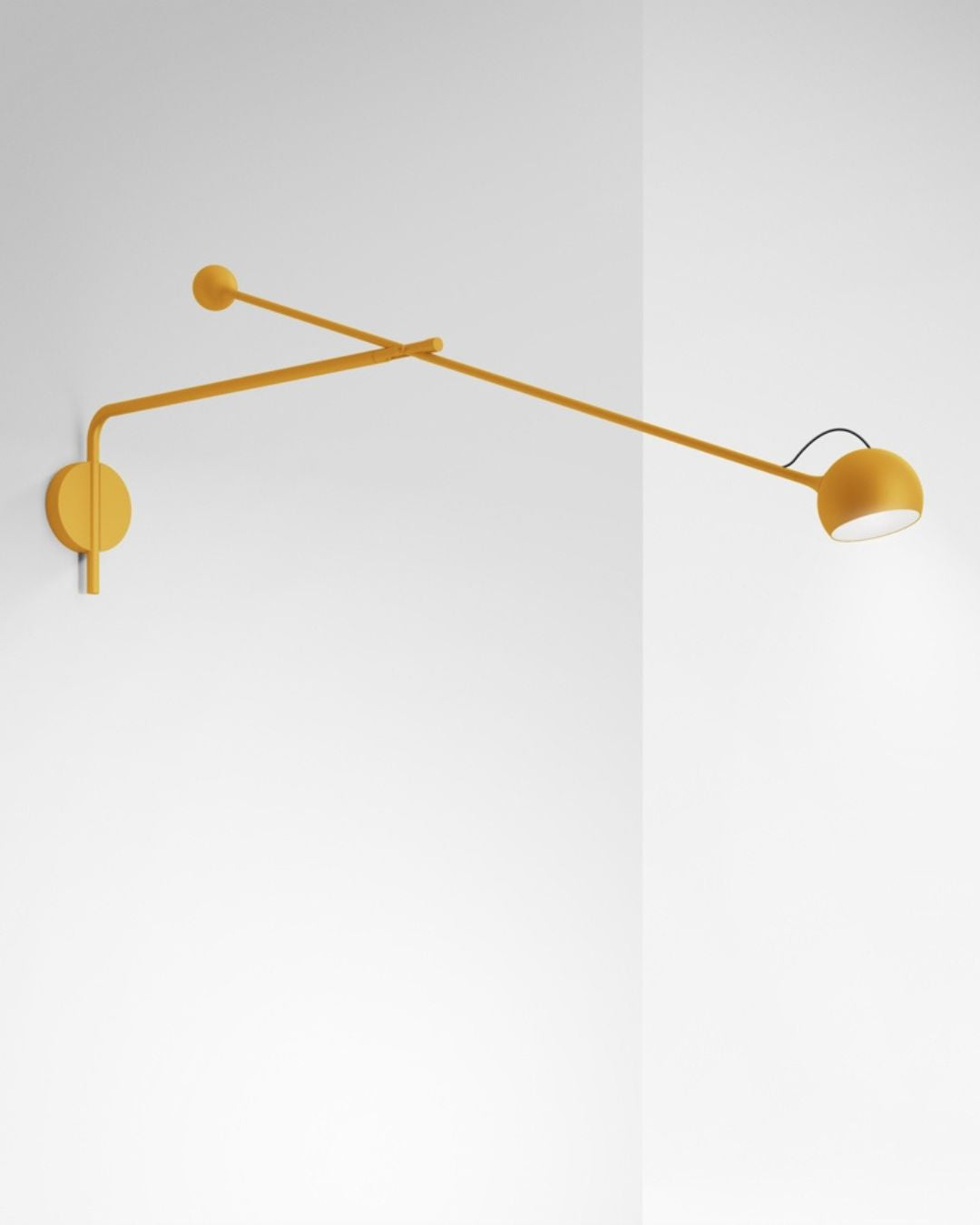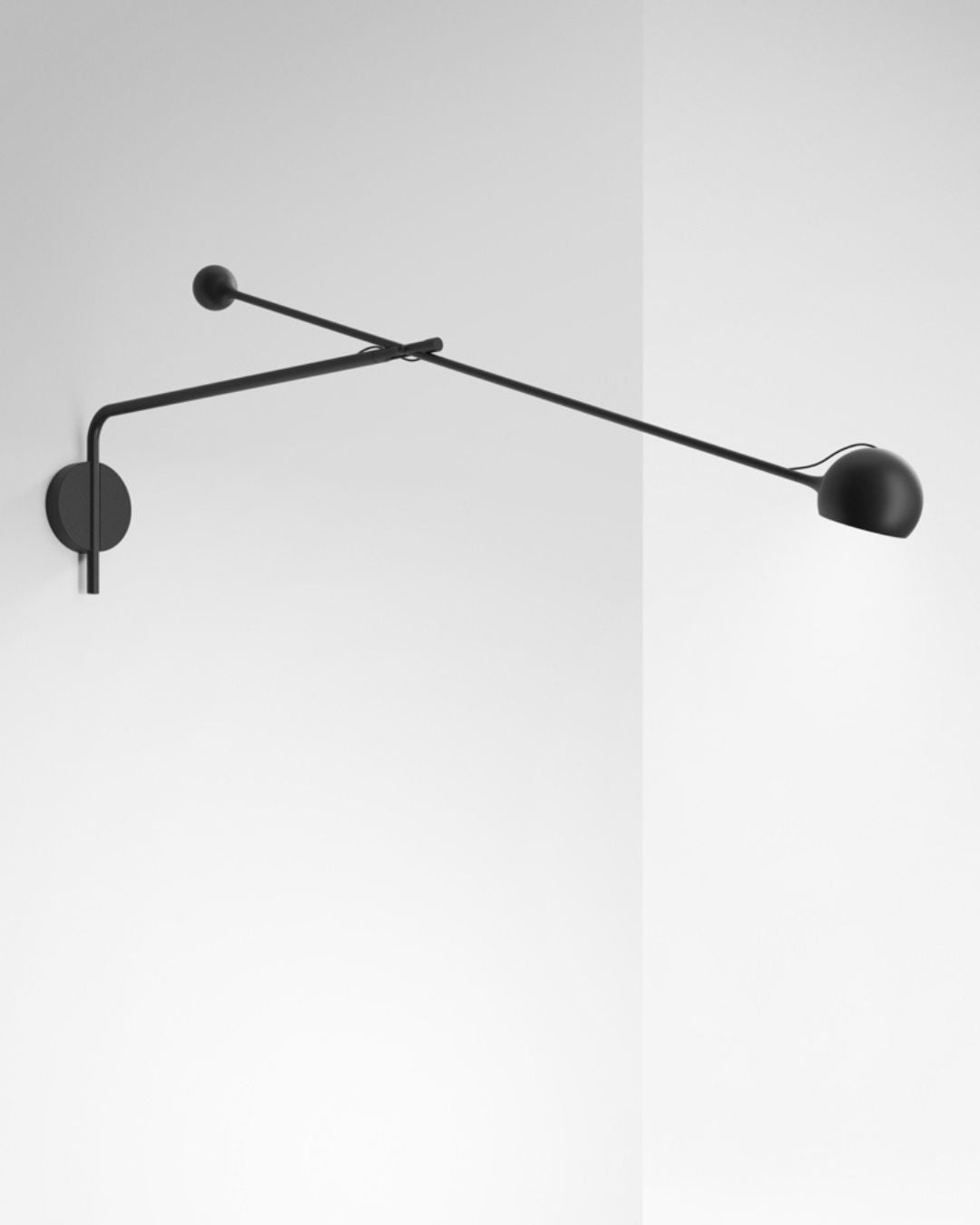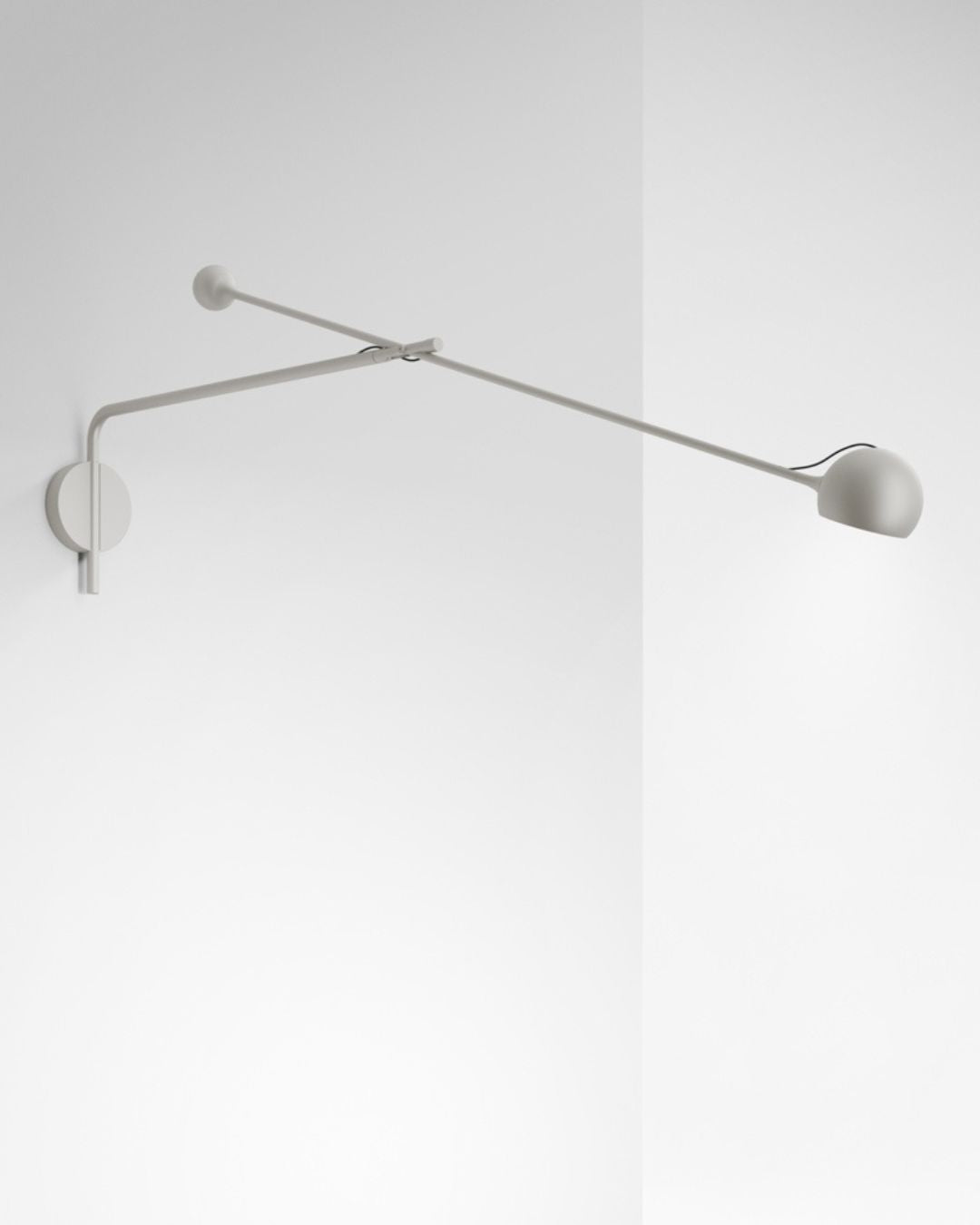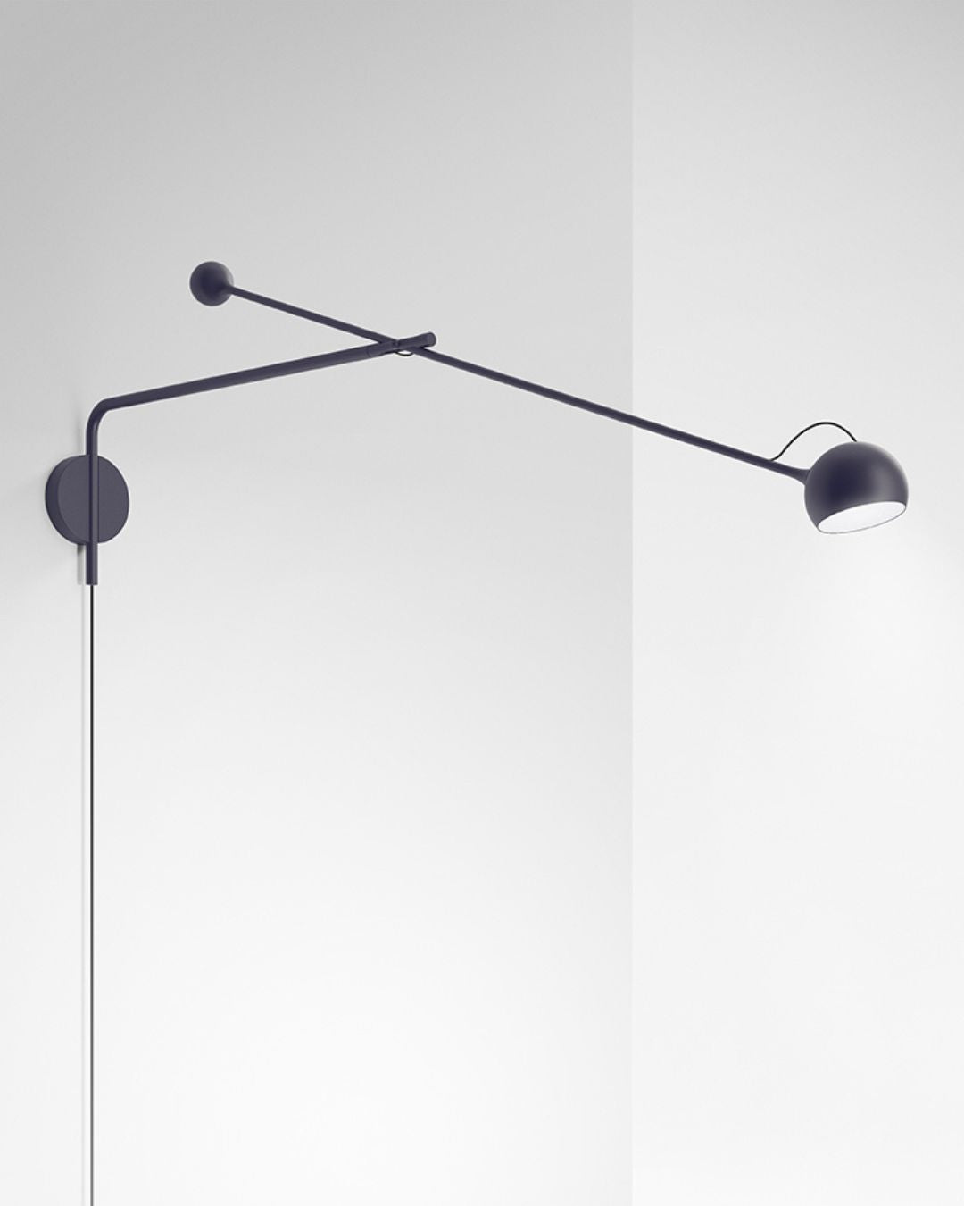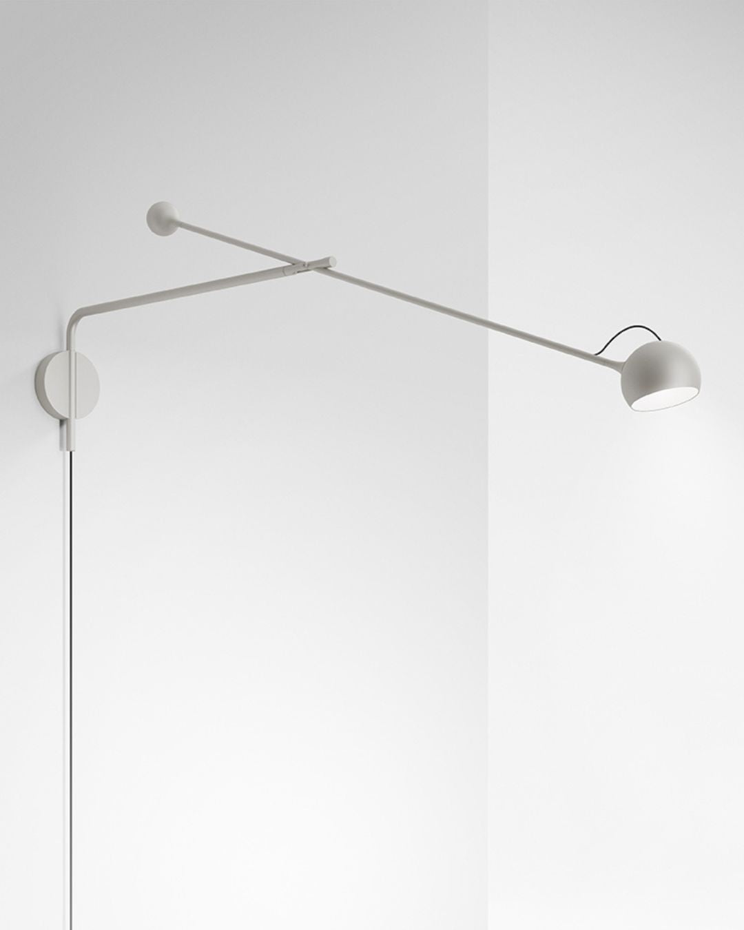 The Adjustable Dome Shade Wall Light is a unique fitting inspired by the balance and artistry of Alexander Calder's sculptures. Featuring a rounded shade and frosted diffuser attached to a long adjustable arm, this wall light can be specifically directed where light is needed. Choose from a corded version for convenient installation, or cordless for a minimalist look with a warm integrated led.