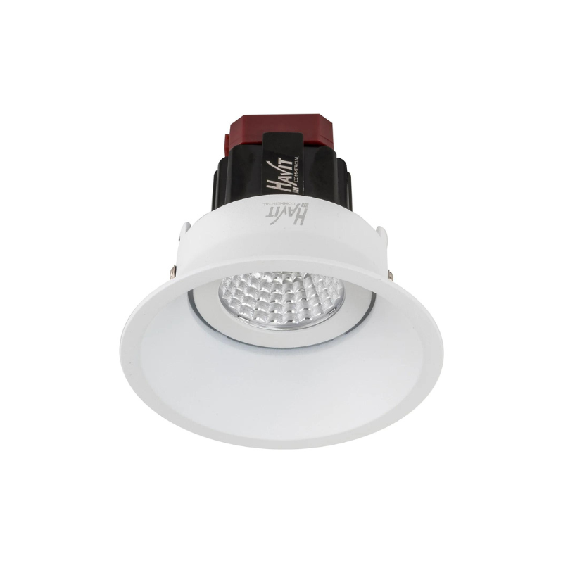 IP44 rated, dimmable and available in a range of wattages, this matte black or white adjustable round deep recessed downlight will enhance any interior space such as kitchens, corridors, lounges, living rooms or bedrooms. Including a colour temperature controller at the back of the light, this discreet fixture will spread a pleasant 2700K, 3000K, 4000K, 5000K, or 5700K light. With a 20 degree shade tilt, adjust the fitting to spotlight main features in the space. Comes with a 5 year replacement warranty.