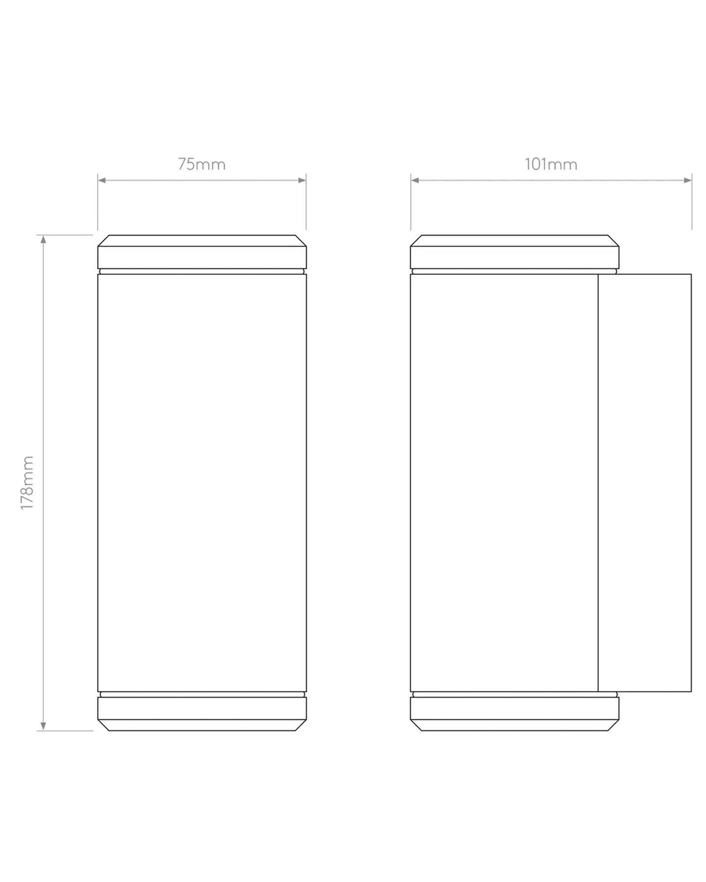 Visually, this wall light presents as a slim, upright tube (cylinder) fixed to a modest wall plate. It emits light both upwards and downwards, creating a balanced wash of illumination against the wall.