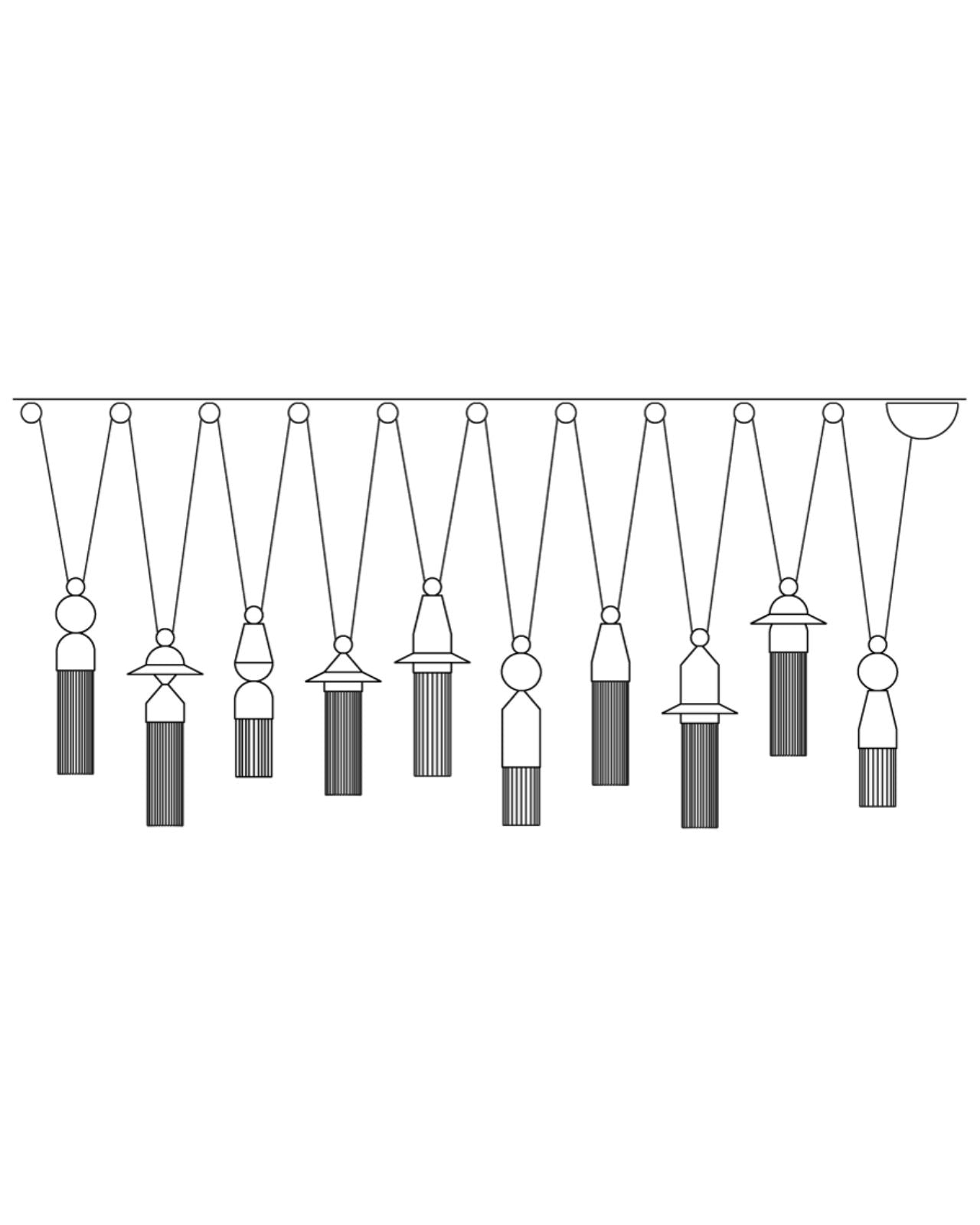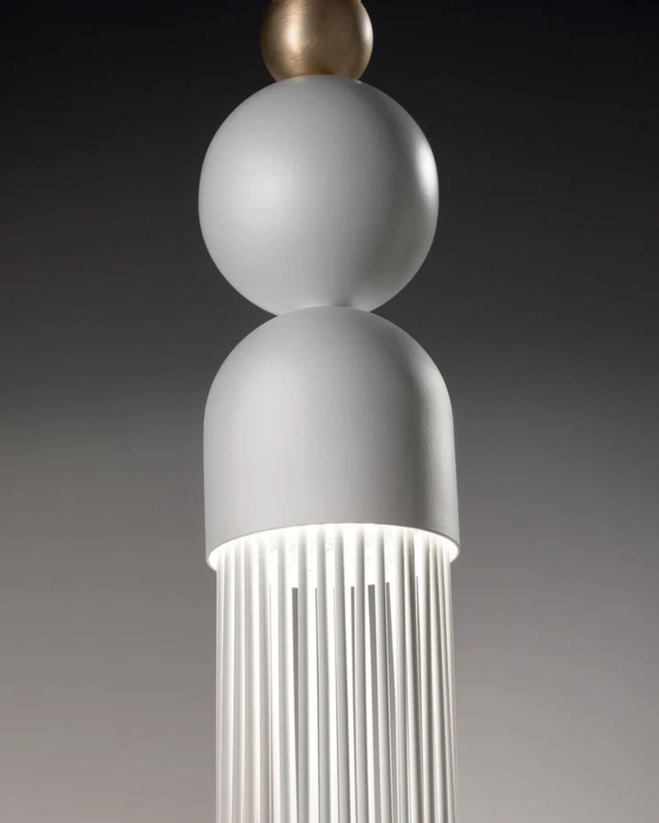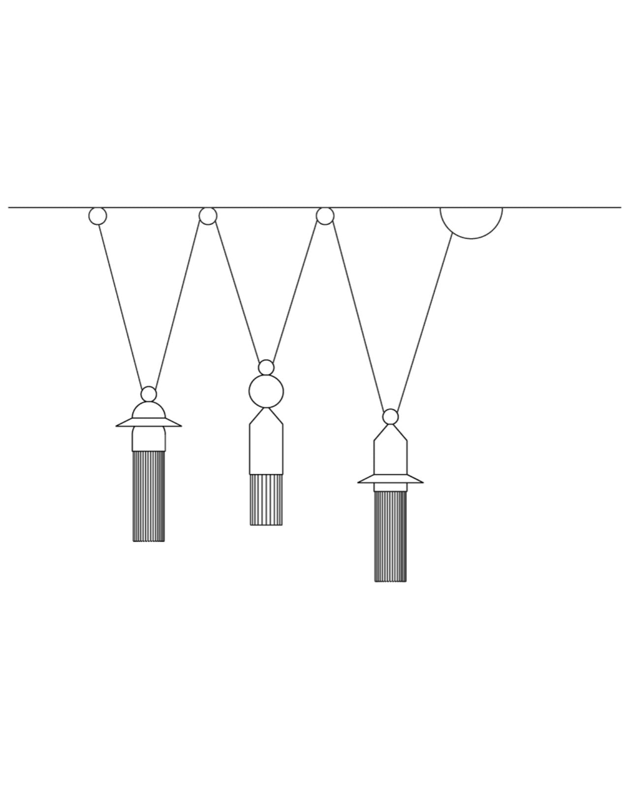 The pendant is available in an all-white finish, all-black and a cool and warm mixed-coloured finish, for a more retro-looking style, and can be arranged in two different arrangements, linear and pentagonal.