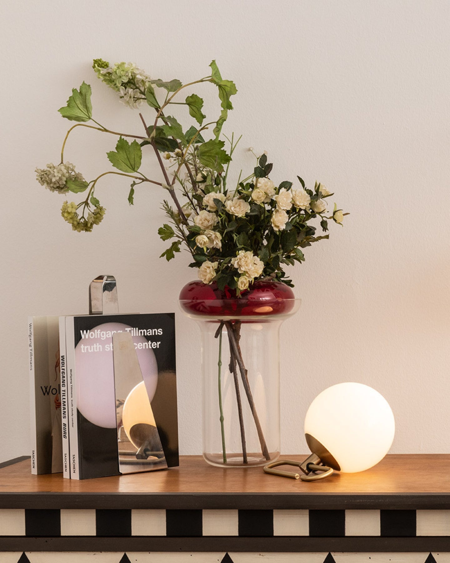 The Balancing Orb Table Lamp highlights the interplay between materials, form, craftsmanship, and light. It blends tradition and innovation through a thoughtful selection of materials, reflecting a responsible and sustainable design philosophy.