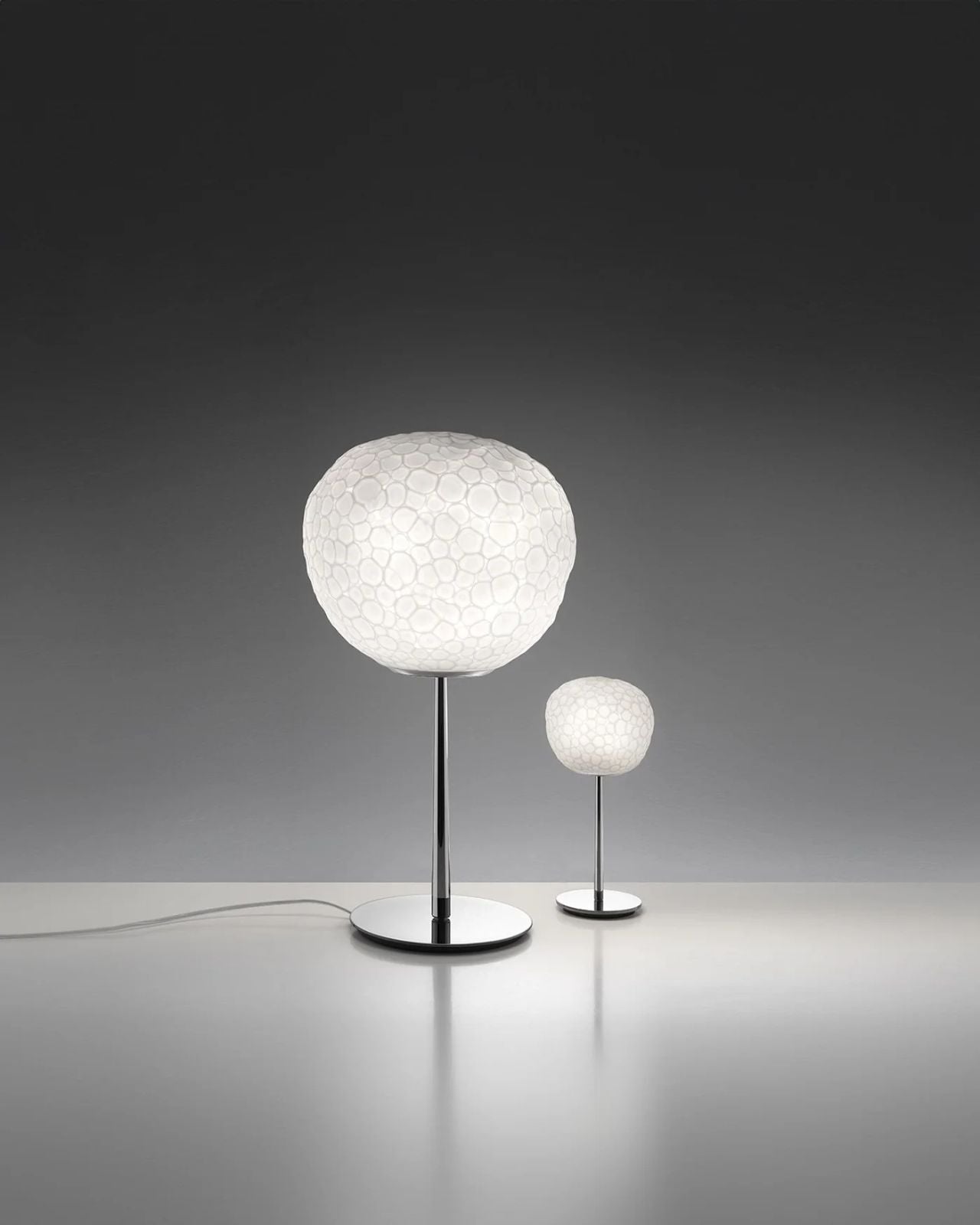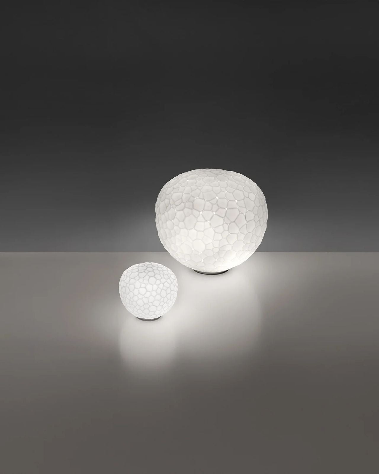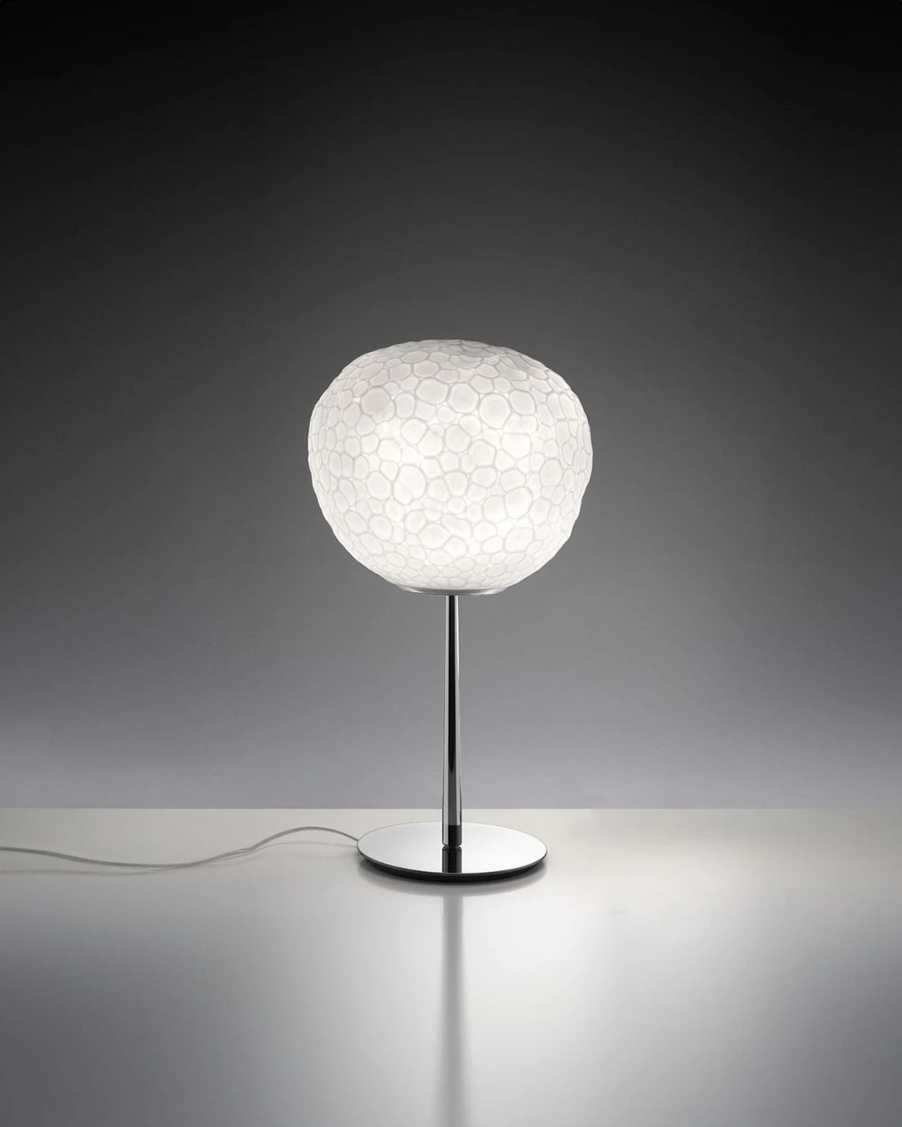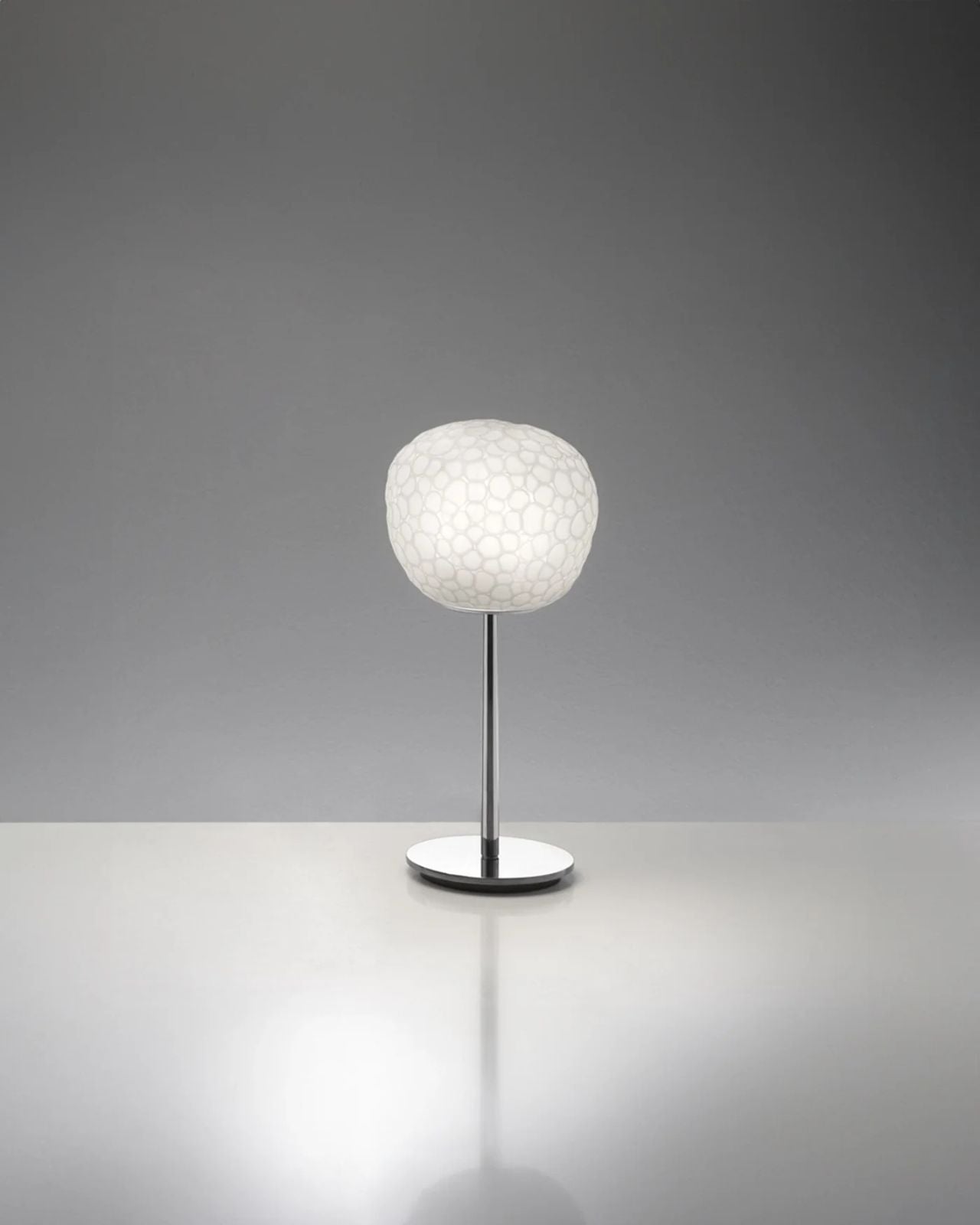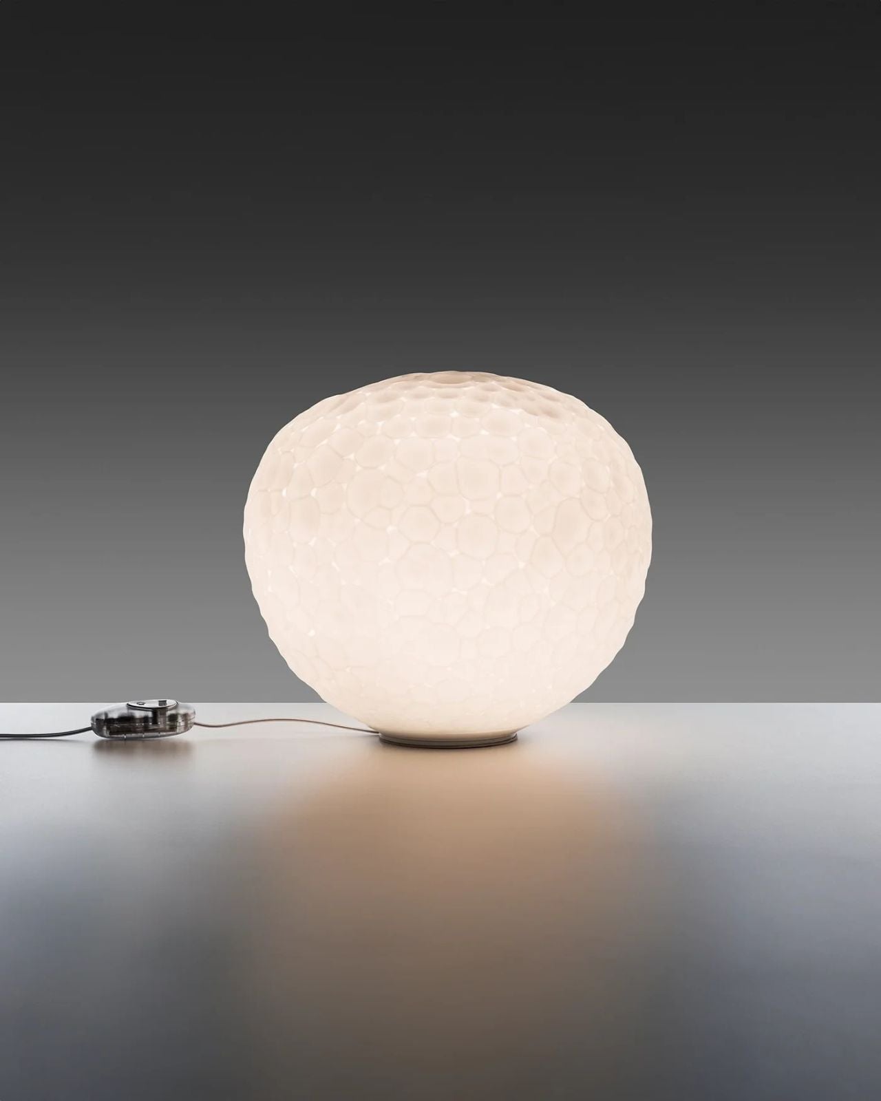 The Battuto Glass Table Lamp features a spherical diffuser crafted from double-layered artistic glass, handmade using a traditional mould-blowing technique and finished with meticulous grinding. Its surface draws on the Murano art of battuto glass, creating a textured, beaten pattern that gently disperses the light. When lit, the orb radiates a soft, organic glow, reminiscent of natural stone or cellular forms, making it both a functional lamp and a sculptural statement piece. Ideal for a range of interiors, specifically minimalist, contemporary, organic, and Scandinavian spaces.