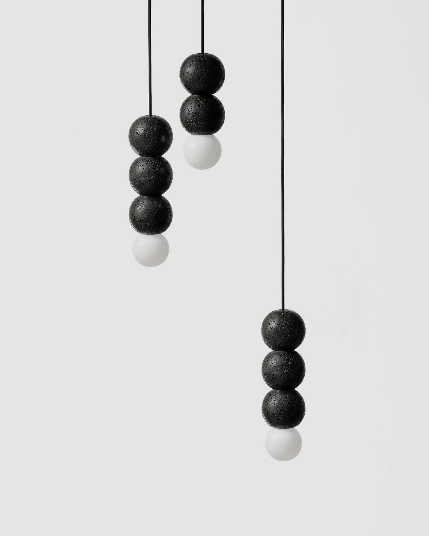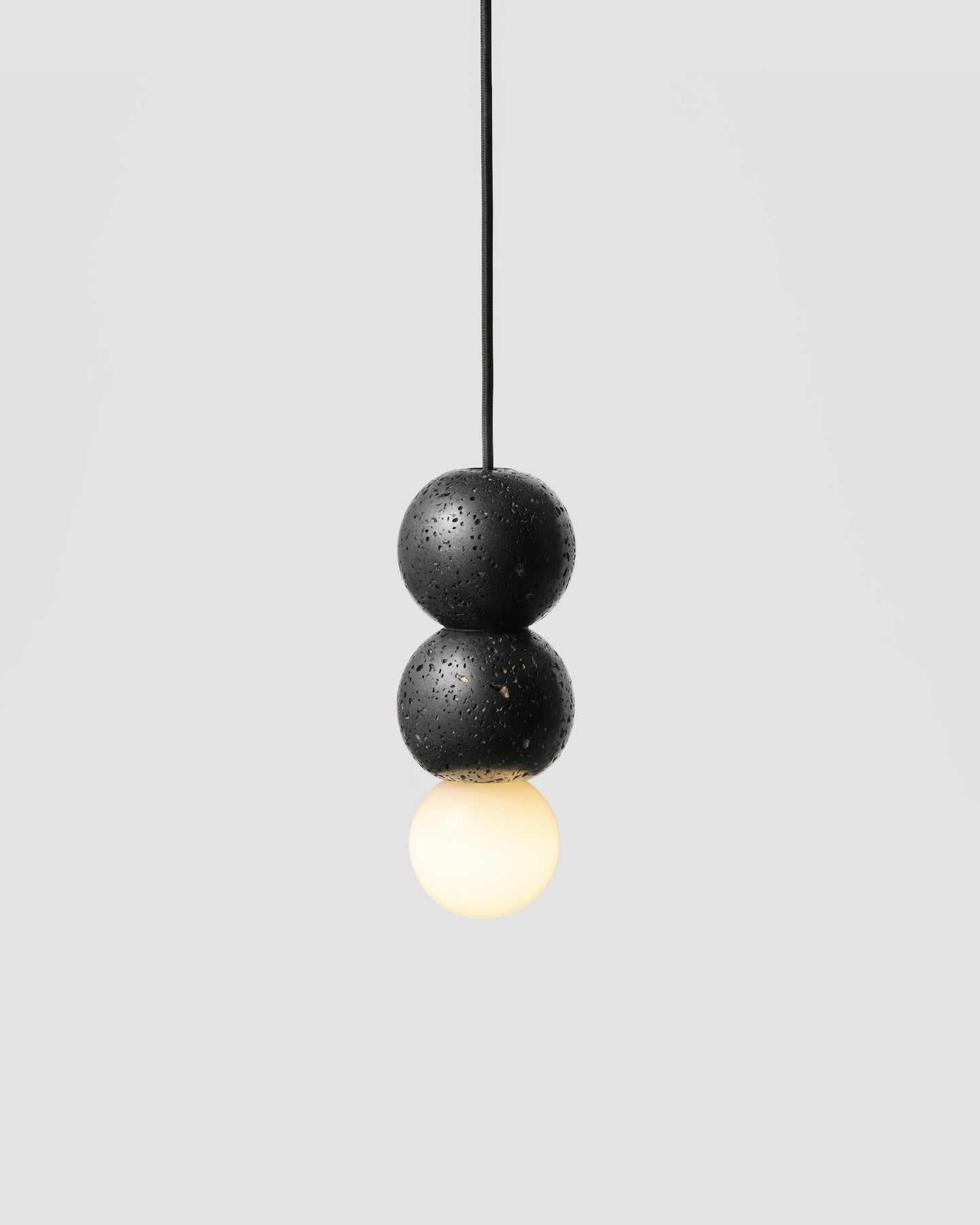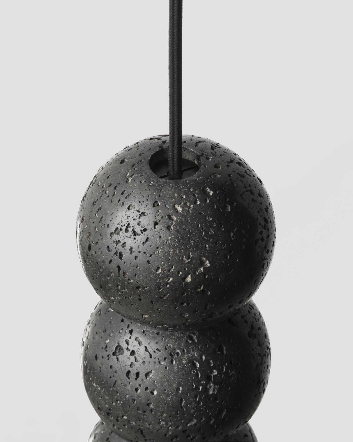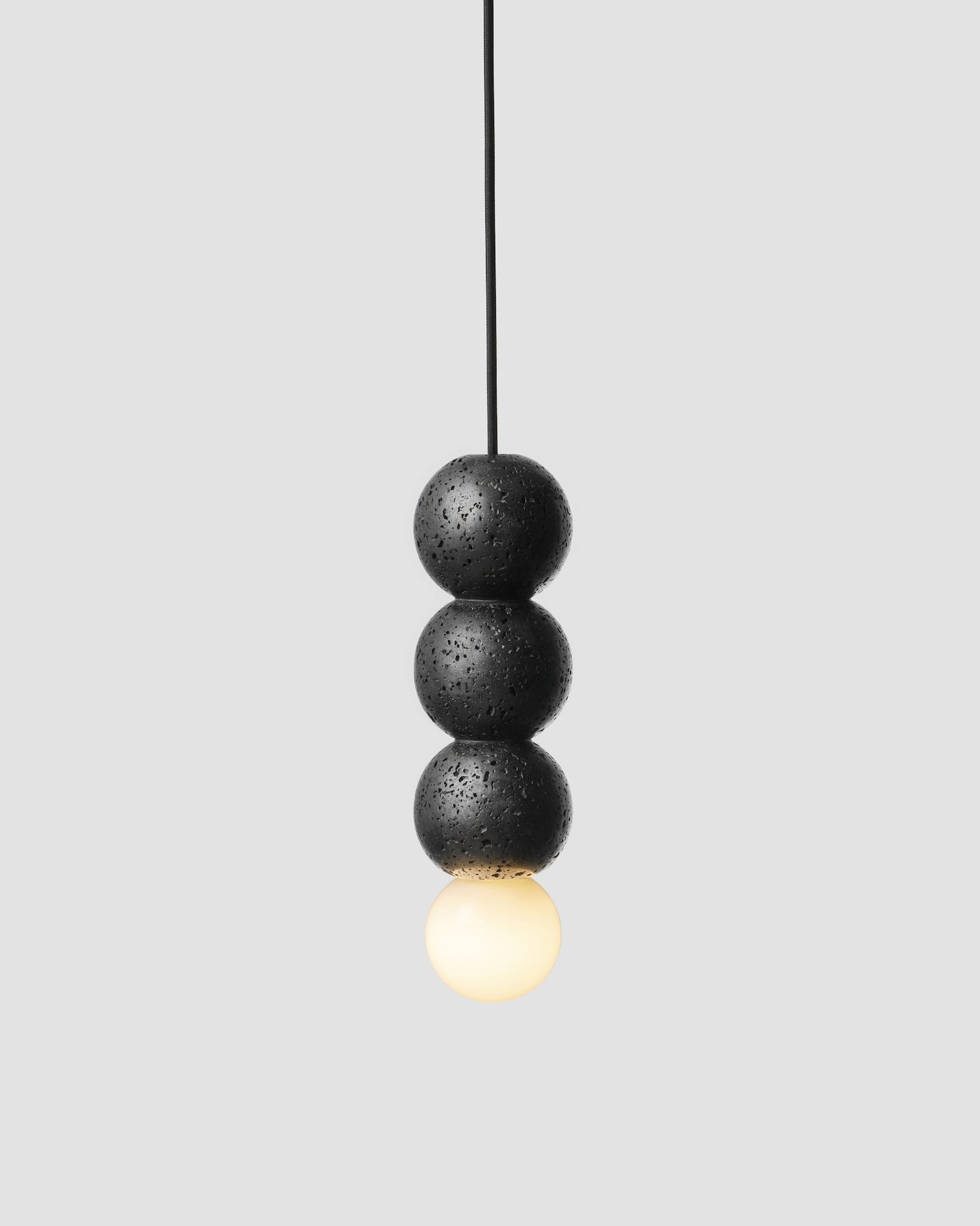 Suspended with a 3000mm Black Braided Cable the Beaded Lava Stone Pendant can be installed individually or as a cluster as a modern take on the traditional chandelier.