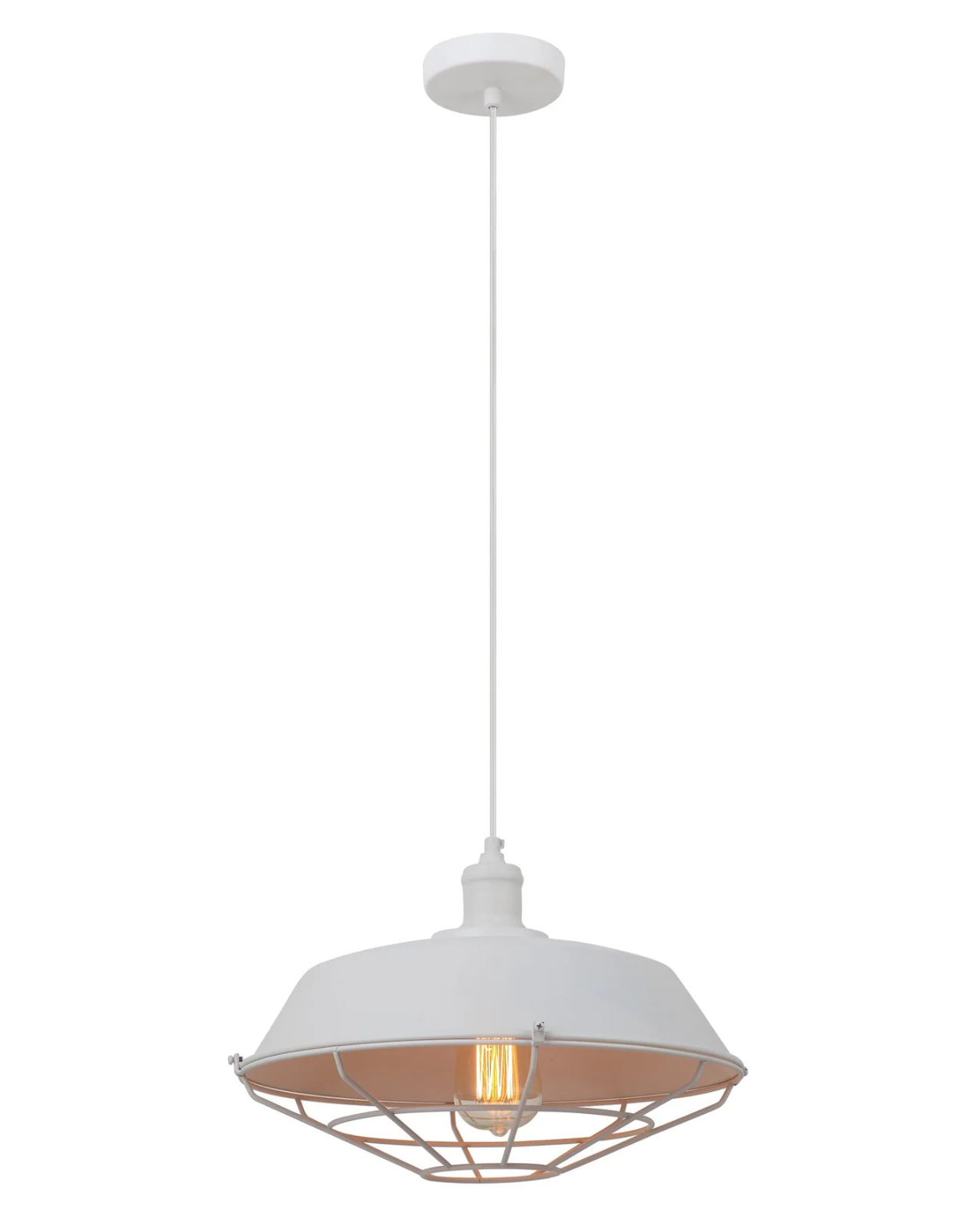 This industrial styled black or white pendant light adds an artistic brutalist feel. Boasting a caged design with a minimalistic suspension, this pendant light would suit any industrial-style room.