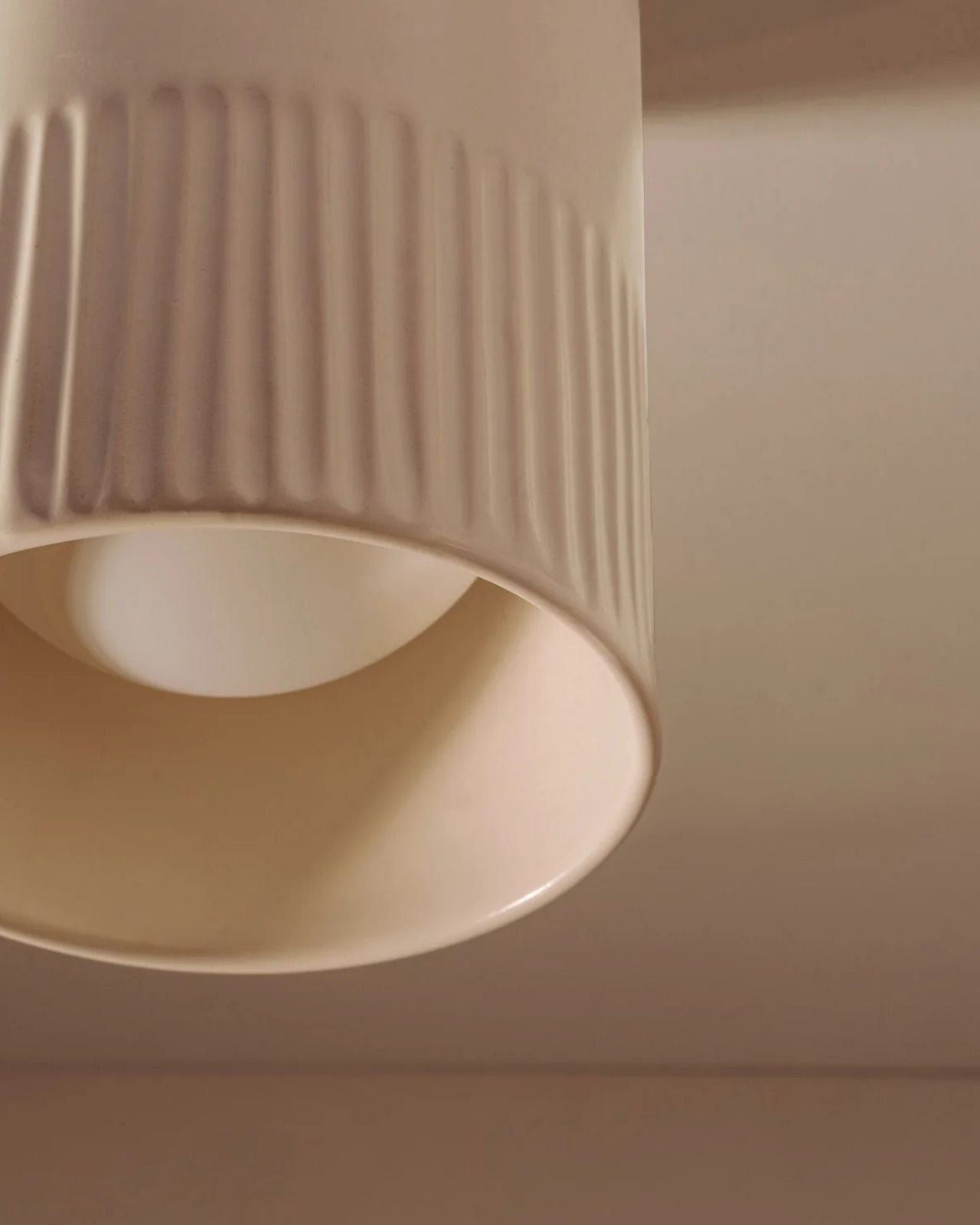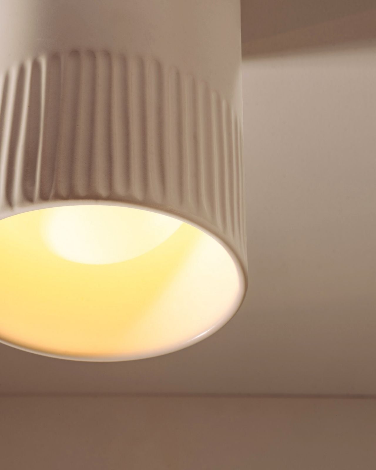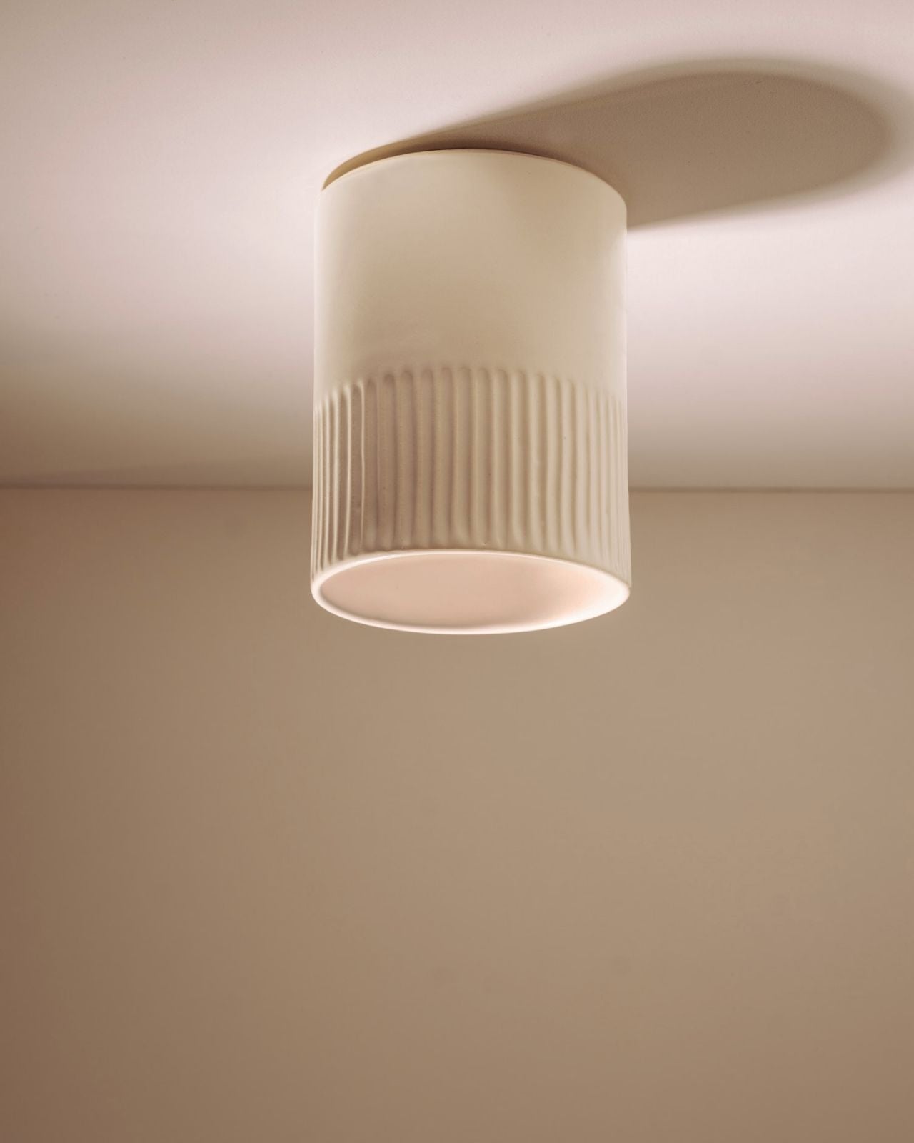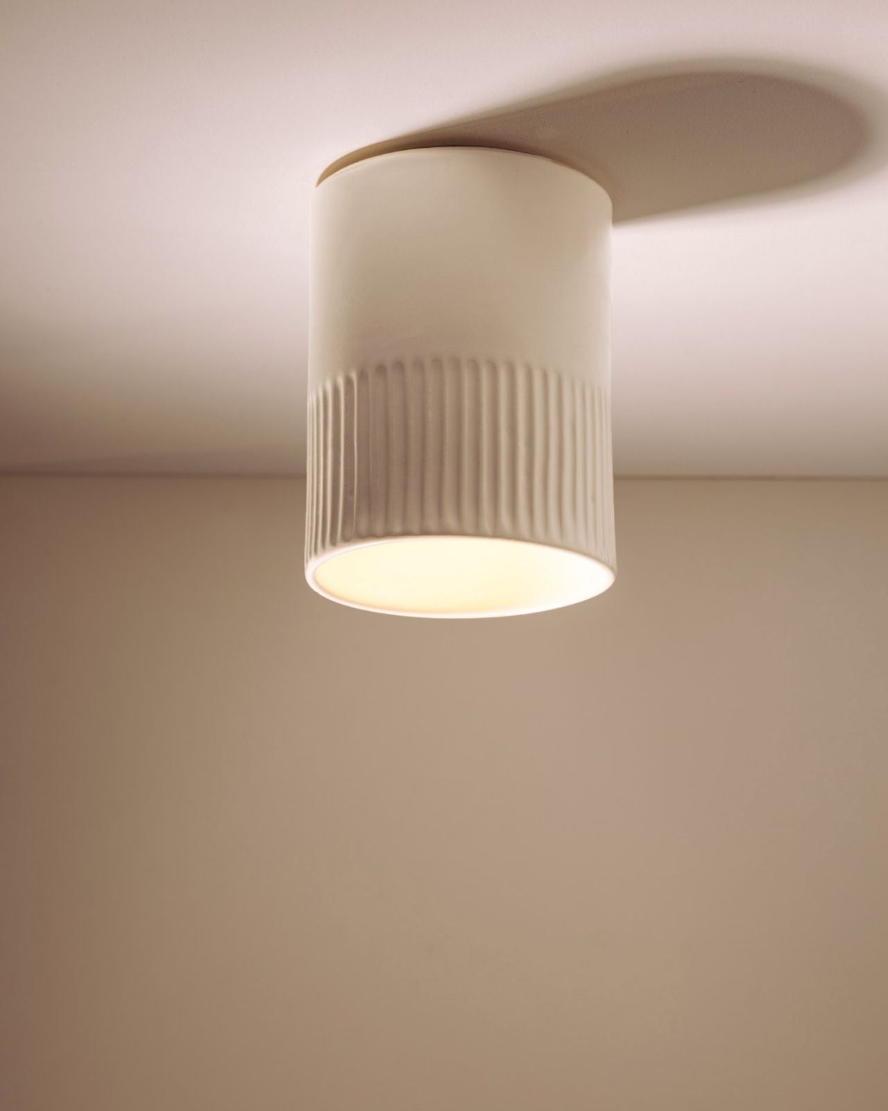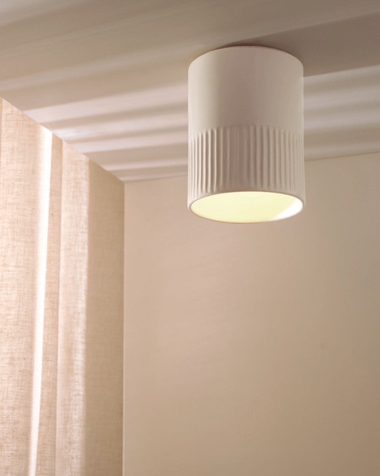 Carefully crafted from smooth ceramic clay in Tasmania, Australia this ceiling light is designed to bring elemental ambience to any interior space. Individually hand-dipped in an eggshell white glaze, the rippled cylindrical shape of Day is a stunning ceramic feature for lighting up a room.