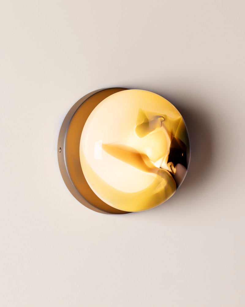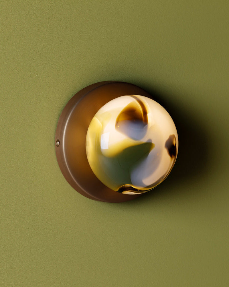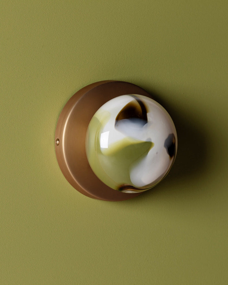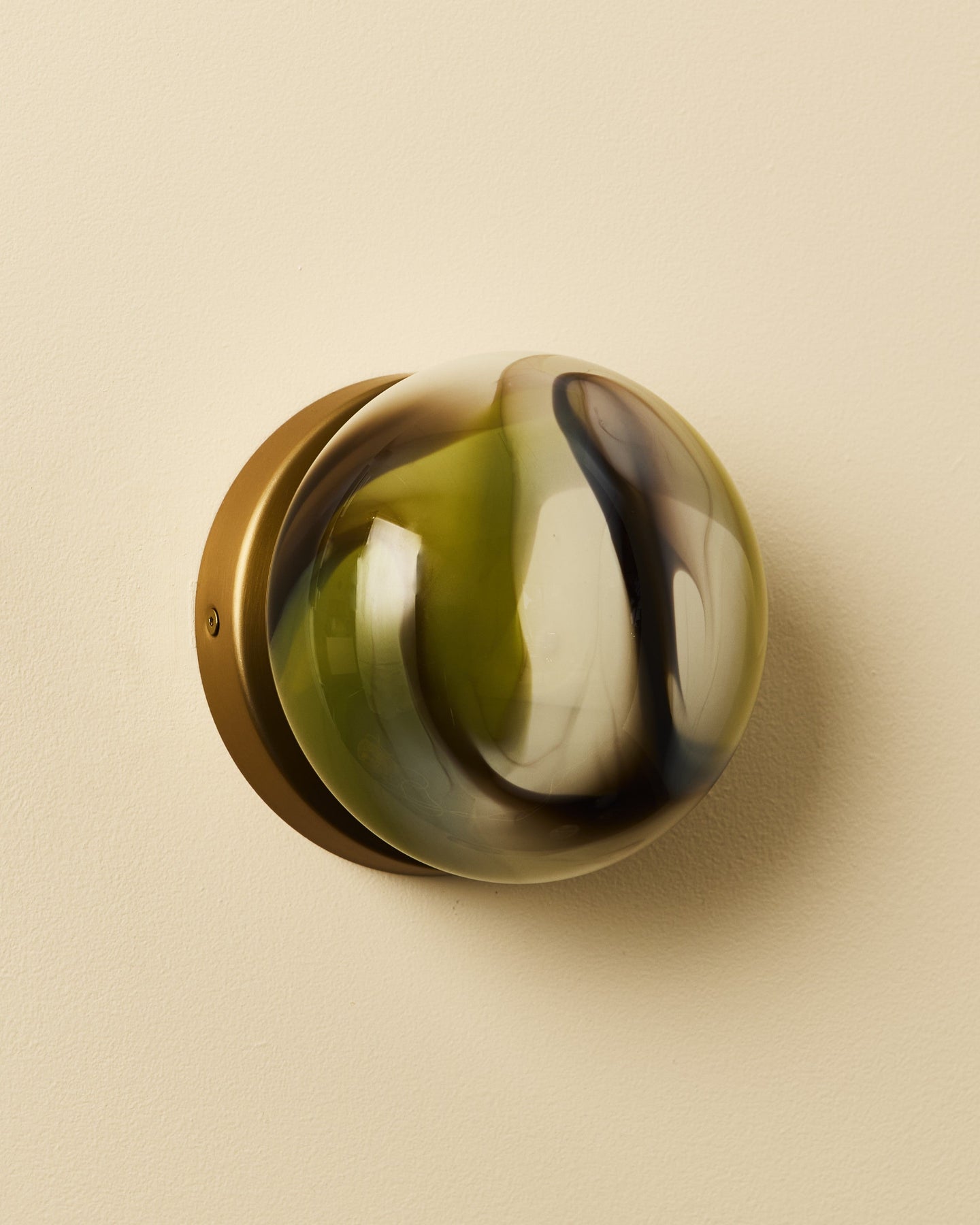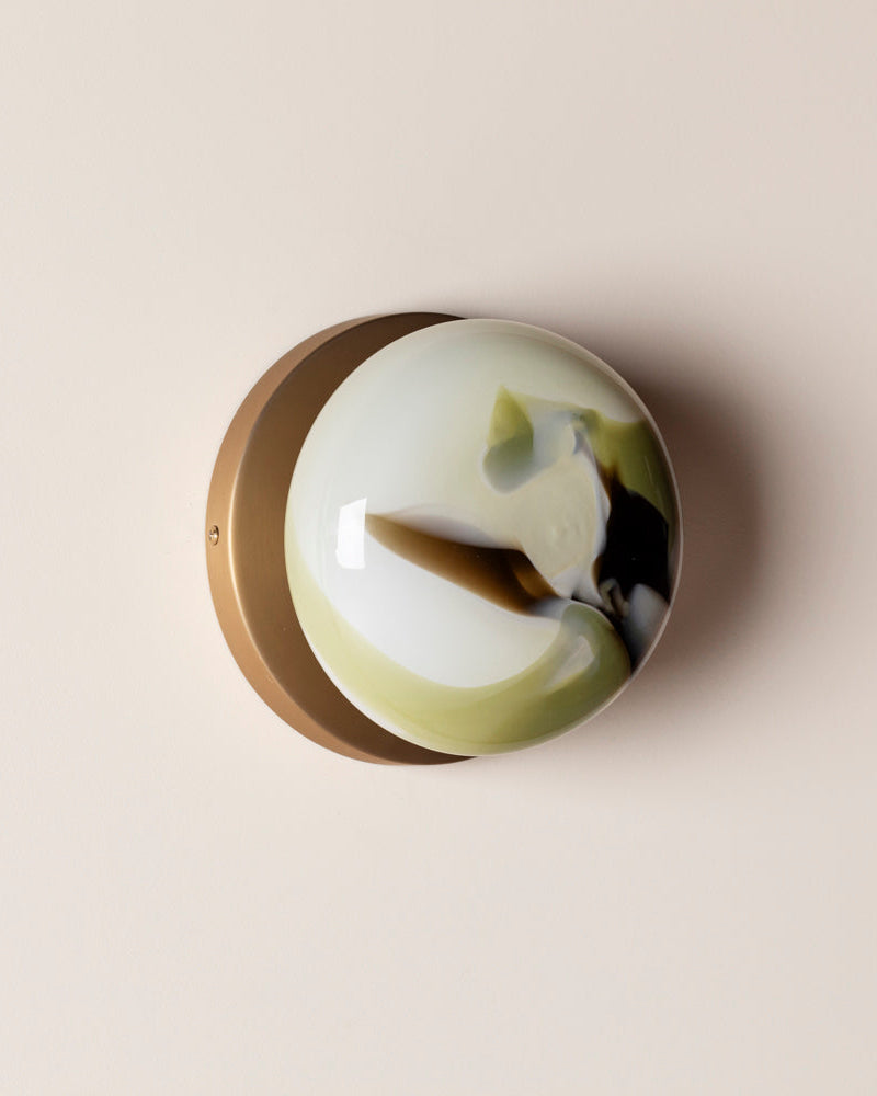 Handcrafted in Melbourne, Australia, the Colourscape Wall Light in Pistachio showcases a blend of pistachio hues, including earthy browns, pistachio greens, and soft whites. This wall light draws inspiration from the ever-shifting Australian skies, with its unique marbled effect reflecting the dynamic nature of the natural world. Each piece is a one-of-a-kind creation, highlighting the meticulous artistry involved in its making. The captivating blend of colours makes this light a versatile addition to any room. Available in various finishes and sizes, this light can be tailored to complement contemporary interiors.