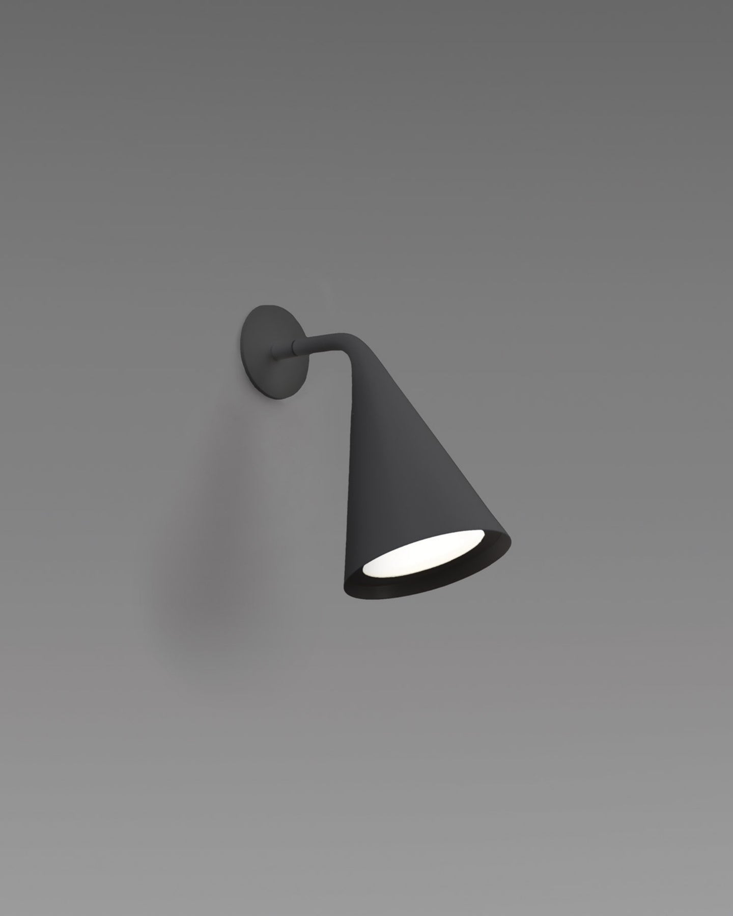 Both versatile and practical, this wall light will be perfect as a bedside lamp, in a corridor, or over a console table. The refined and elegant conical shade is mounted on a short arm crafted from long-lasting aluminium. The mount is coated with black epoxy powder and the shade is available in brass, black and chrome, or a matte black finish to suit any interior style.