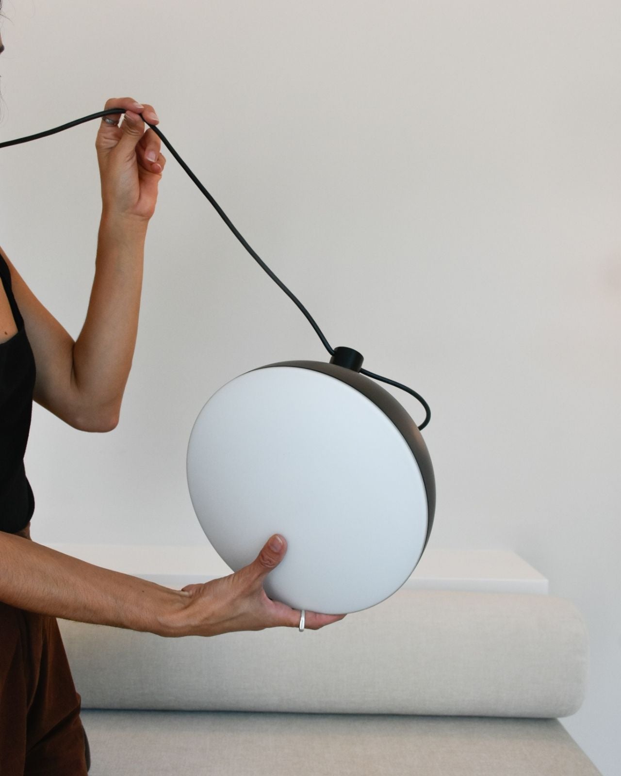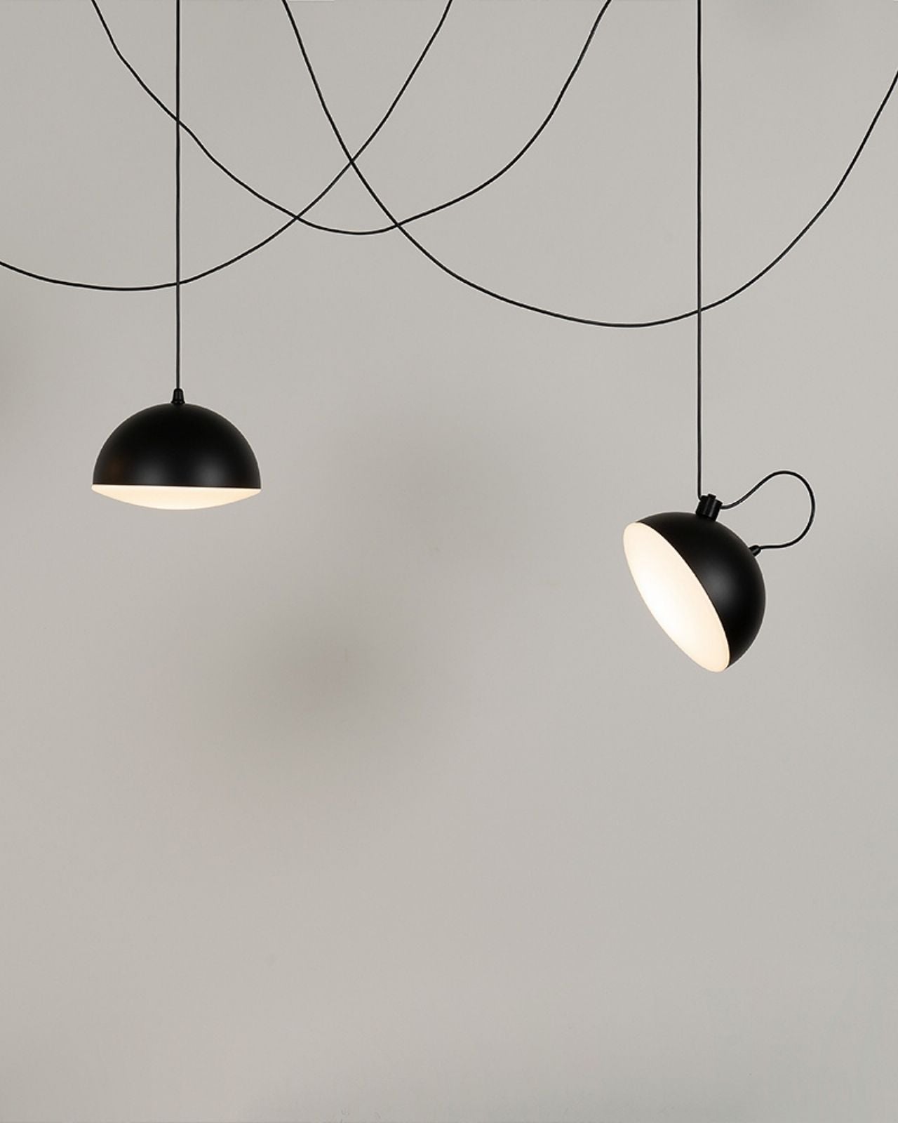 An incredibly versatile addition to any space. This demi globe pendant sits suspended by a black cord, inviting the simplicity of this pendant light to create a striking interplay between function and form. Style as a single pendant or cluster of three.