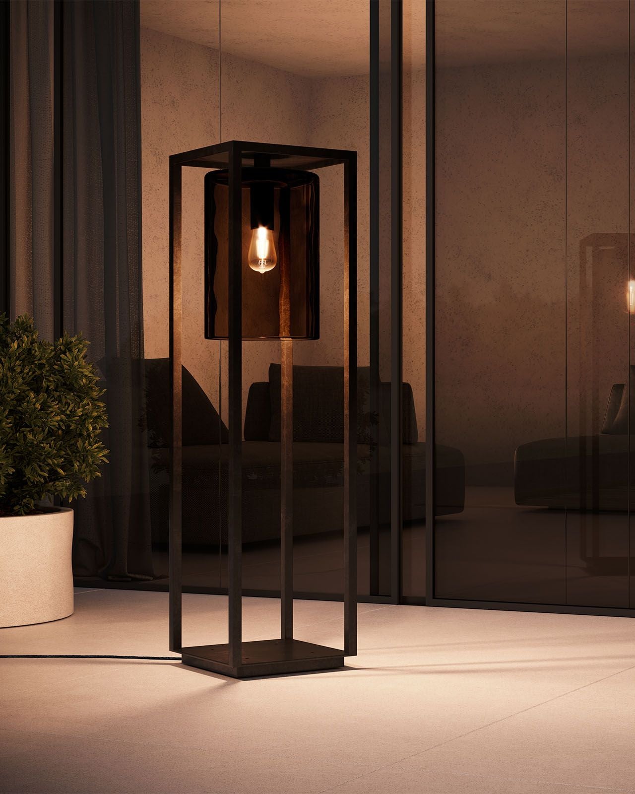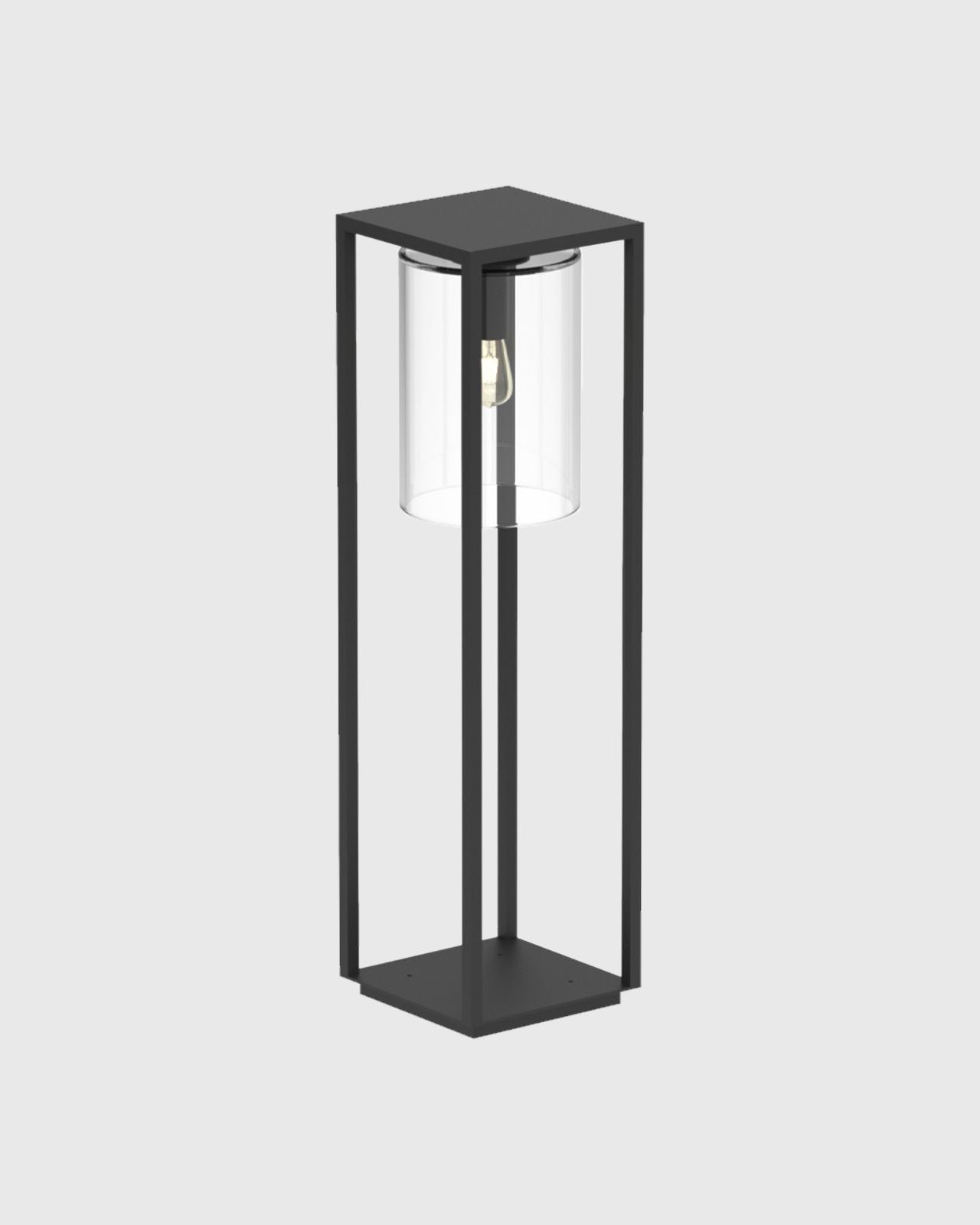 This modern outdoor bollard consists of an aluminium box frame, available in matte black or matte white. Supplied with 6m of cord and plug, allowing you to move this lamp around to suit your lighting needs. Each of the glass finishes produces a different lighting effect; the clear creating a sparkling illumination while the coloured glasses produce a soft, diffused light.