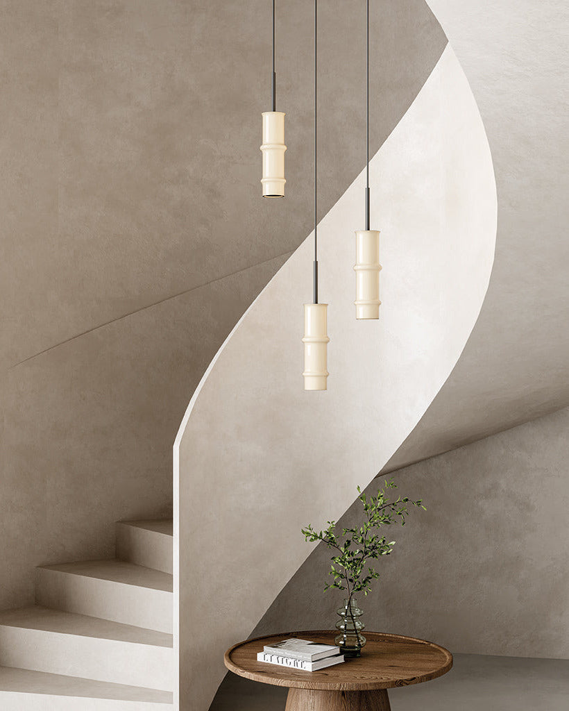 Designed by renowned Spanish designer Agus Gascón, this contemporary pendant features a sleek cylindrical form inspired by the natural shape and rhythm of bamboo. Crafted from high-quality opal glass, it emits a soft, diffused glow that brings warmth and balance to modern interiors. Its refined simplicity makes it a versatile choice for bedrooms, living areas, and other inviting spaces.