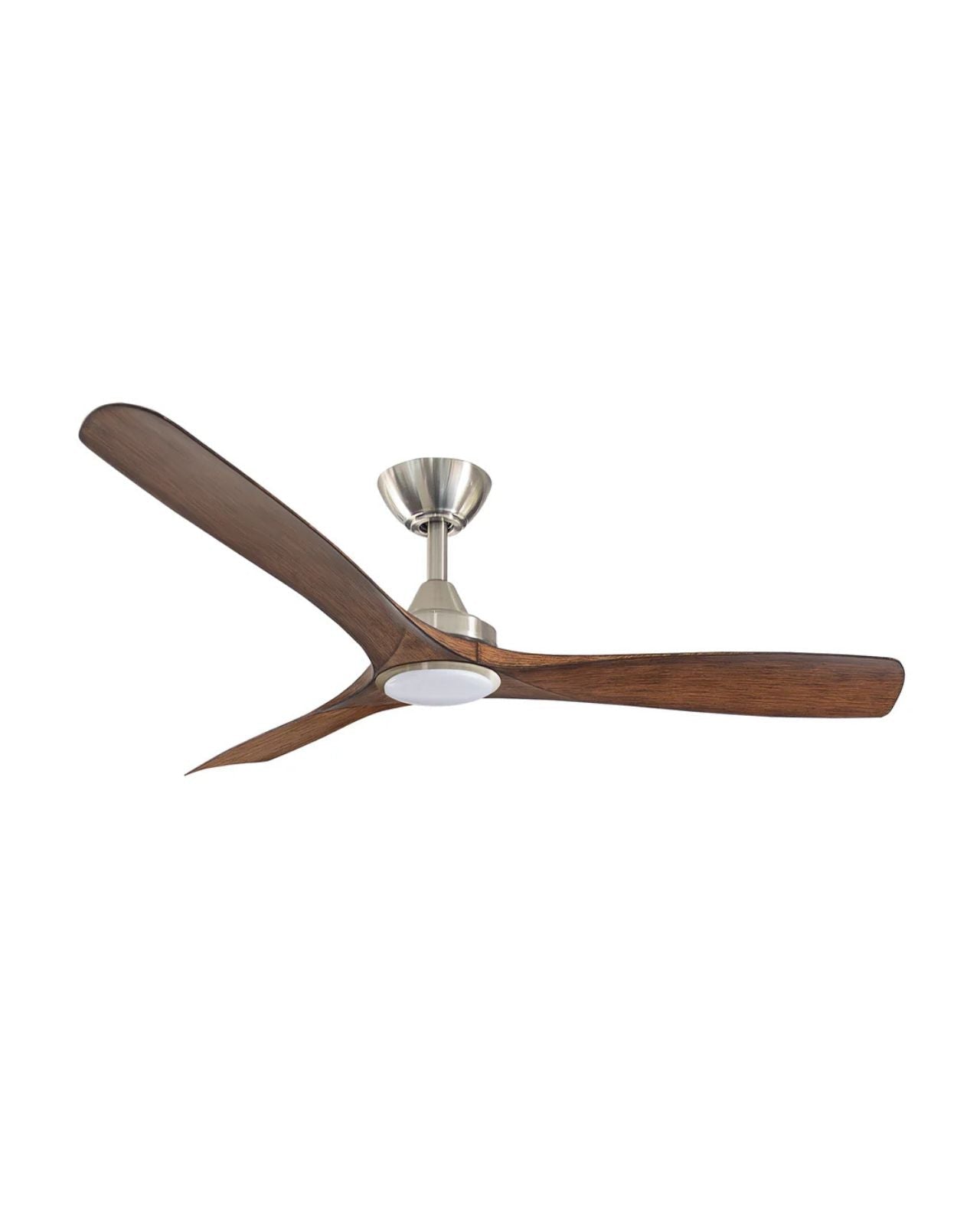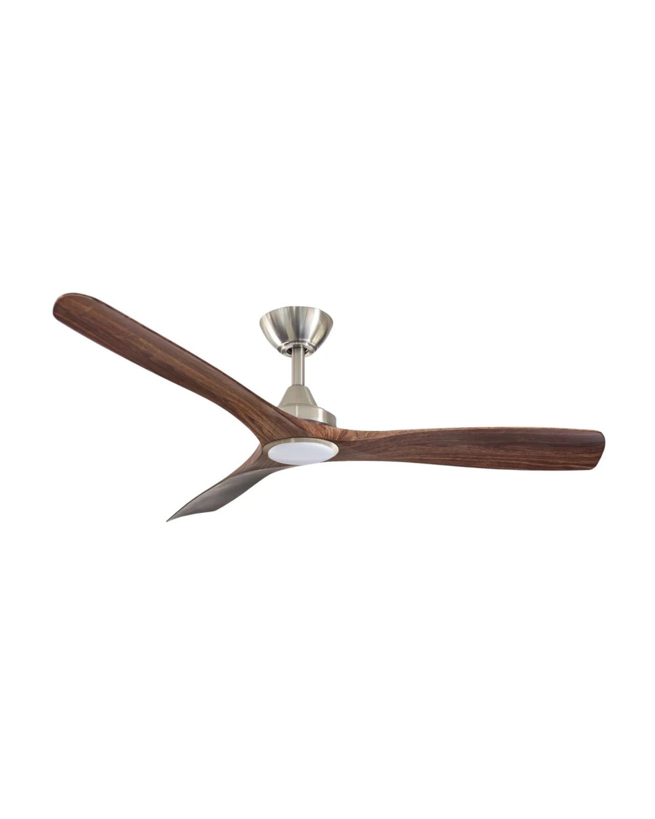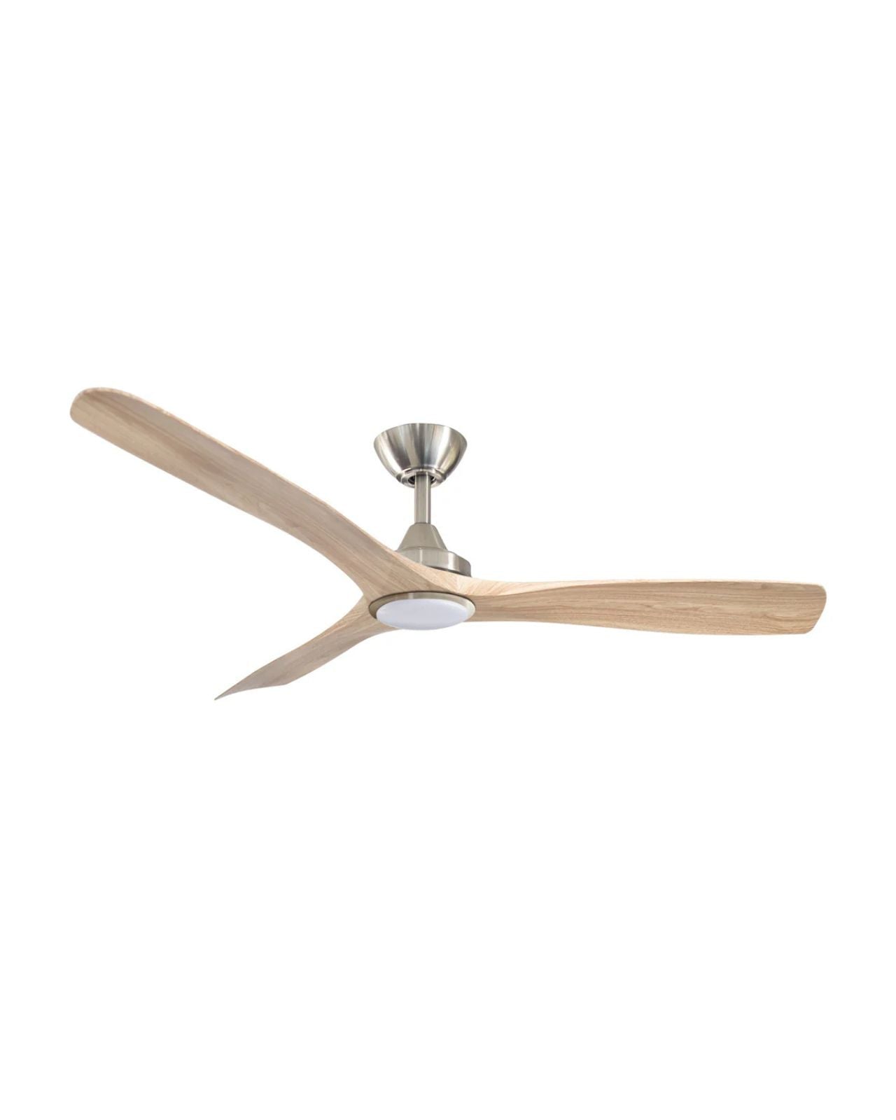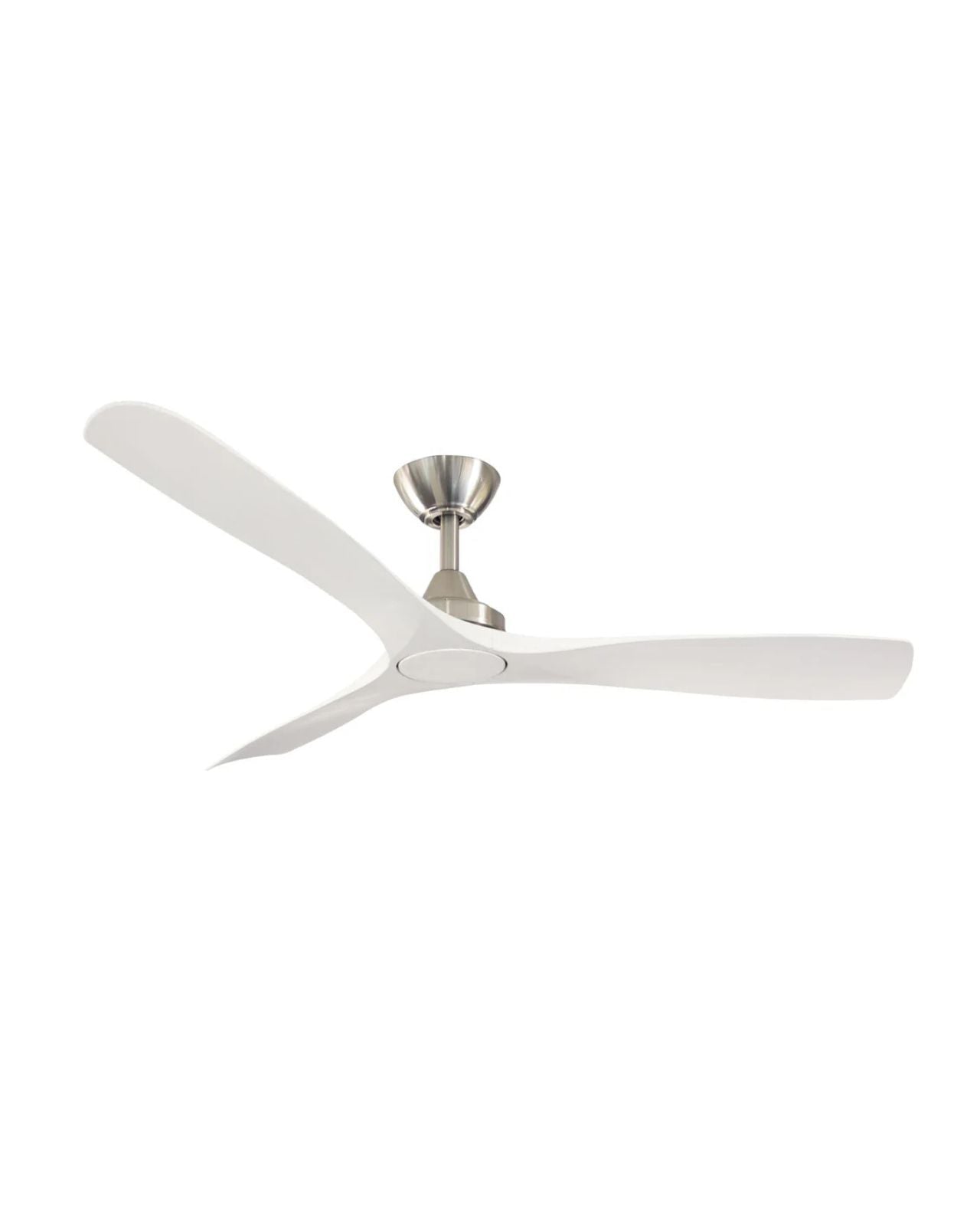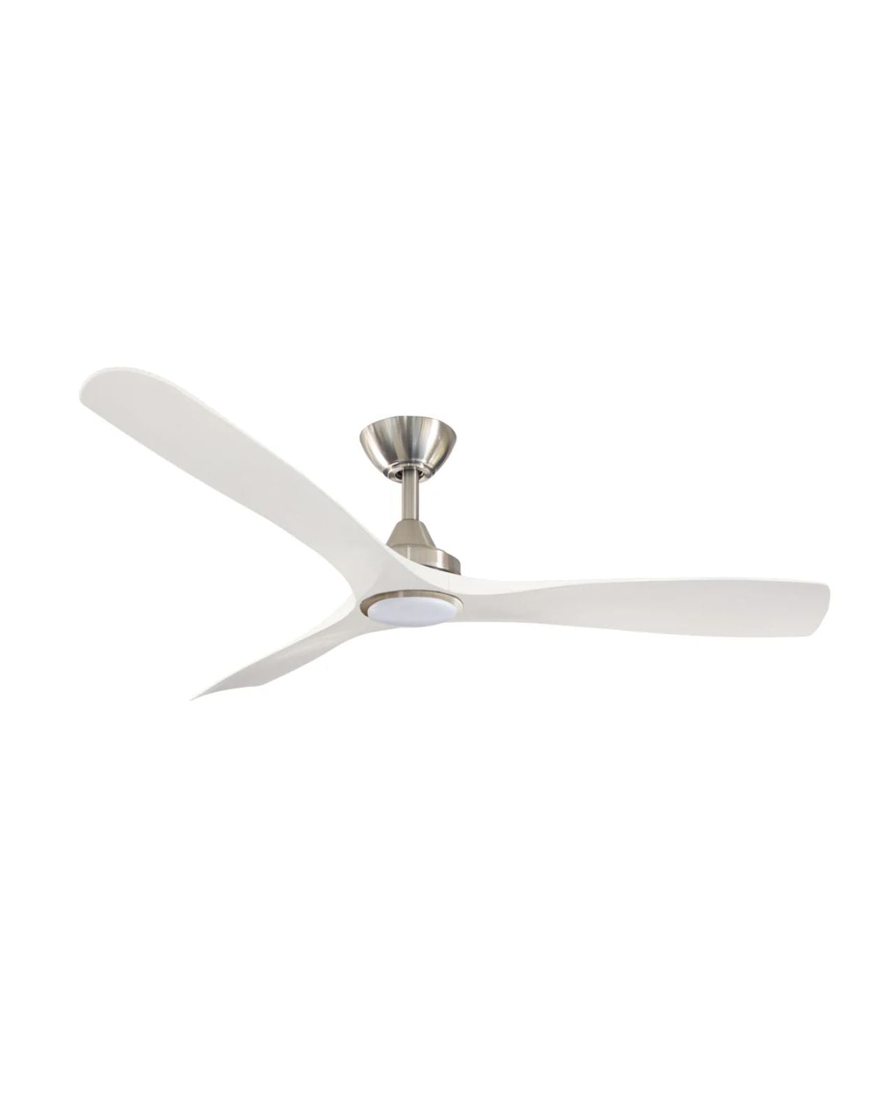 The Spitfire DC ceiling fan complements a variety of interior decors with two sizes it is ideal for large and small spaces such as master bedrooms, living rooms, and alfresco areas. Featuring a powerful and efficient DC motor, this fan runs at a maximum speed of 145 RPM and moves up to 15,968 CMH of air while consuming only 35W. The blades are crafted from a corrosion-proof, UV-stabilised polymer that is both quiet and durable. Furthermore, it includes a 6-speed remote with summer/winter modes, fan-off timers, and a dimmable LED light with CCT support for Warm, Cool, and Daylight temperatures. It supports ceiling slopes up to 12° and can be installed on ceilings 2.4m and higher. Suitable for indoor use only.