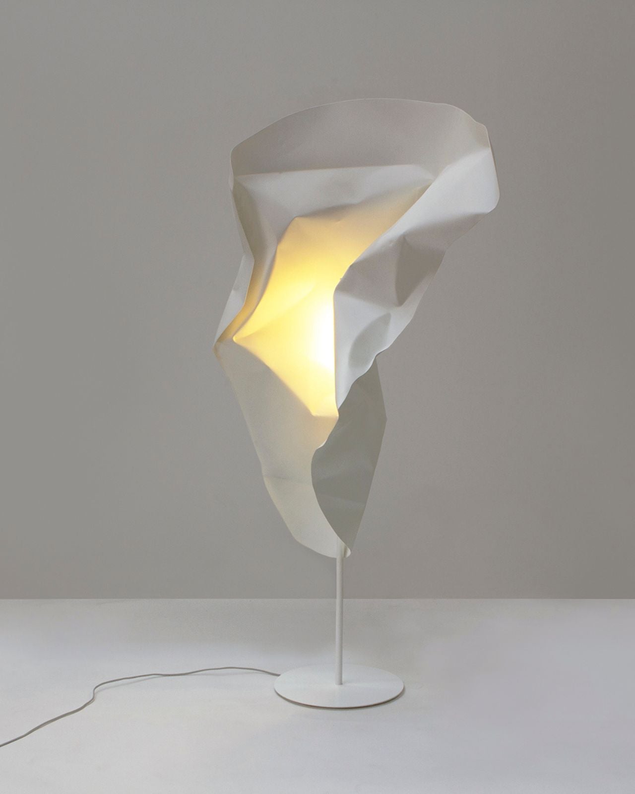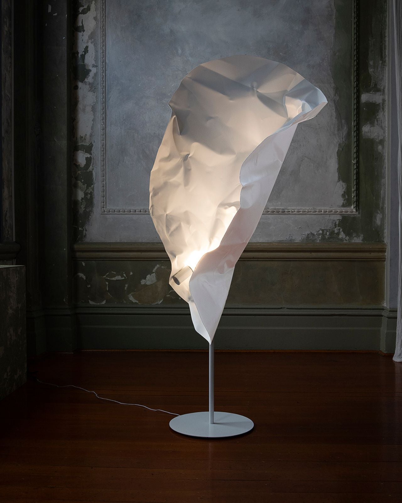 Made to order in Melbourne, the Crash Albus Floor Lamp reimagines salvaged car panels from automotive wreckers, turning them into a sculptural floor lamp design. Finished in an ultra-matte white, this design exudes the refined softness of porcelain, making it a captivating centrepiece in any interior. With a focus on optimistic renewal, this floor lamp transforms discarded materials into a delicate yet bold lighting sculpture. It features an integrated 3000K LED.