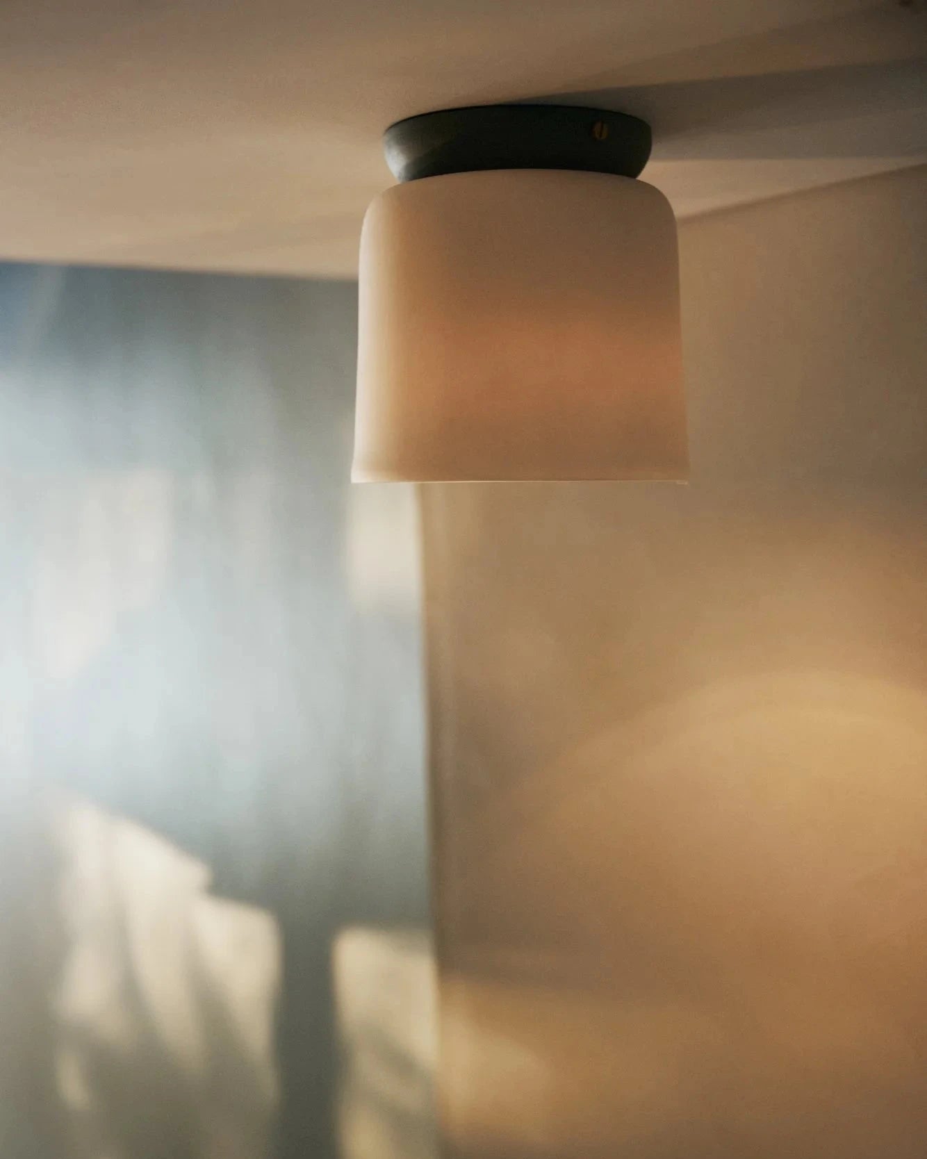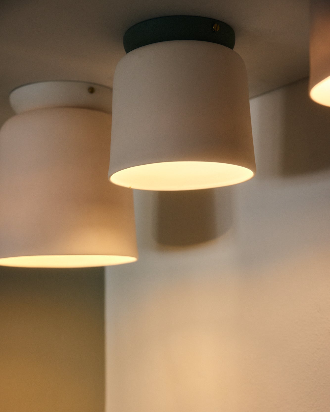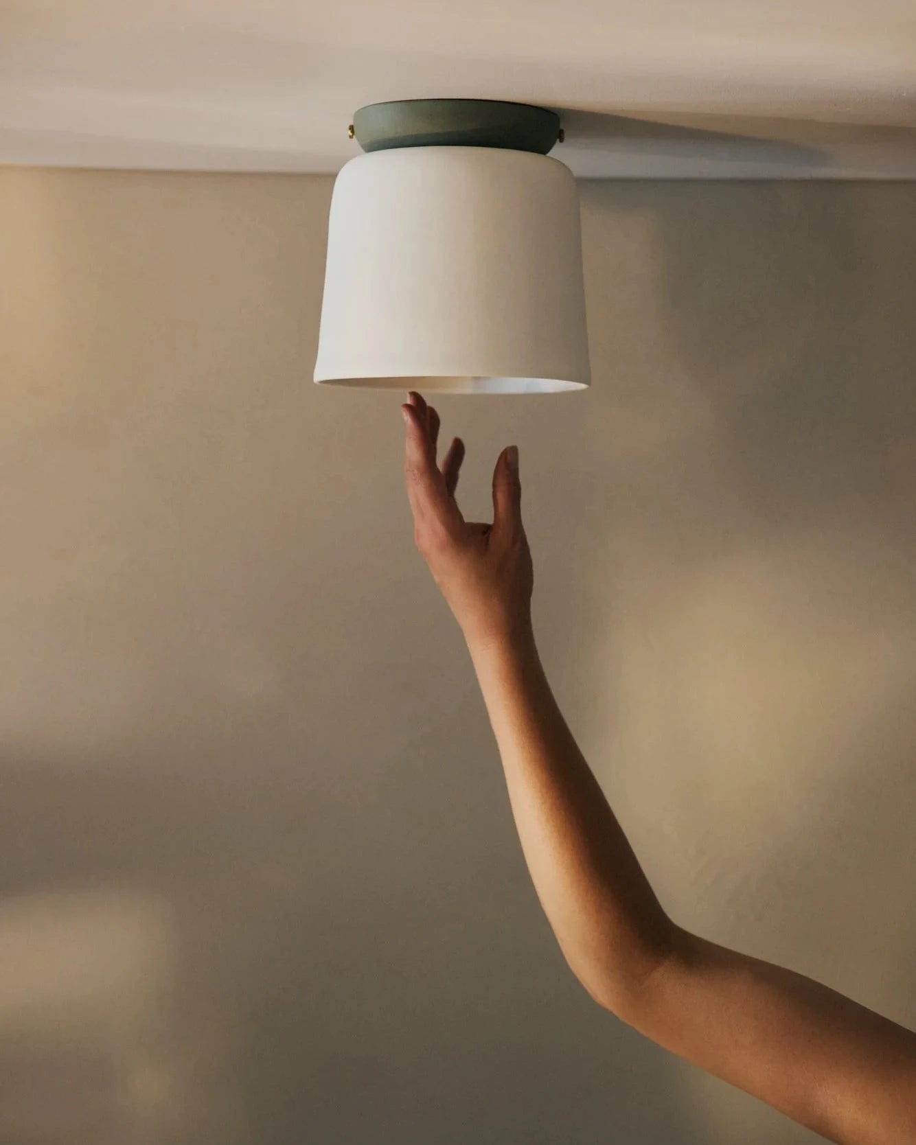 Each piece is handcrafted by Studio Enti, allowing the choice of two complementary tones from their colour palette one for the ceiling mount and another for the shade creating subtle personalisation and a touch of individuality within the minimalist design.