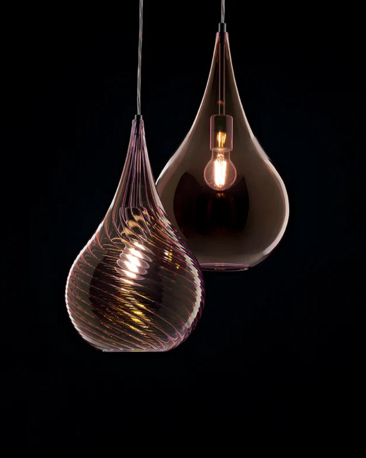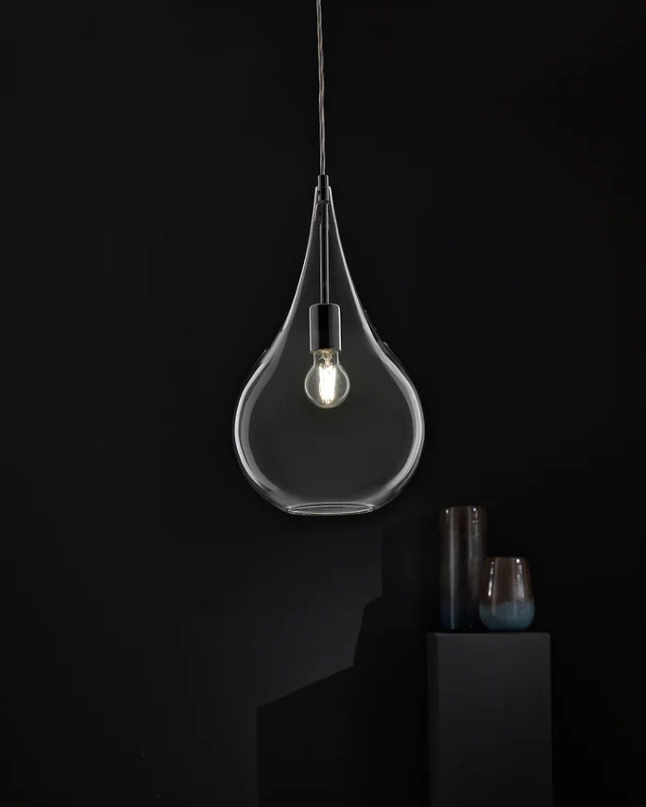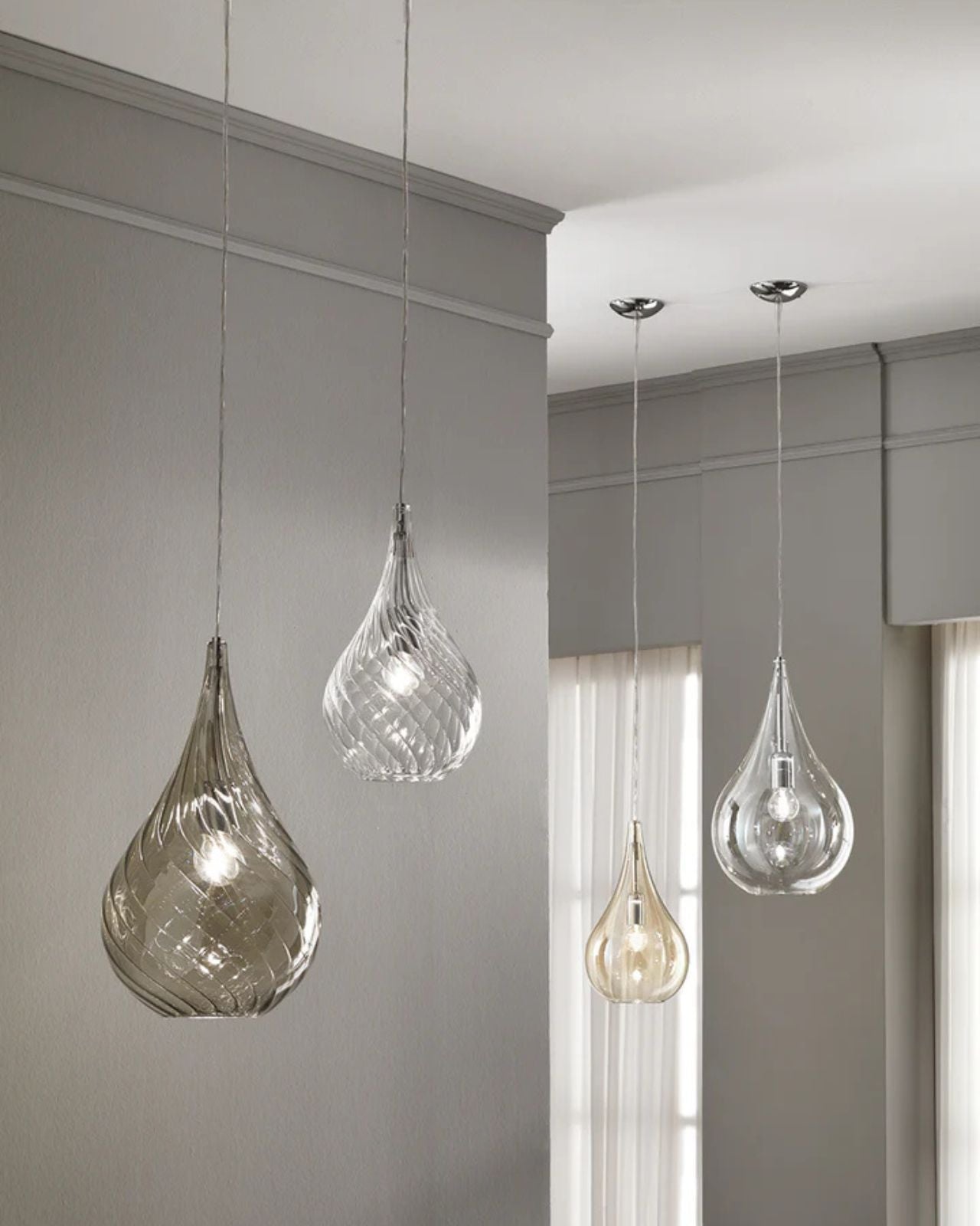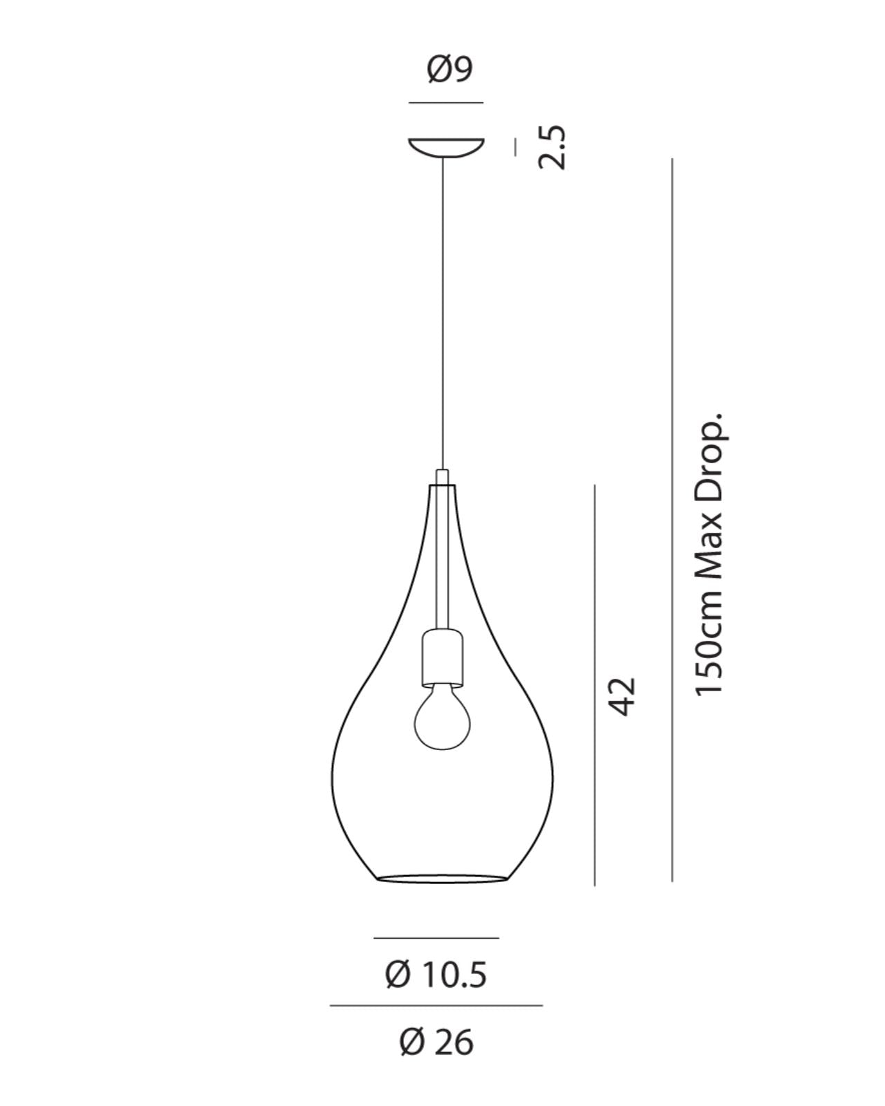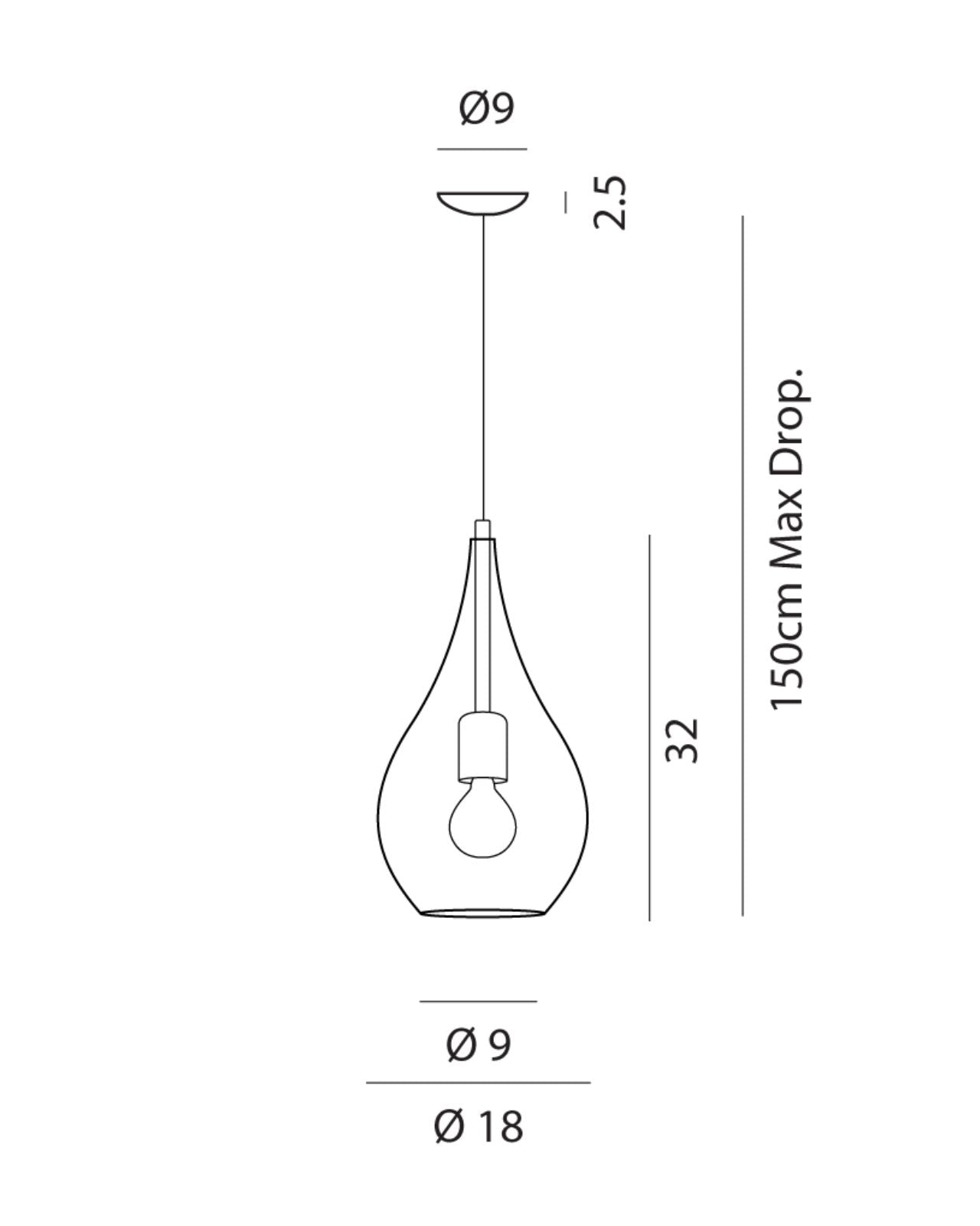 This exquisite pendant light showcases Italian design that can complement both traditional and contemporary interior styles. Its tear drop shape features a chrome frame and comes with an option of smooth or ribbed glass that is suspended by a delicate cord suspension.