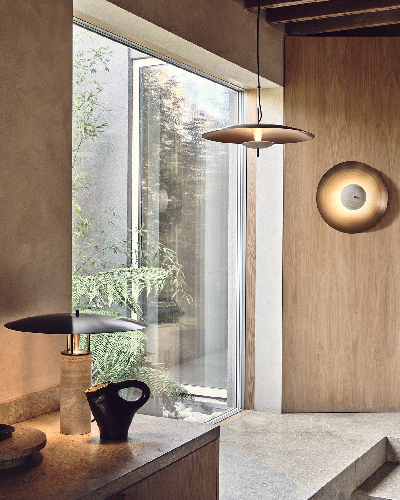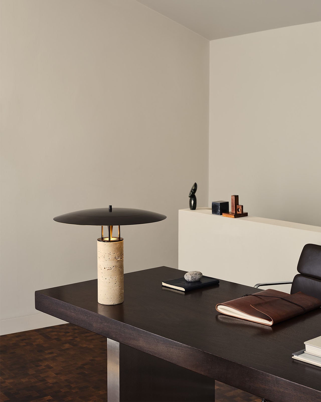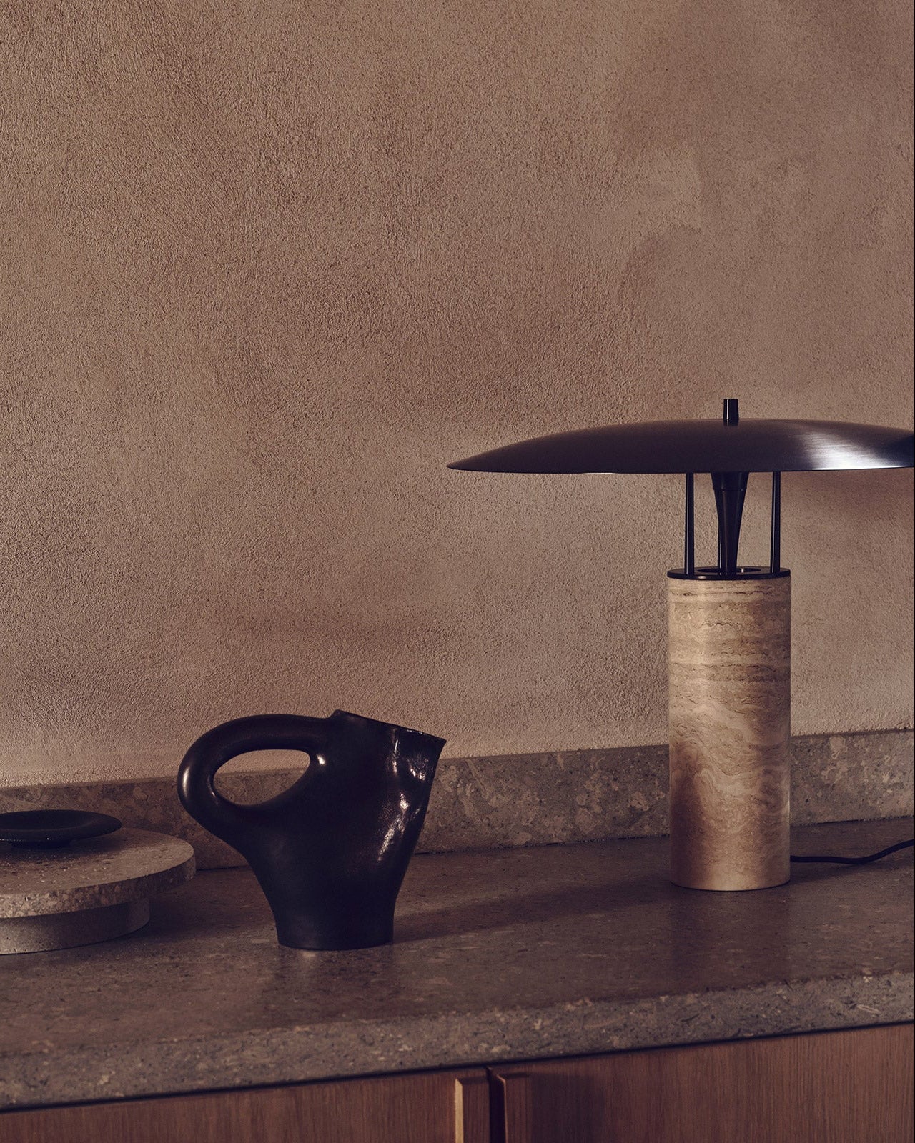 Elemental Disc Table Lamp - Antique Brass & Black Marble