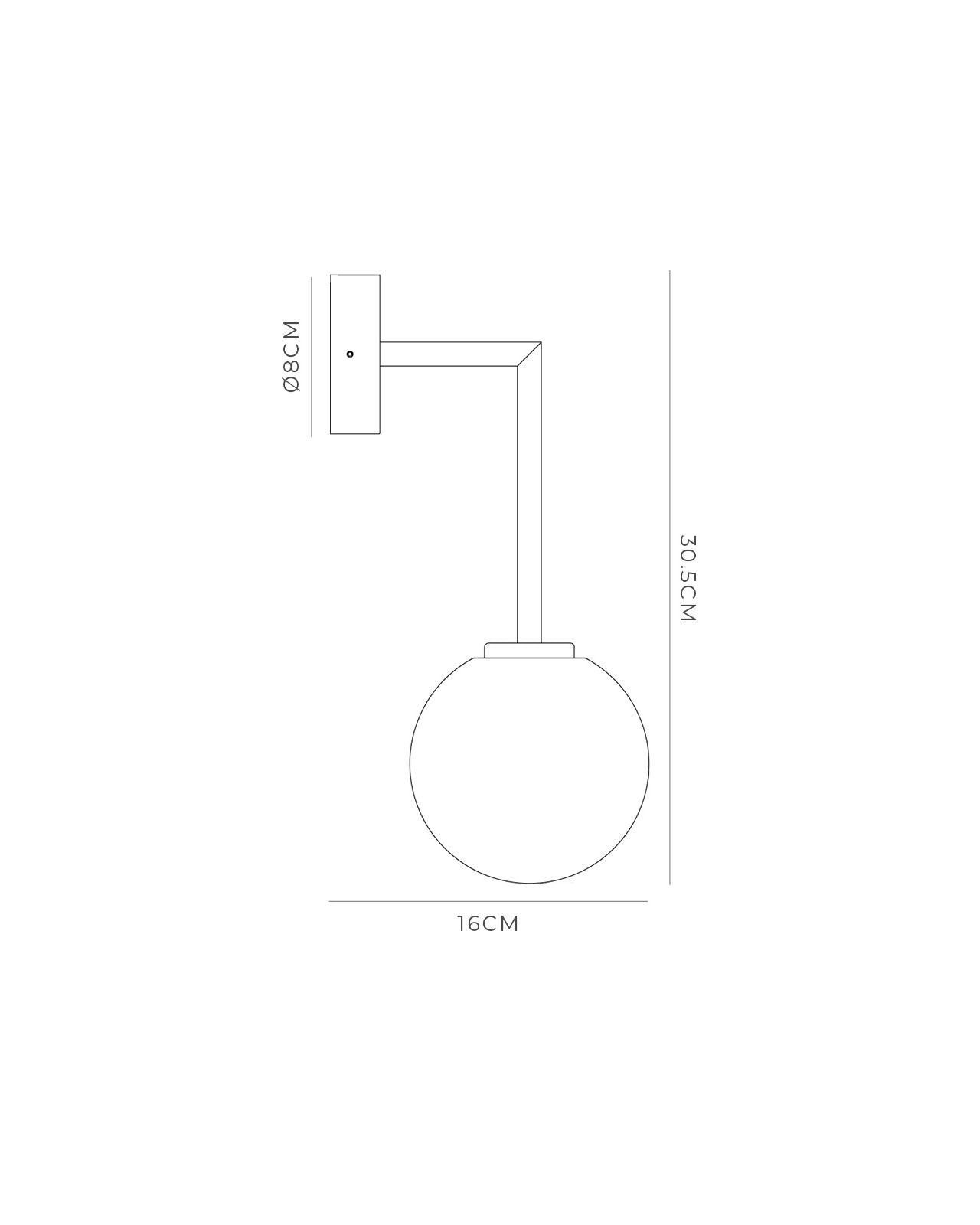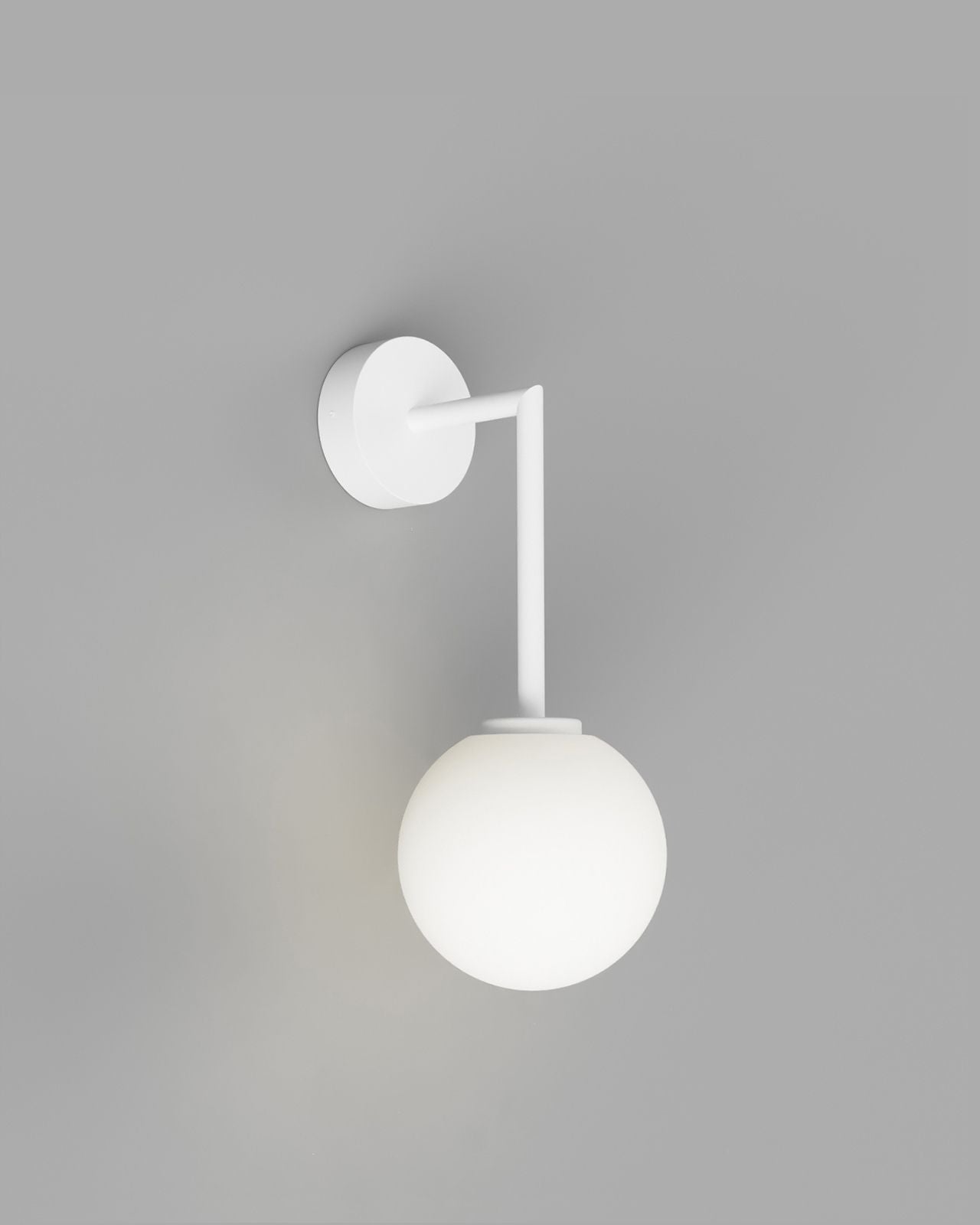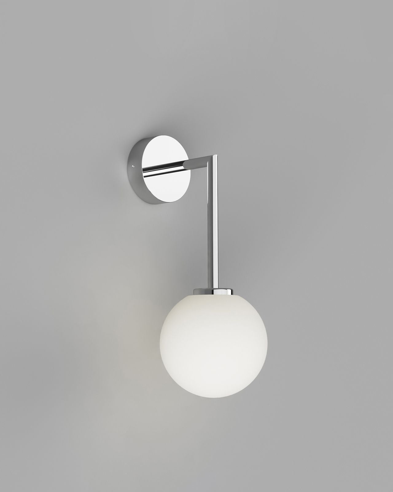 A modern collection of minimalistic and popular orb lights designed on an extended arm wall mount, available in three finishes and two globe sizes. The perfect addition to bathrooms, bedrooms and living rooms. This wall mount brings a gentle luminosity to rooms, through the frosted glass shade.