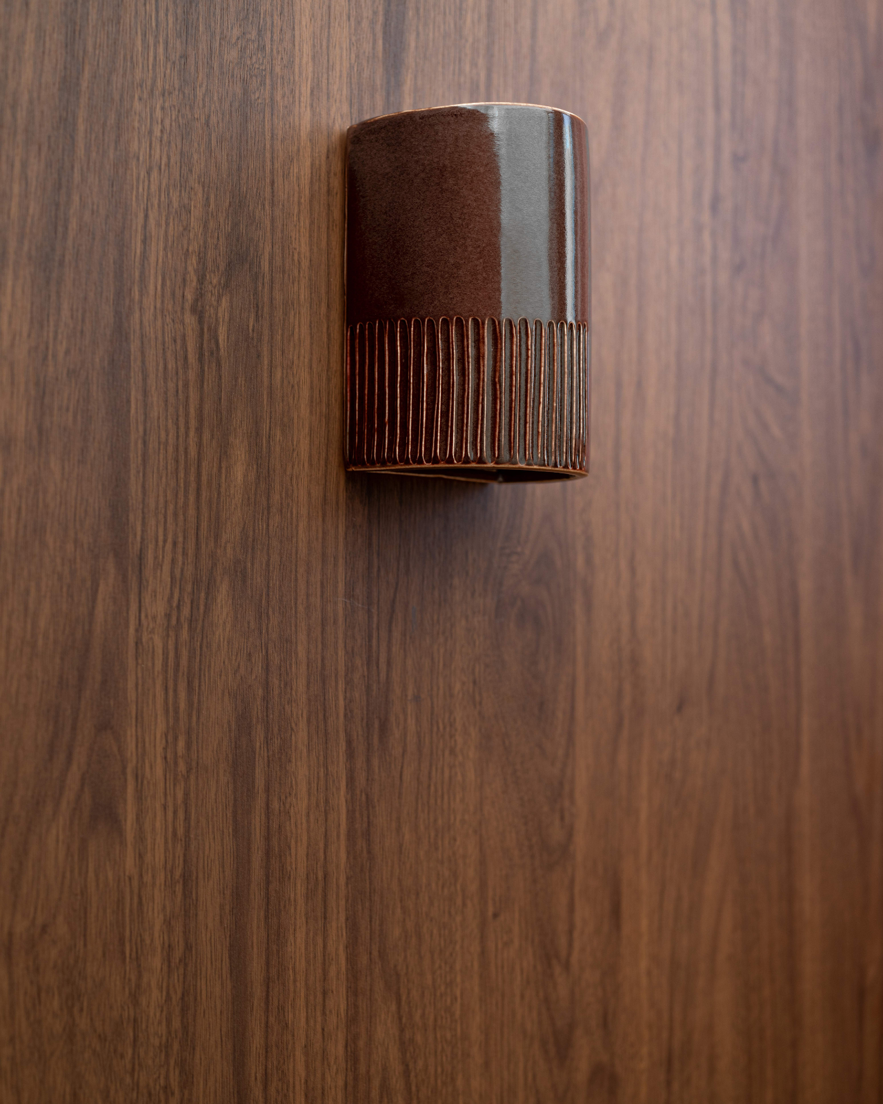 Handmade Ceramic Gloss Wall Light | Day Choccy Milk Tall Light Off