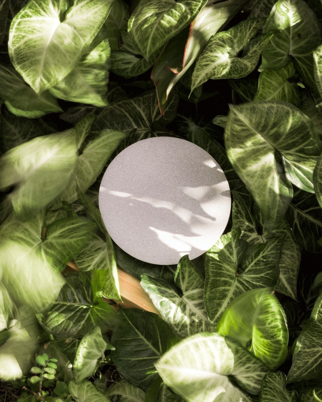 The O2 Wall Light showcases a minimal, floating concrete disc, offset and backlit through a precisely designed prism to evoke the striking imagery of a celestial eclipse.