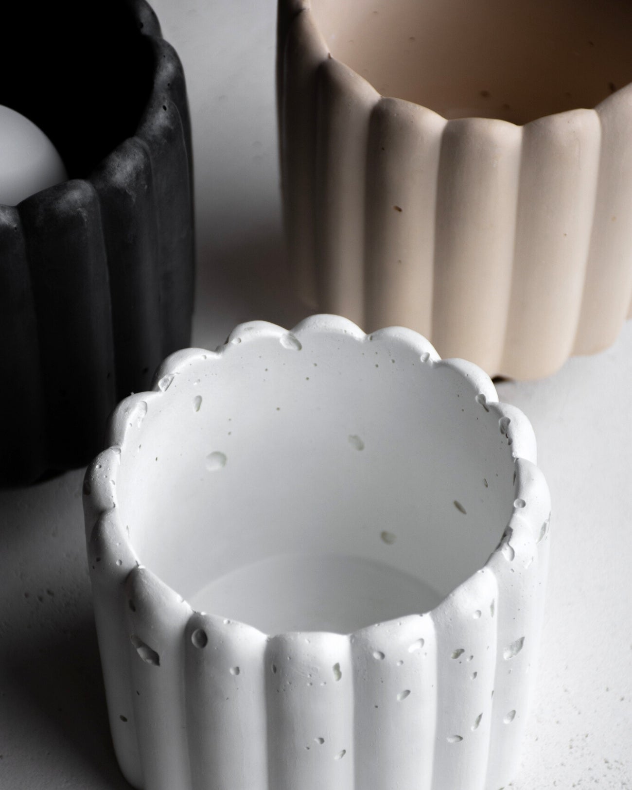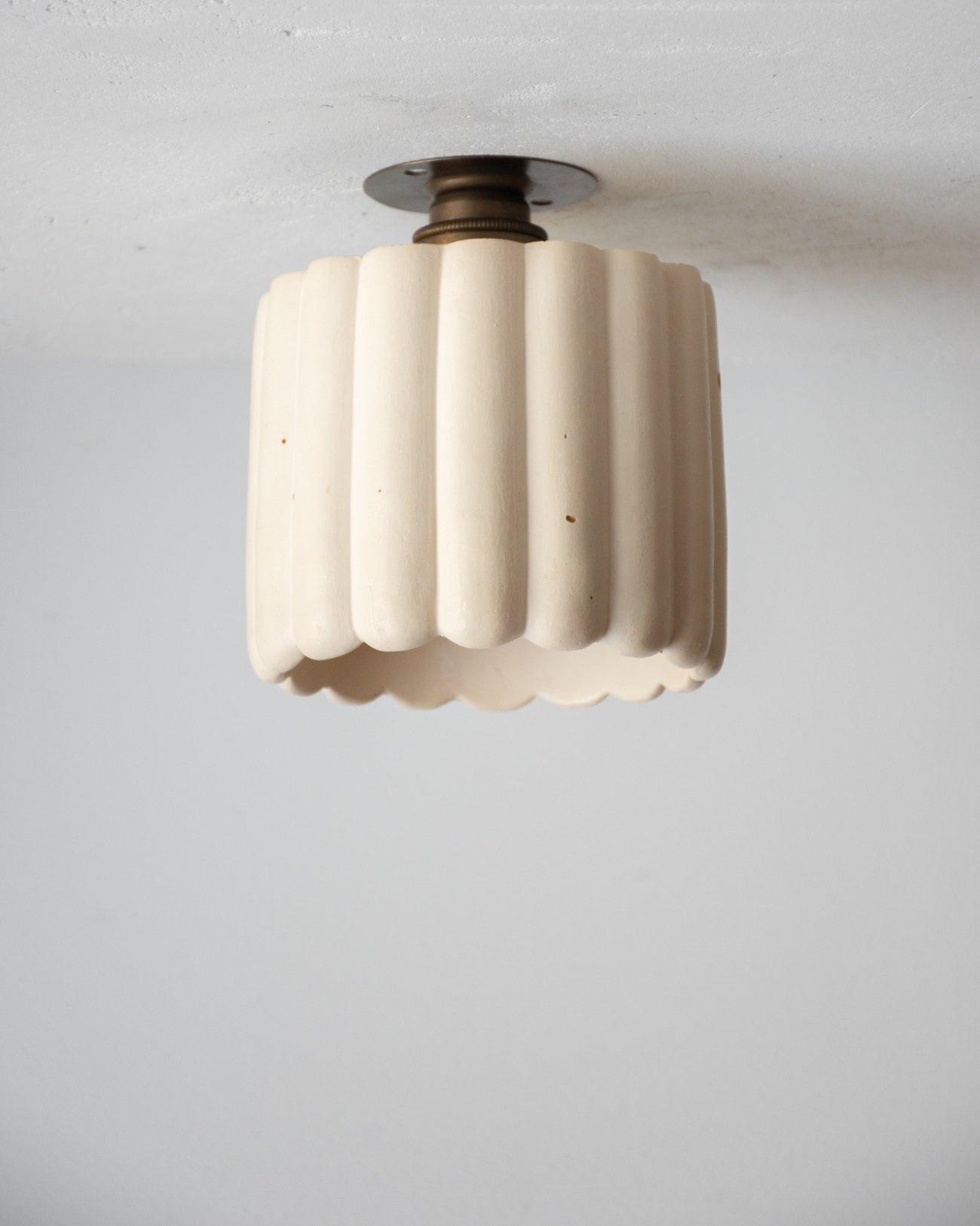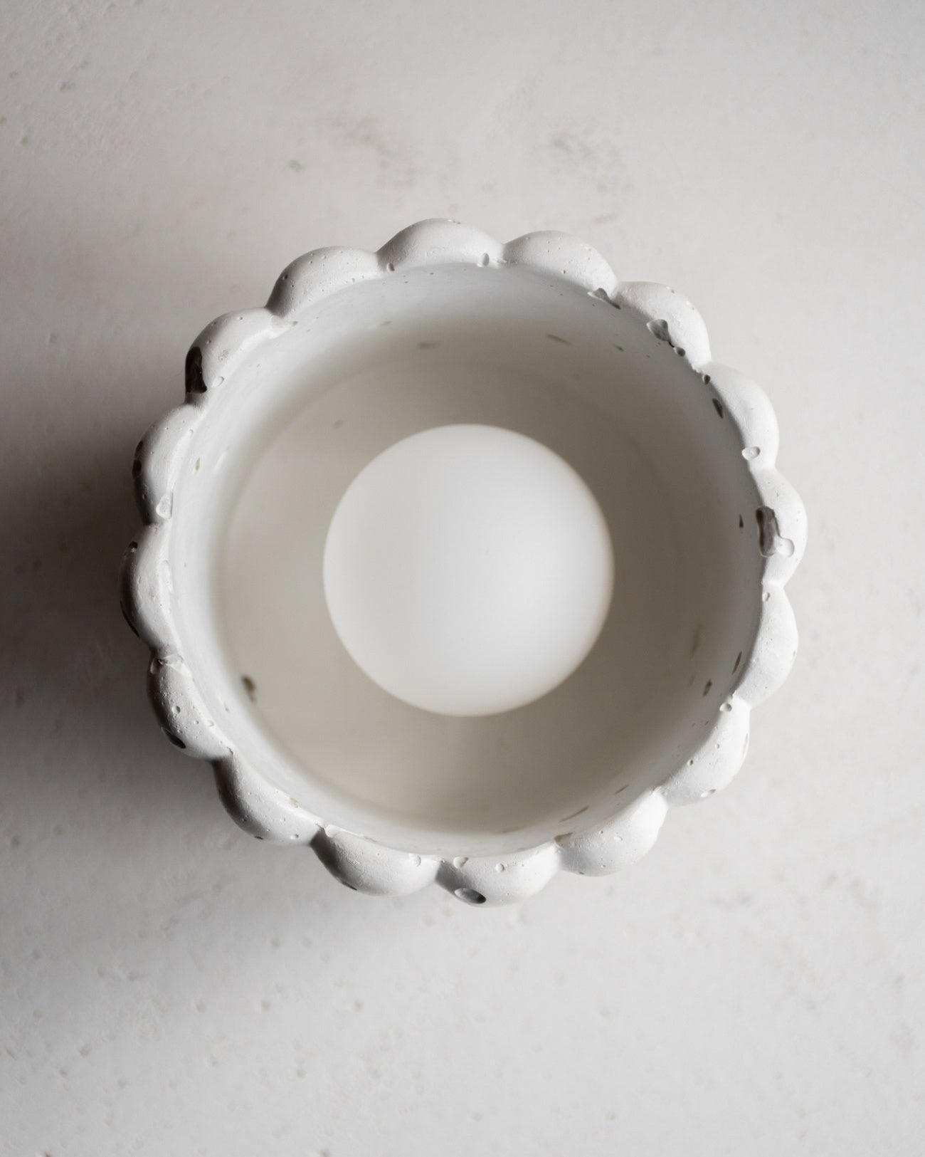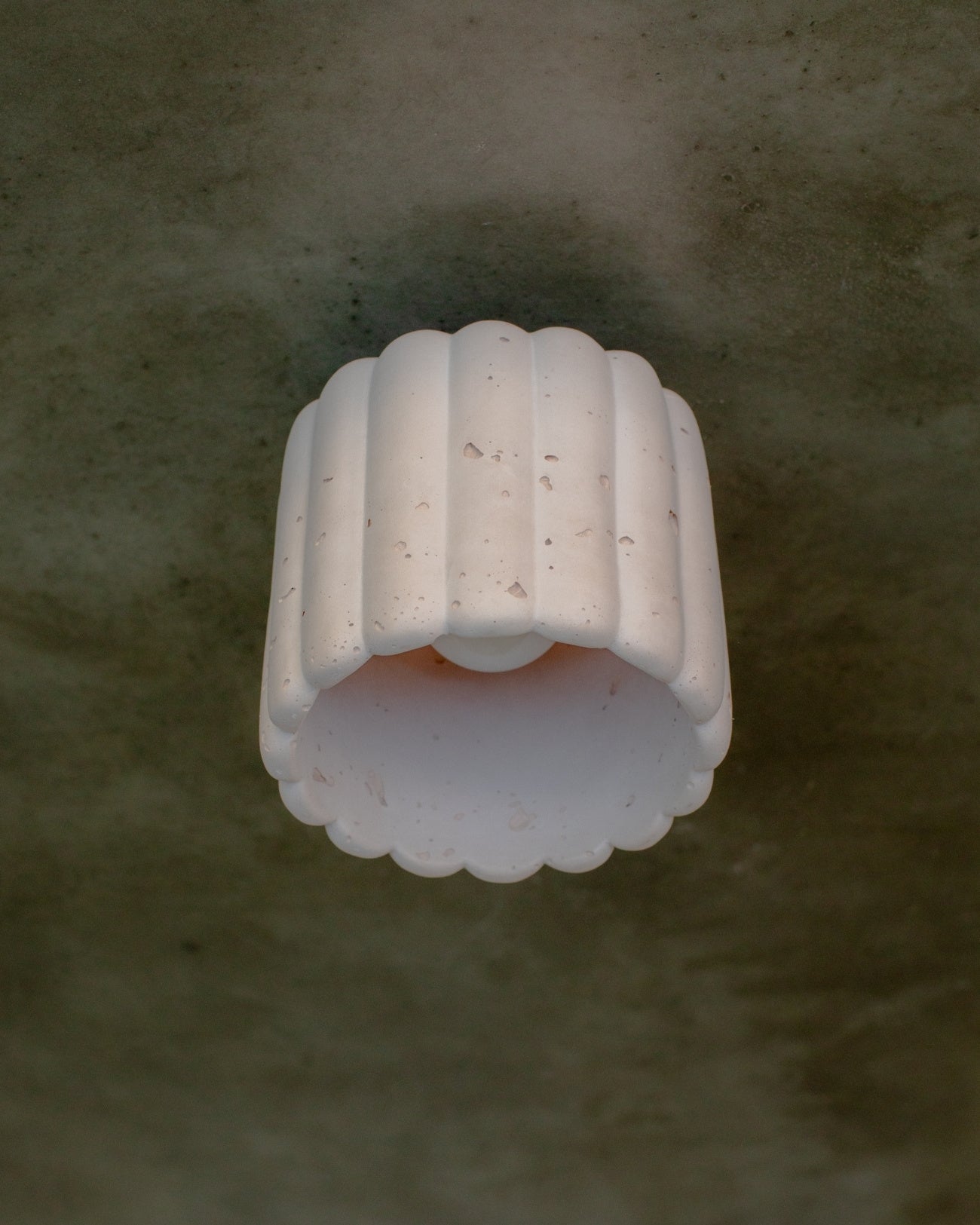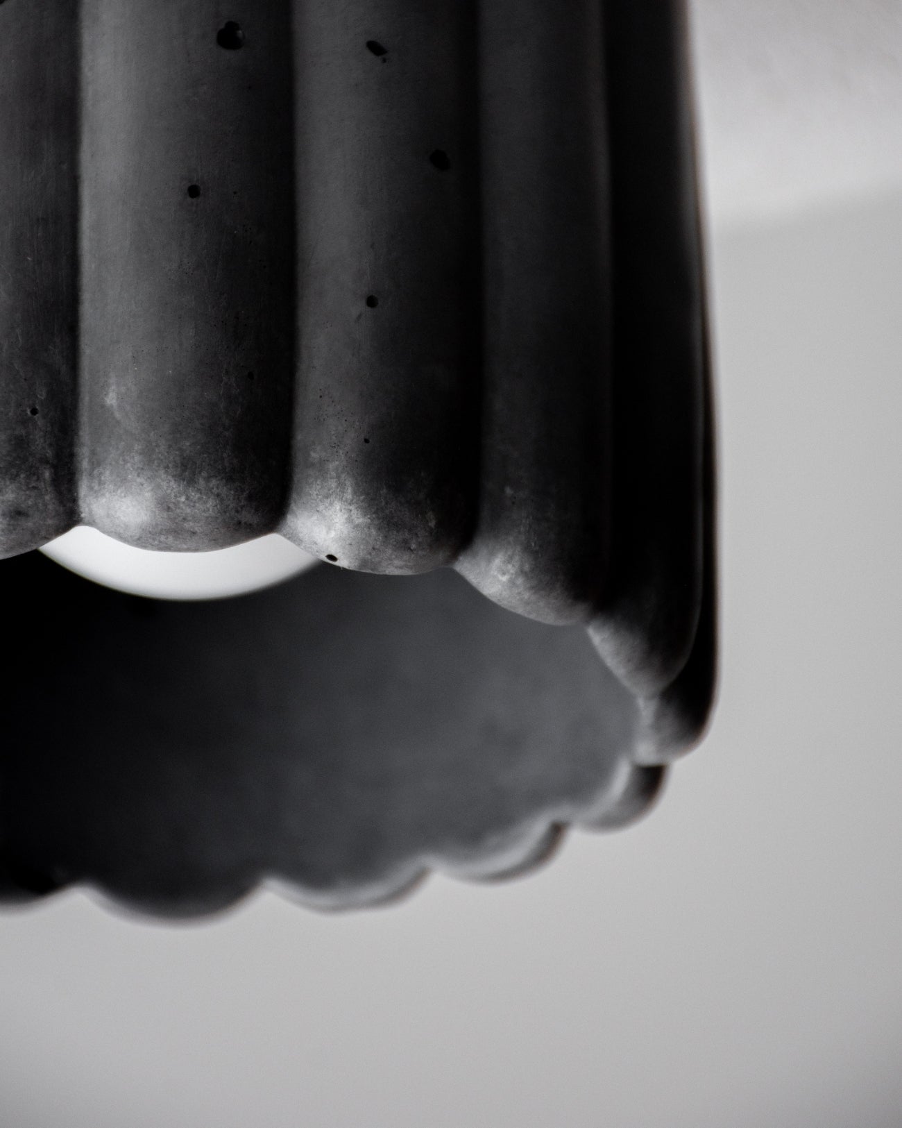 Hand-poured locally in Ballina, the Fluted Concrete Ceiling Light combines raw materials with modern design. Its cylindrical shade features a fluted shape with a scalloped edge, creating a dynamic interplay of light and shadow. Crafted from a unique blend of concrete and glass fibres, this ceiling light is a unique material perfectly suited for Elemental and Contemporary interiors. The addition of iron oxides enhances the raw quality of the shade, while the selection of earthy tones brings a warm and natural aesthetic to the space.