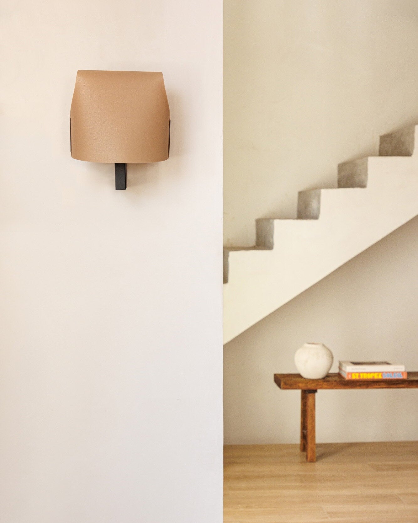 The Folded Shade Wall Light is a minimalist fitting with an interesting use of flat materials to create a three dimensional light shade. Inspired by the craftmanship and artisans of South-East Asia, Papyrus is used for to create a unique folded lampshade that beautifully diffuses light and glows when illuminated. Choose the White shade for a brighter light or Camel for a cosy warm glow.