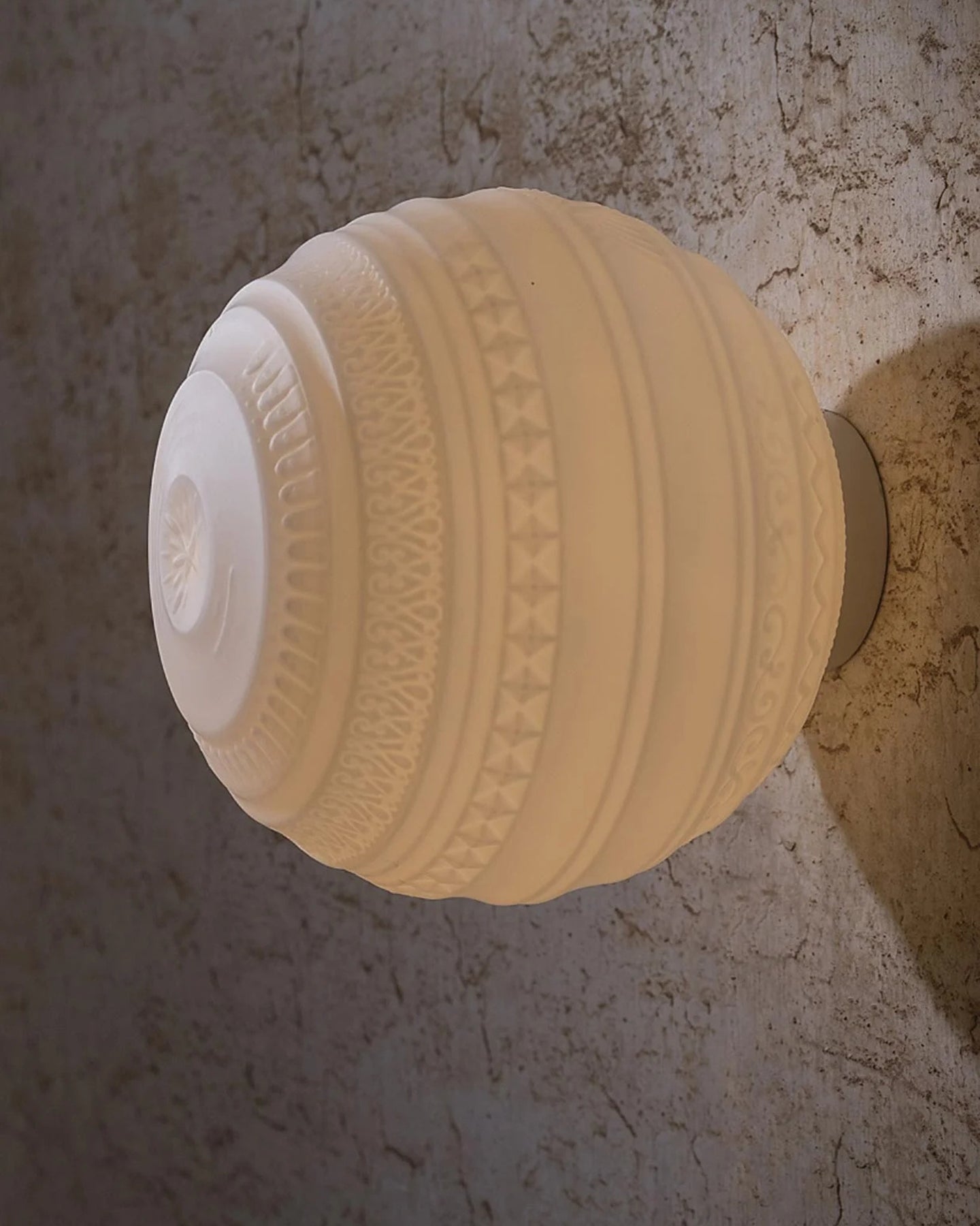 Artistically designed, the Frosted Glass Lantern Wall Light can be installed as a fixture on either your interior wall or ceiling to provide your space with a warm ambience. Featuring high-quality opal frosted glass, with an embossed design, this fitting is reminiscent of a traditional lantern with a contemporary twist.