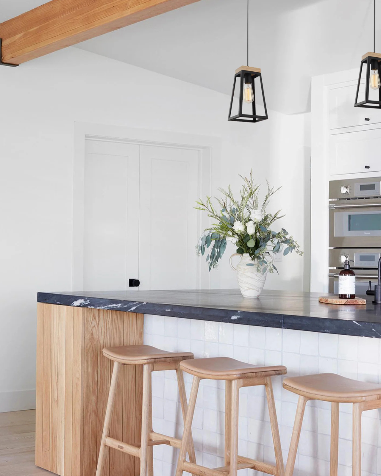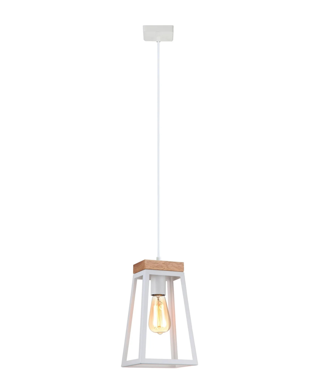 This versatile Funky Modern Lantern With Timber Accent is ideal for kitchens, lounges, or hallways, and can be installed as a single pendant or in multiples to create a one-of-a-kind feature. Crafted from sturdy iron, it is available in a sleek black or white finish and boasts a striking light wood accent. Complete with an E27 lampholder, use an LED filament globe to emulate the look of classic incandescent lightbulb. Features a 3m cord that can be adjusted to suit the space.
