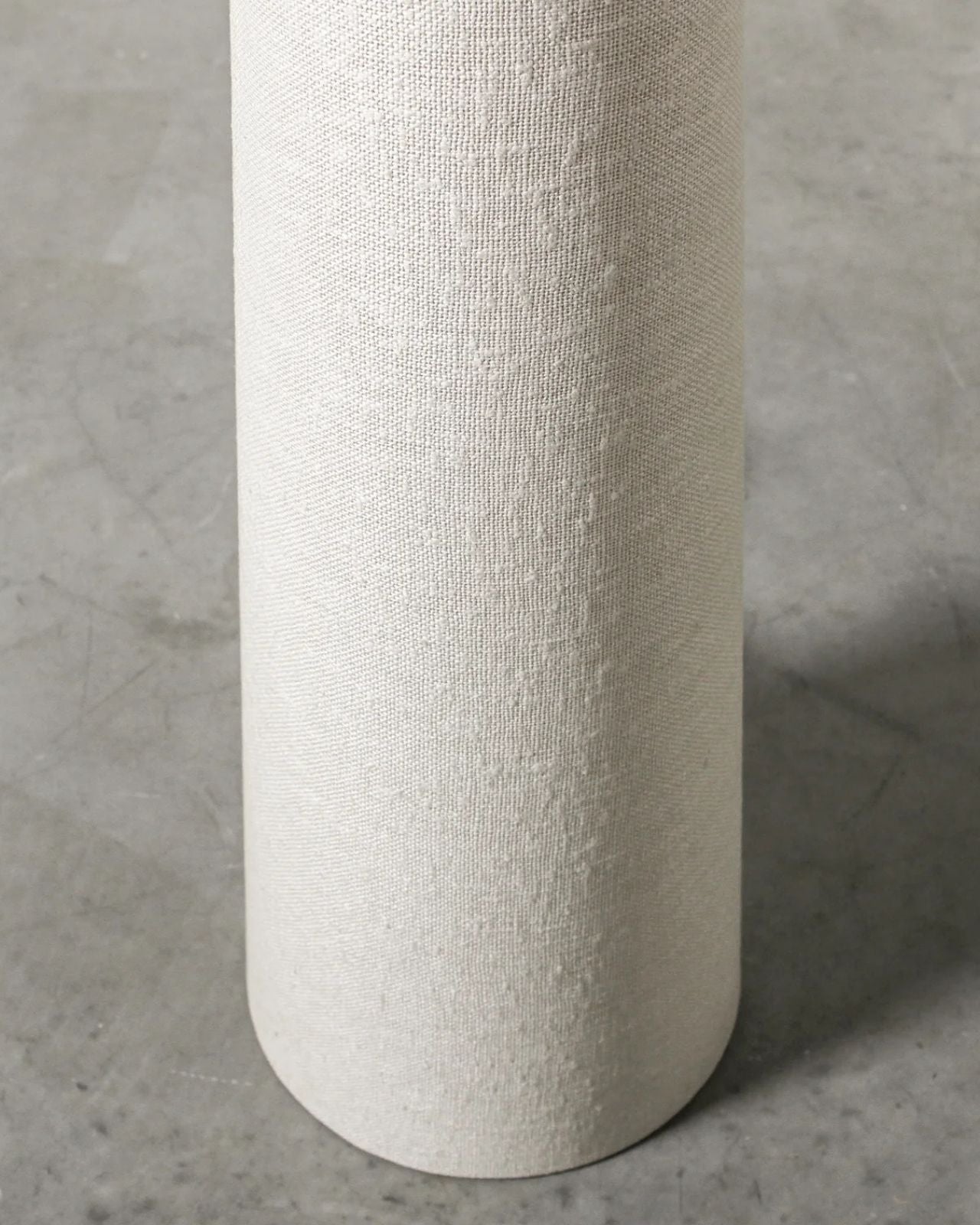 The Geometric Boucle Floor Lamp features a tall, sculptural base with a subtly flared silhouette that widens gently toward the bottom, giving it a bold yet balanced stance. Its clean, tapered lines evoke a sense of modern simplicity, while the oversized cylindrical shade adds visual softness and scale. The overall shape is strong and architectural, with a refined profile that makes it both a statement and a timeless accent in the room. Ideally placed beside a reading chair, sofa, or in a spacious hallway, it offers both presence and purpose without overpowering the space.