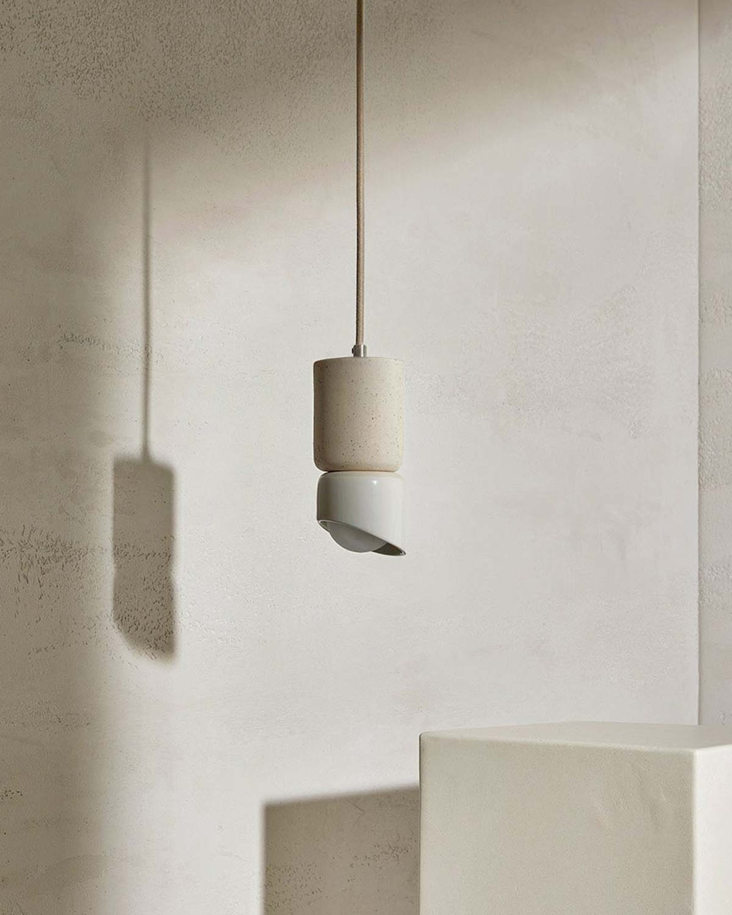 Designed in Australia, this Ceramic Ceiling Light has been designed with natural raw materials carefully sourced from the earth. Its modern asymmetric form is created from the combination of two layering ceramic cylindrical shapes with contrasting glaze finishes and a 3000mm cord drop.