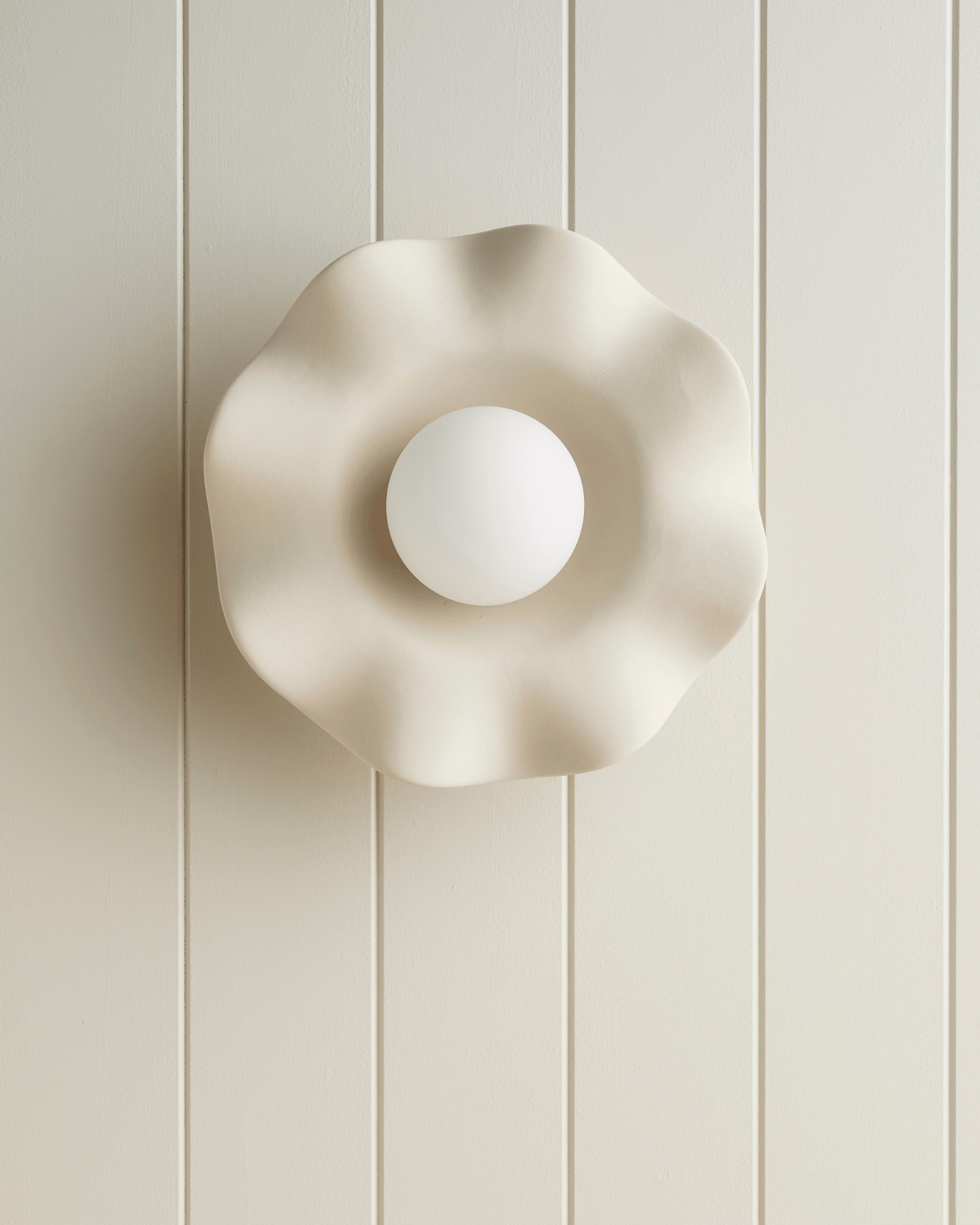 The Ceramic Frill Wall Sconce is meticulously crafted by talented artisans in Australia, showcasing a charming frill design. With a variety of finishes to choose from, this sconce effortlessly combines sophistication and simplicity. As each piece is uniquely handmade to order, slight variations in colour, shade, and size are inherent in the high-temperature firing of ceramic products.