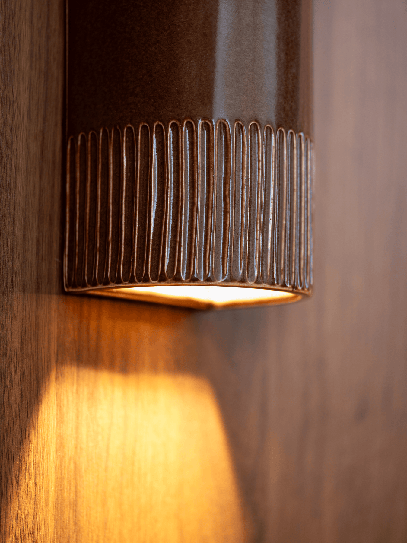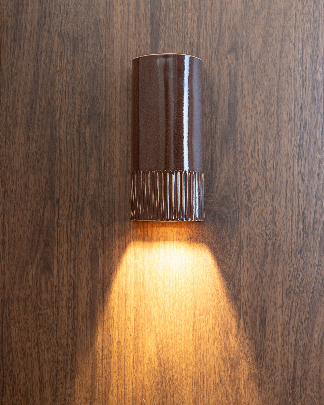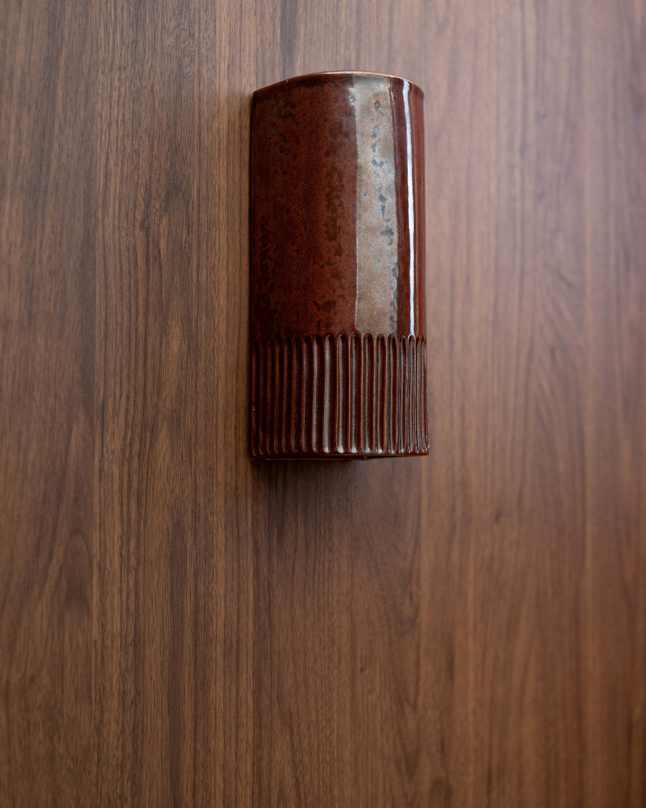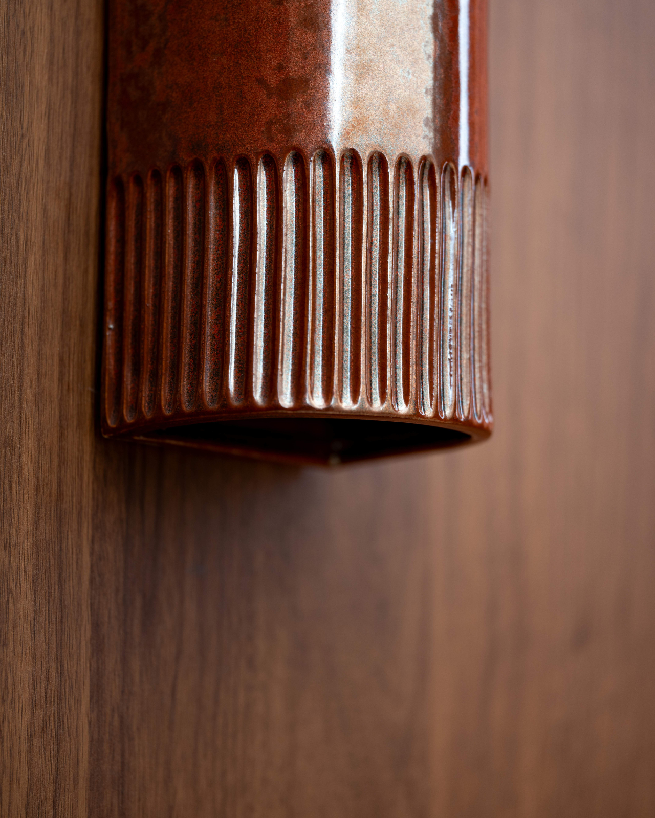 Handmade Ceramic Gloss Wall Light | Day Tommy Jam Tall Light Off burnt toast detail