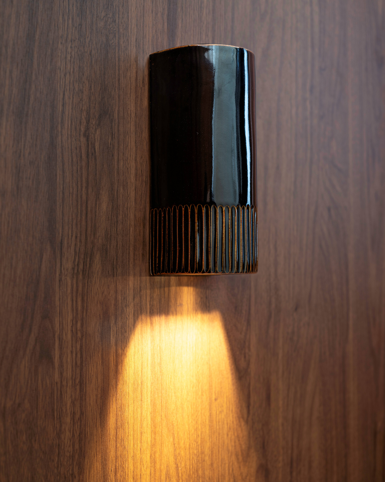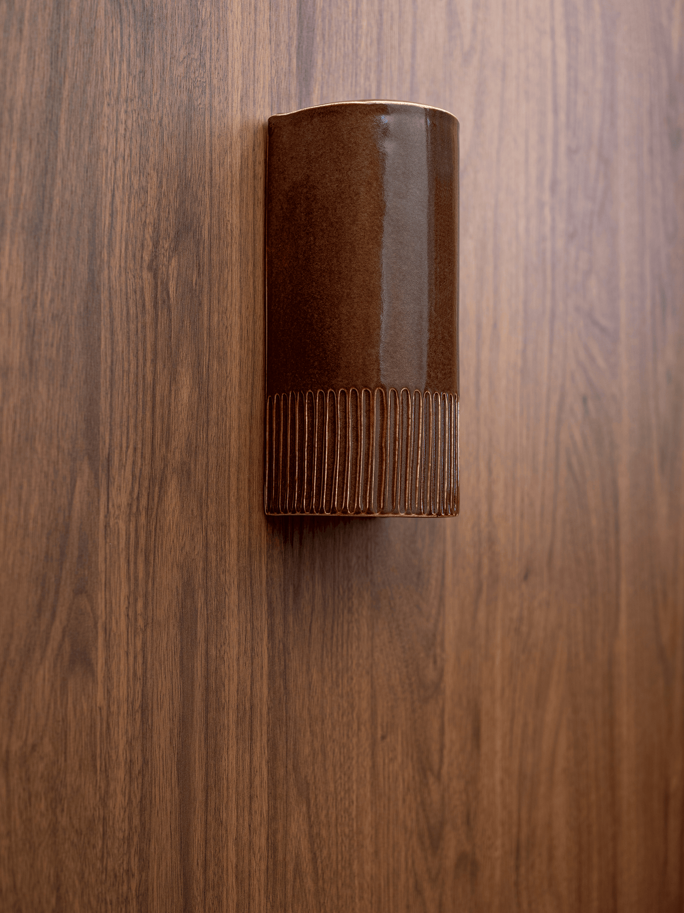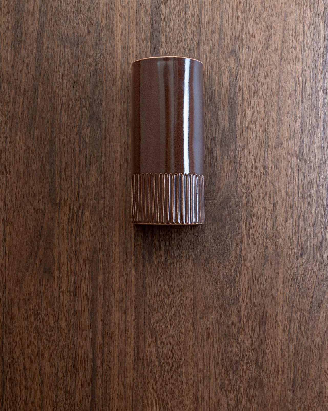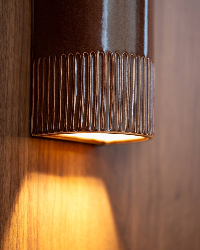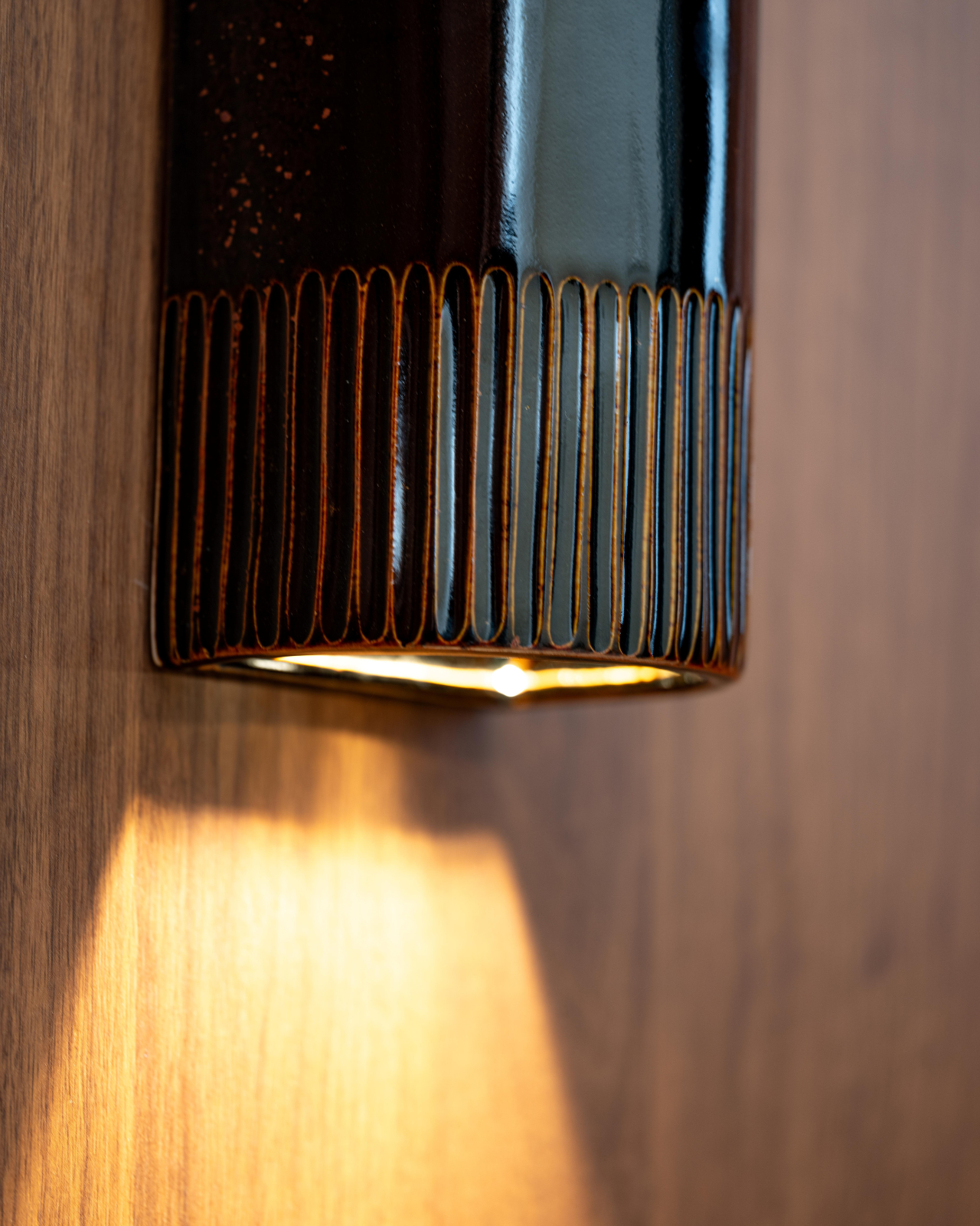 Handmade Ceramic Gloss Wall Light | Day Tommy Jam Tall Light Off burnt toast detail